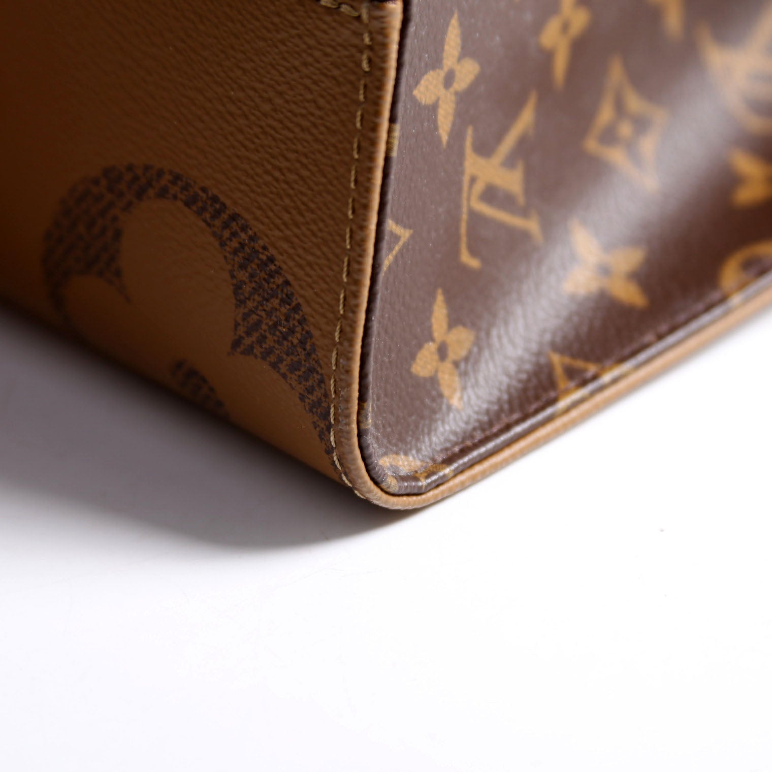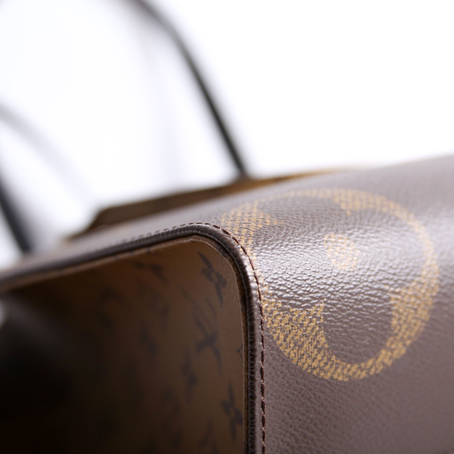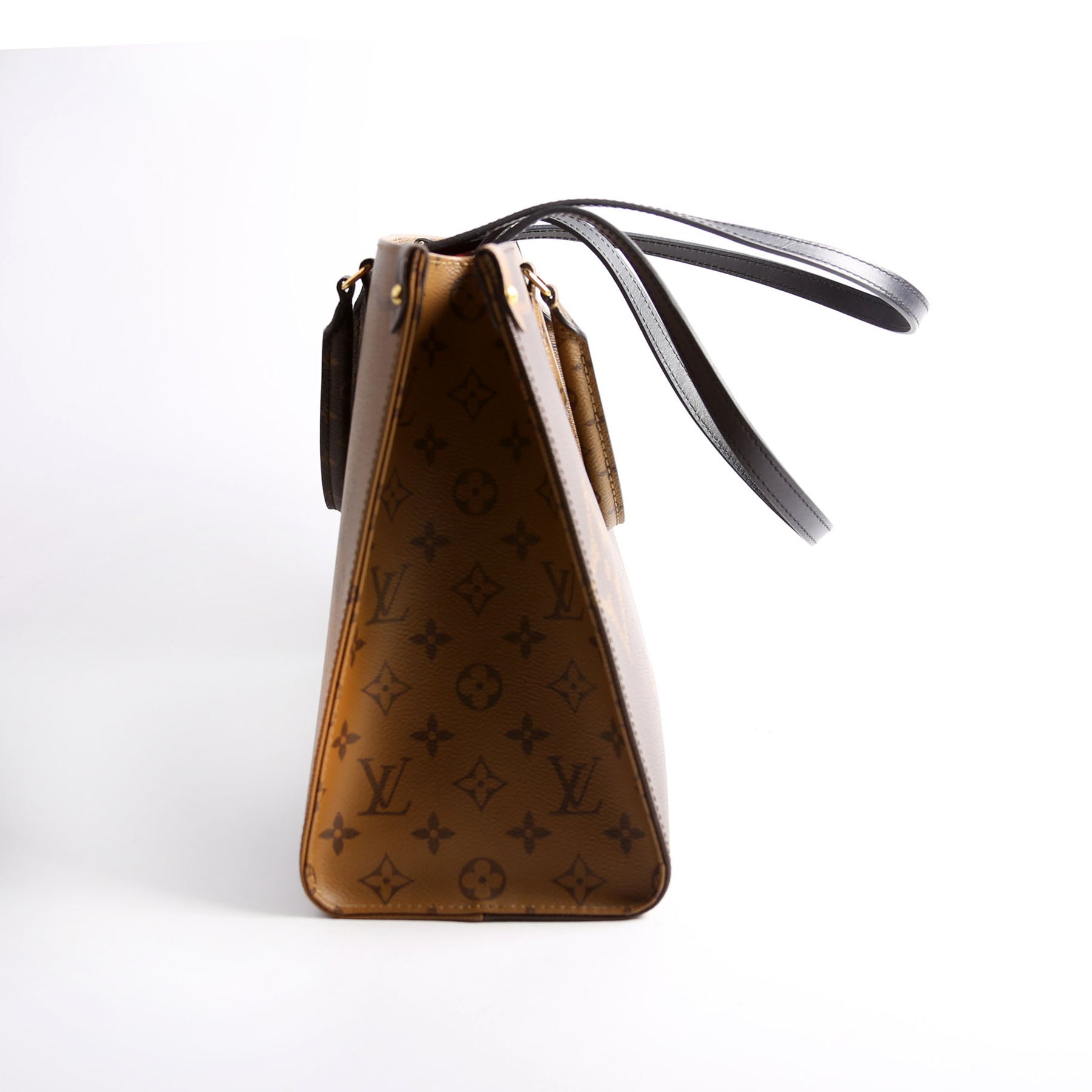 This pre-owned Louis Vuitton ONTHEGO MM is guaranteed 100% authentic. The exterior is in the classic Louis Vuitton Reversed Monogram coated canvas.