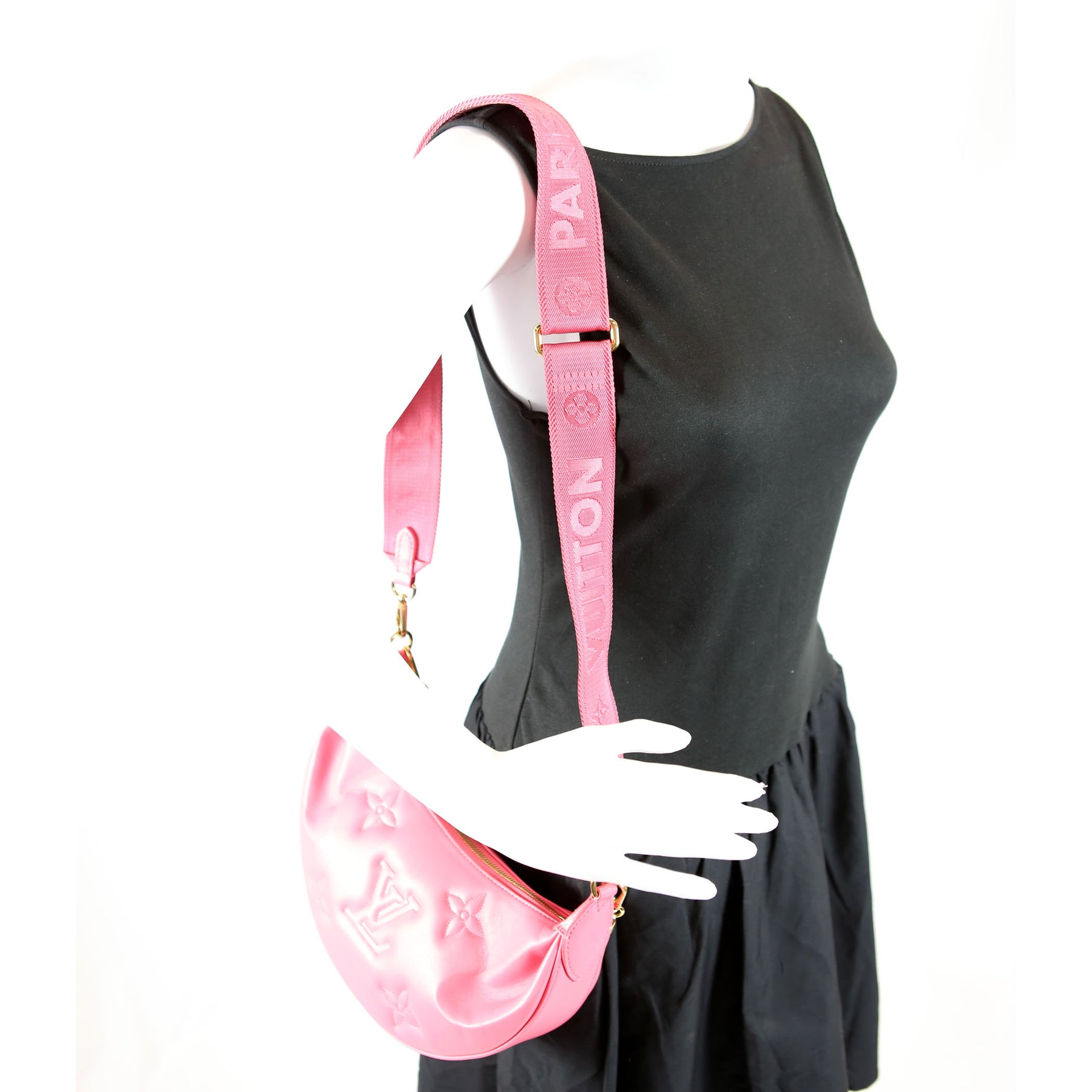 These pre-owned Louis Vuitton Overthemoon Bubblegram is guaranteed 100% authentic. The exterior is in the classic Louis Vuitton Calfskin Leather.
