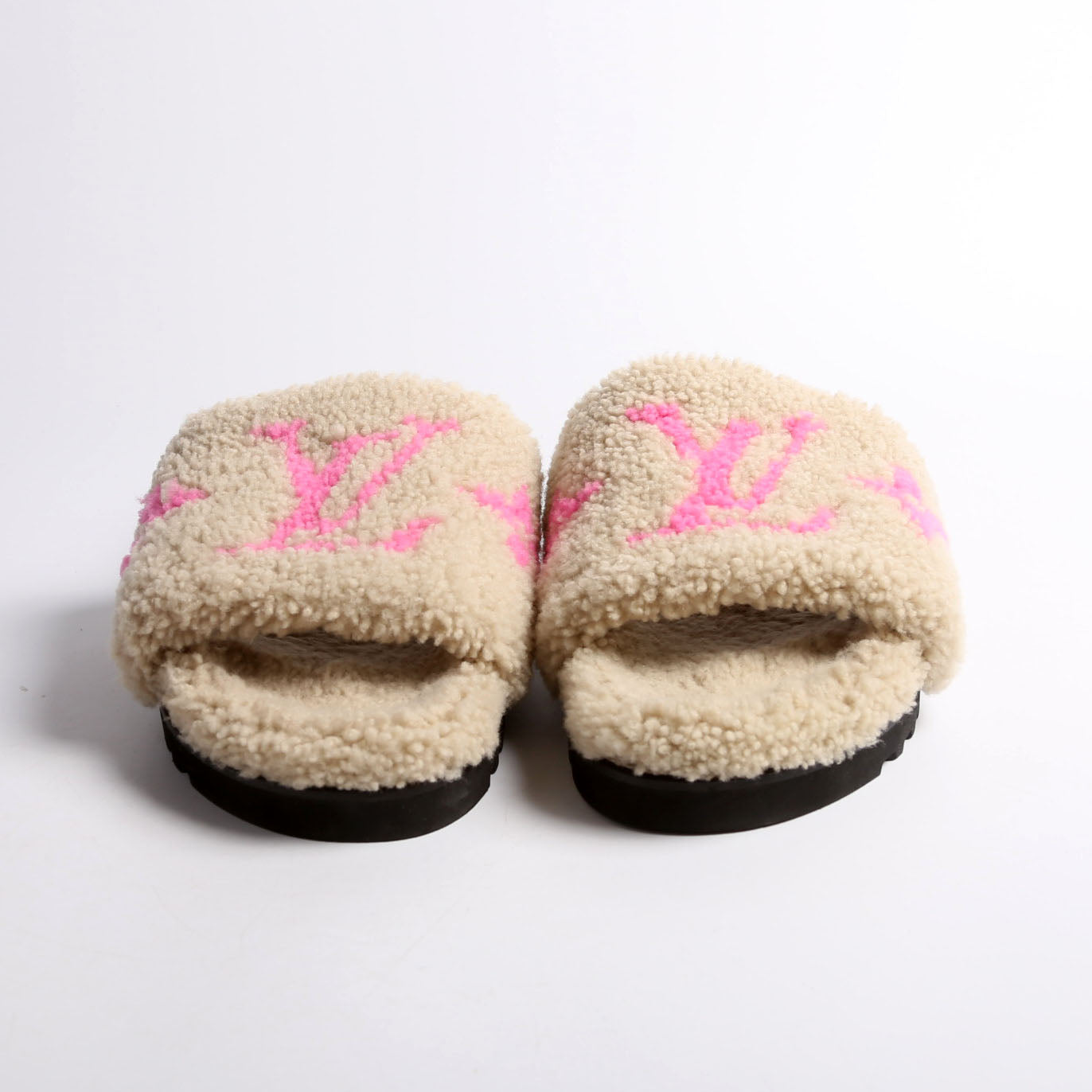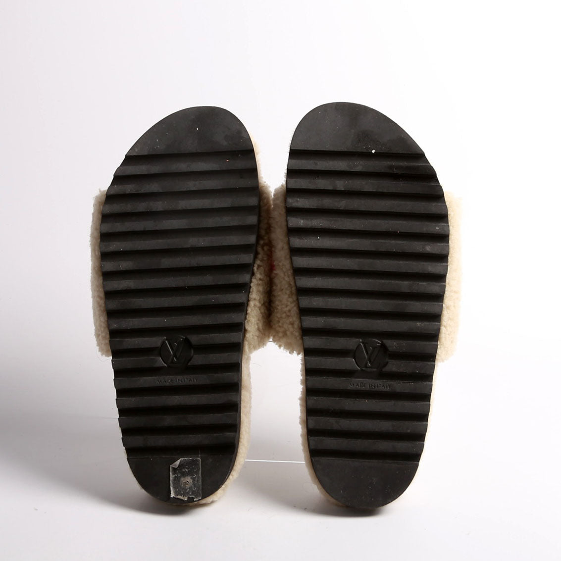 These pre-owned Louis Vuitton Paseo Shearling Comfort Mules are guaranteed 100% authentic.