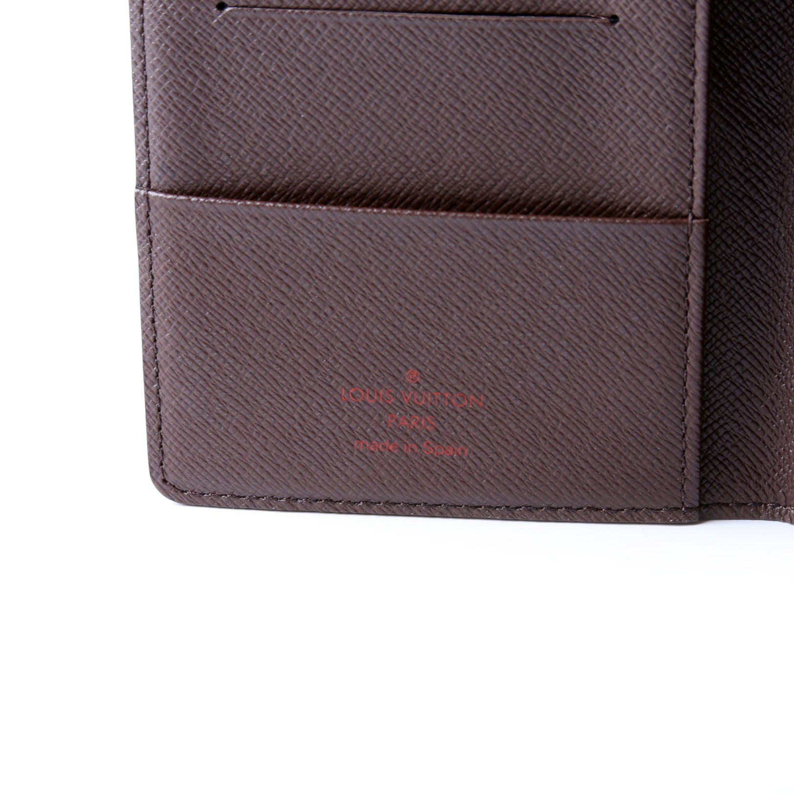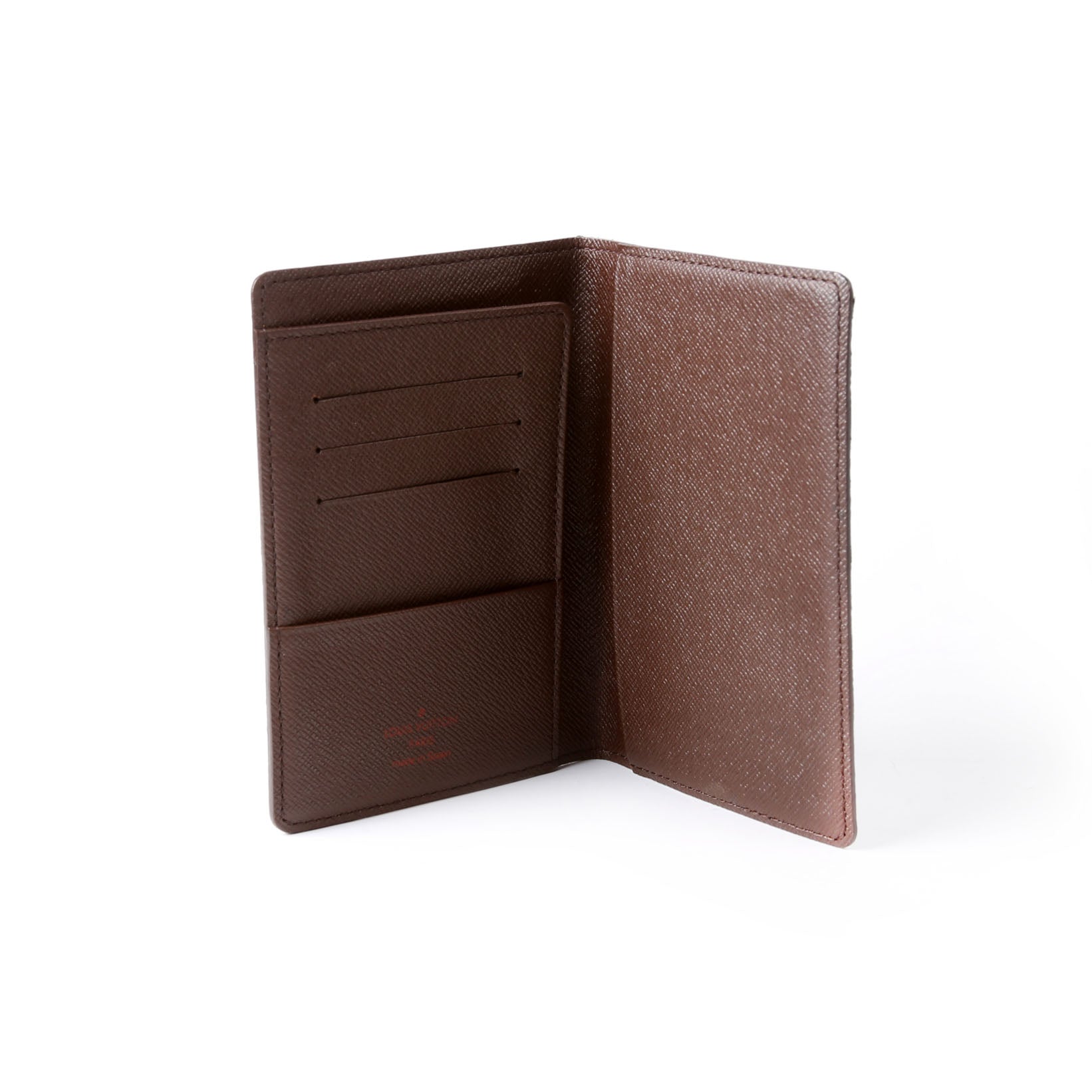 This pre-owned Louis Vuitton Passport Holder is guaranteed 100% authentic. The exterior is in the classic Louis Vuitton Damier Ebene coated canvas.