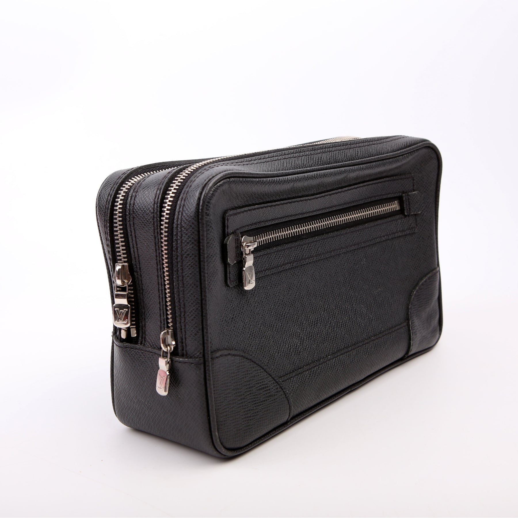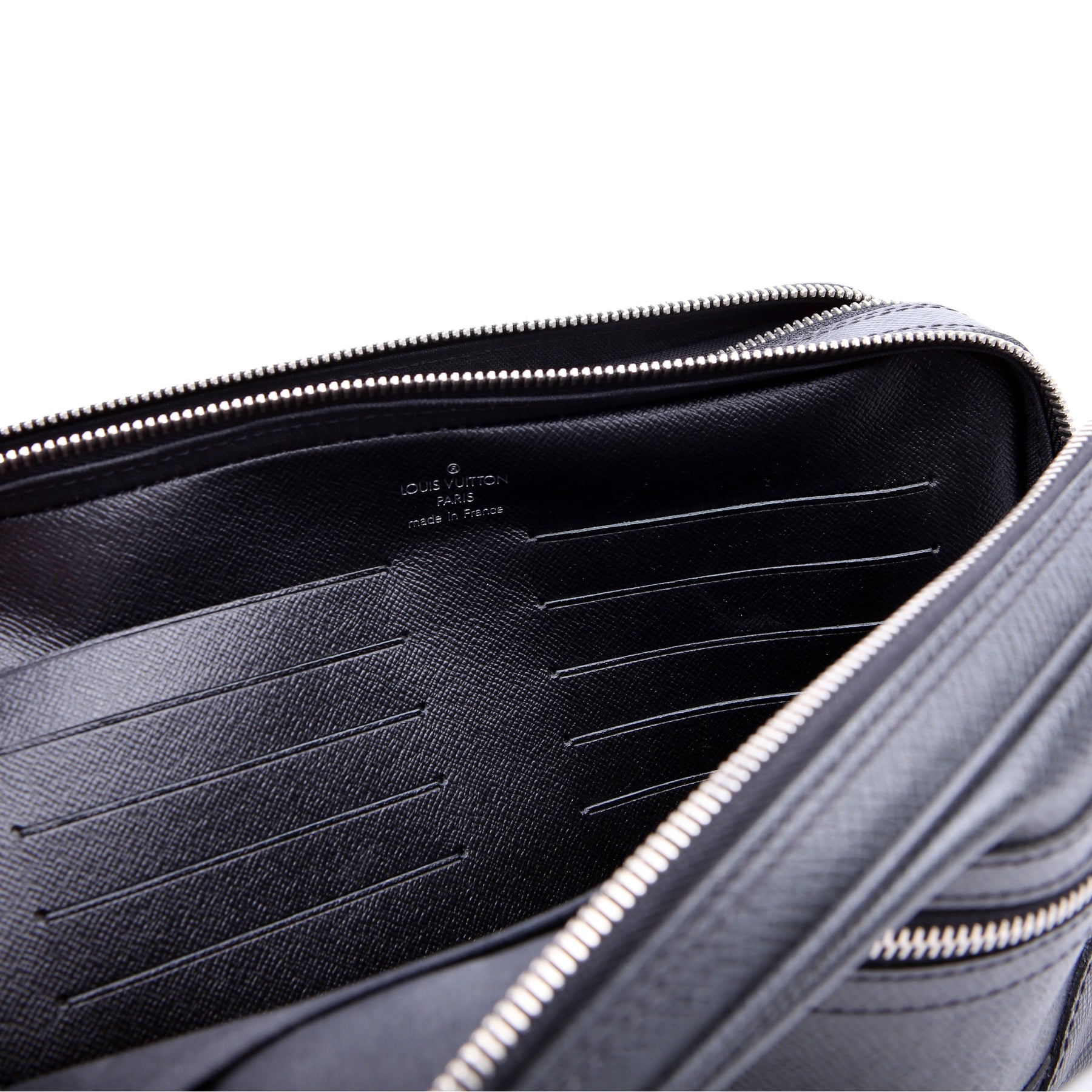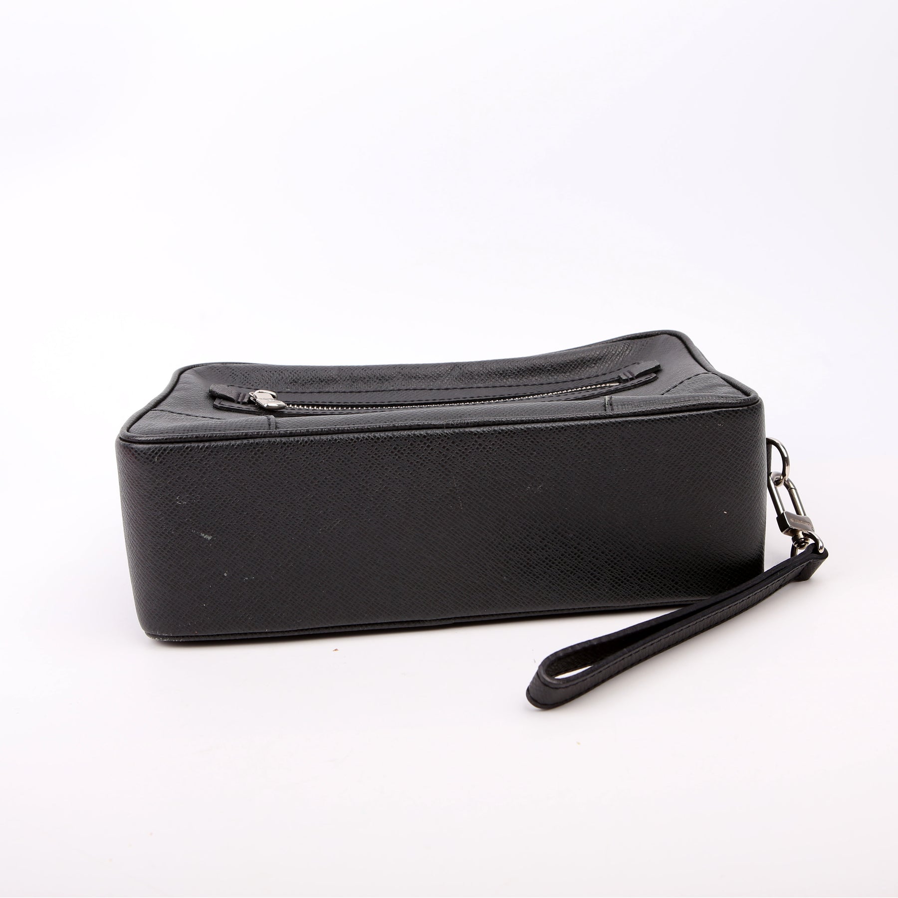 This pre-owned Louis Vuitton Pavel Ardoise Wristlet is guaranteed 100% authentic. The exterior is in the classic Louis Vuitton Taiga leather.