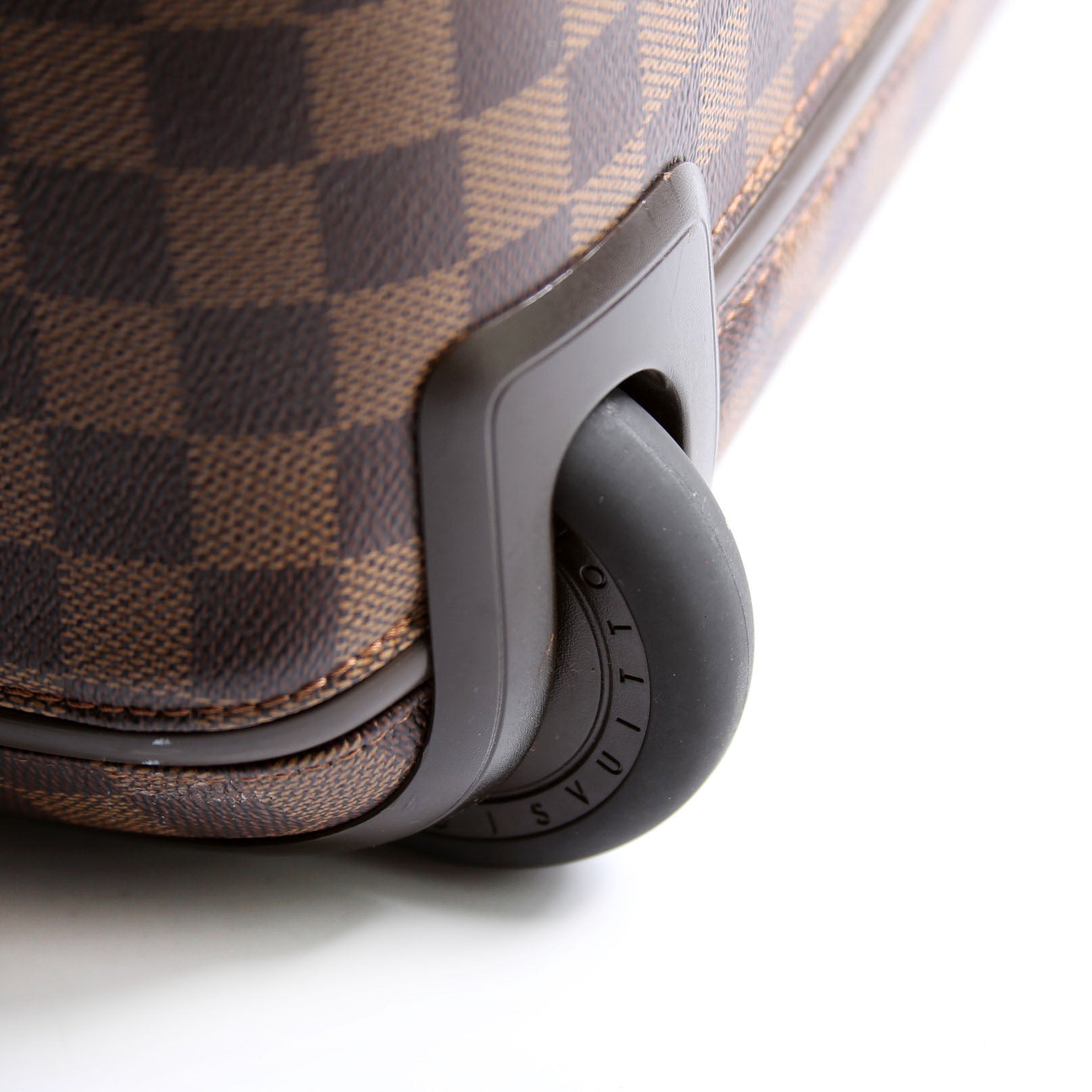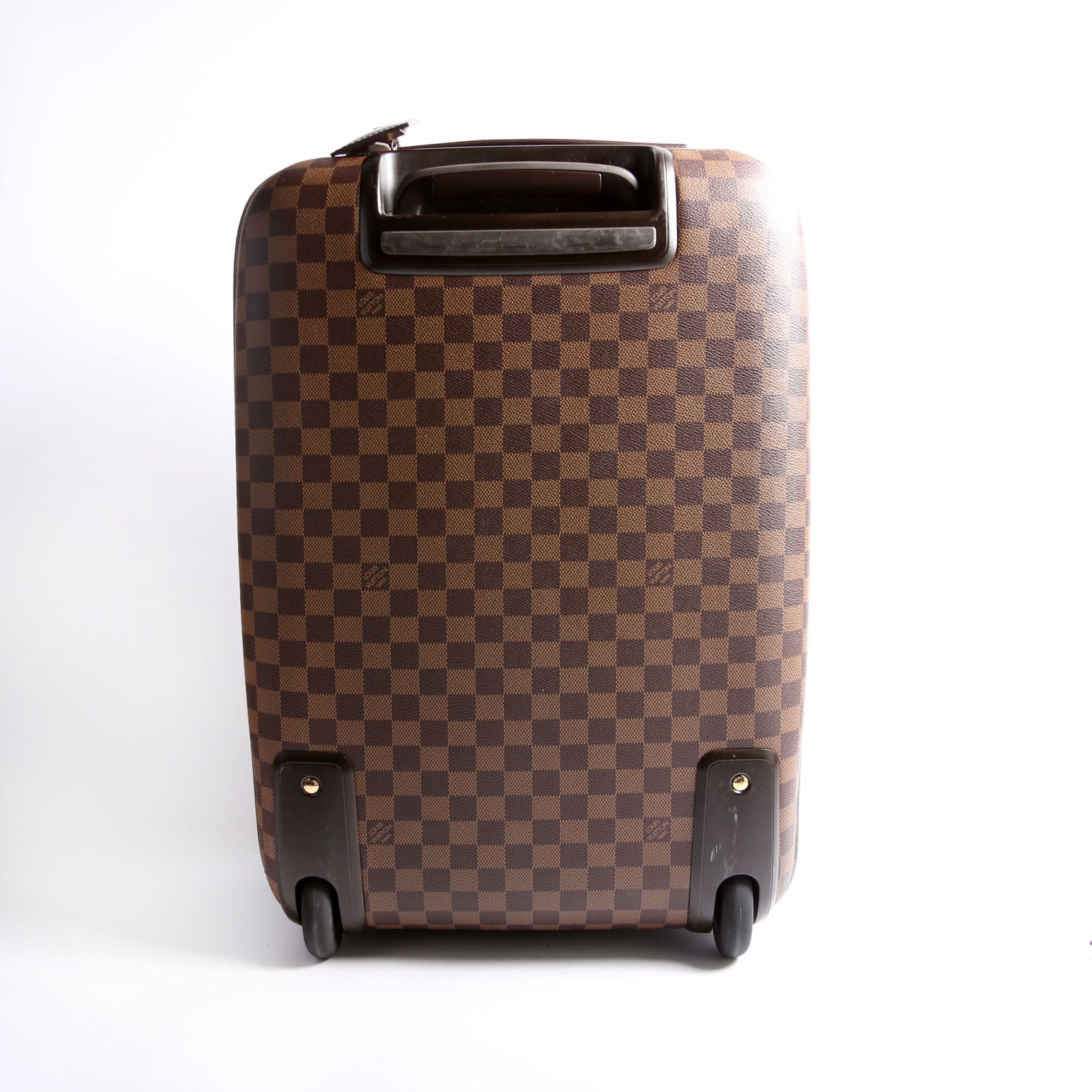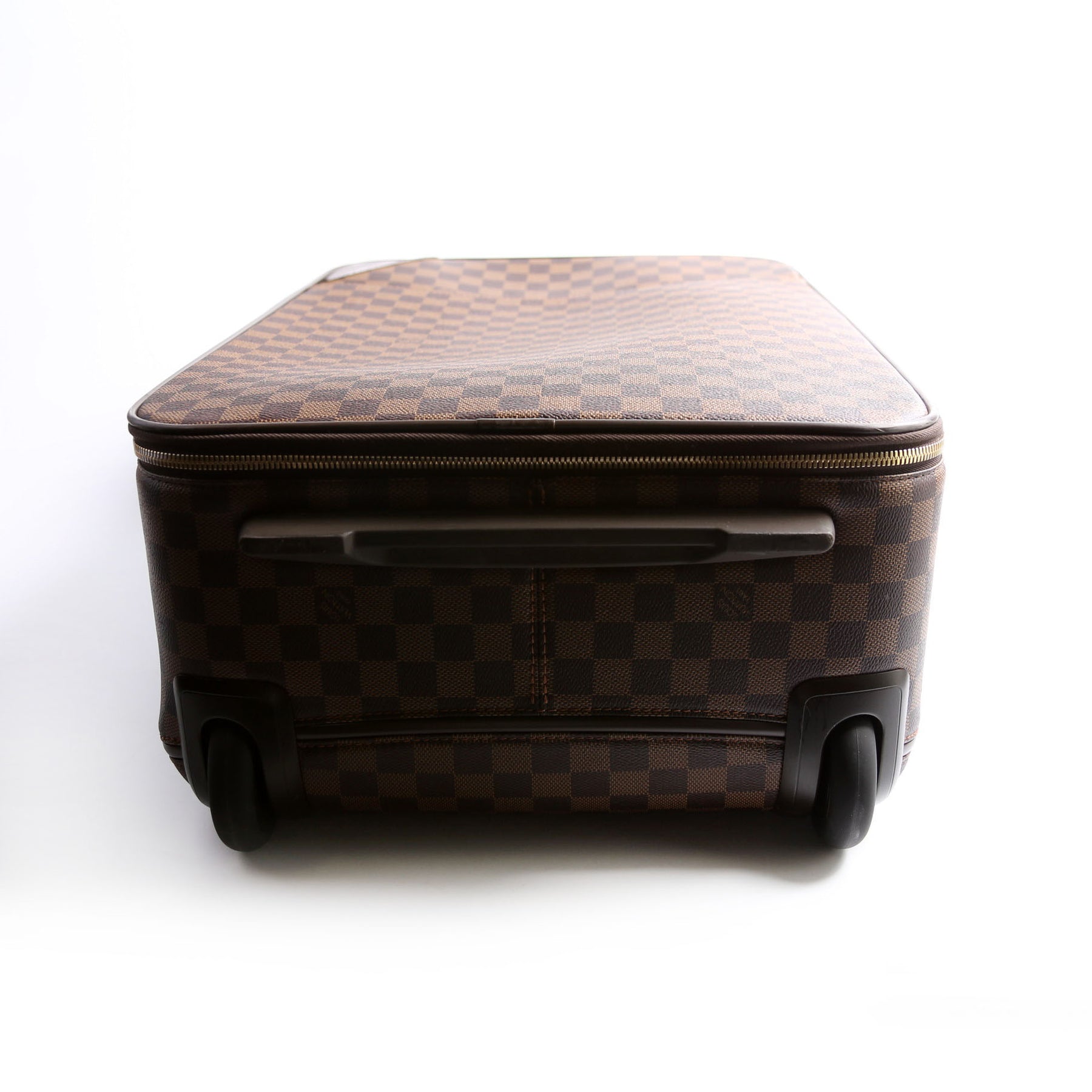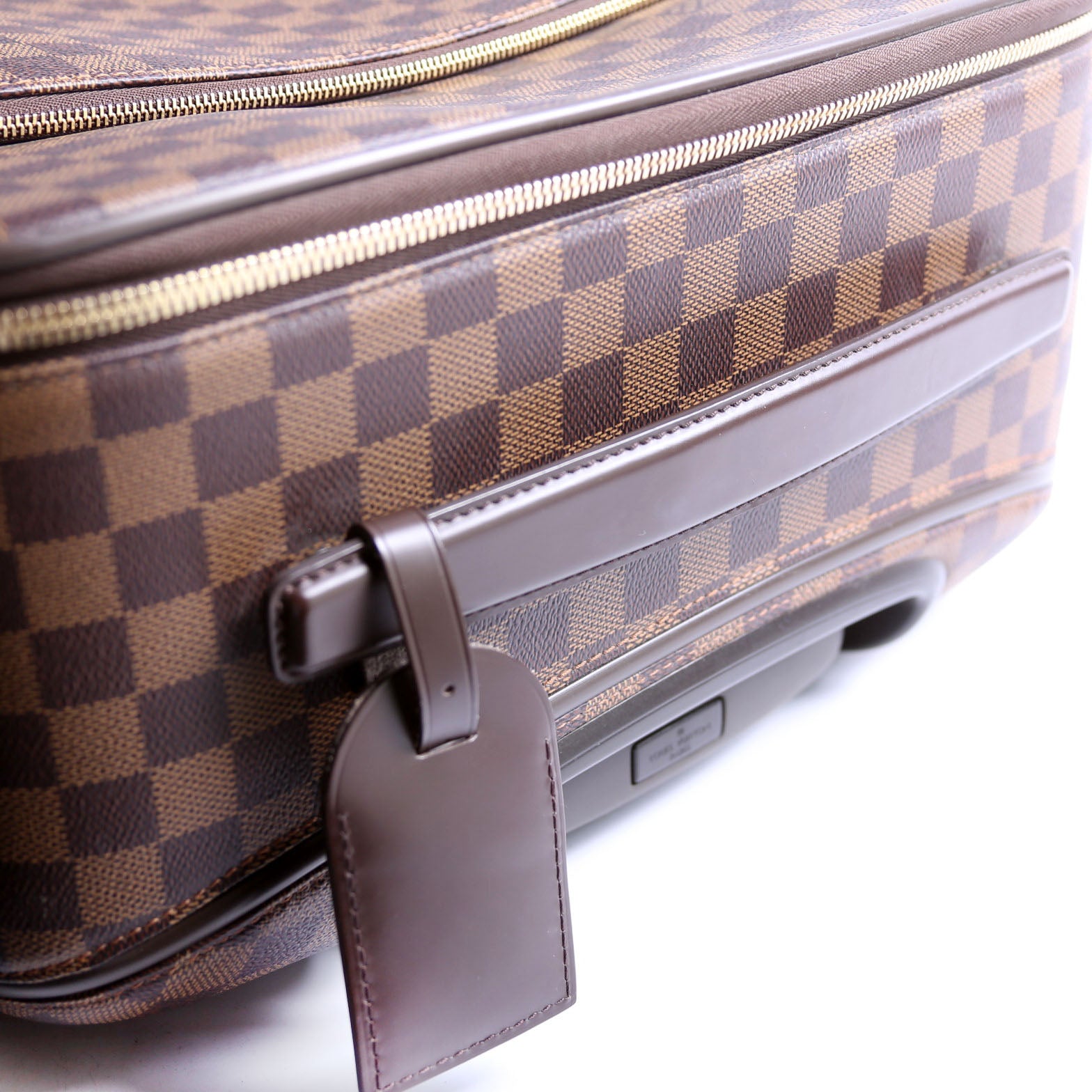 This pre-owned Louis Vuitton Pegase Legere 55 Business is guaranteed 100% authentic. The exterior is in the classic Louis Vuitton Damier Ebene coated canvas.