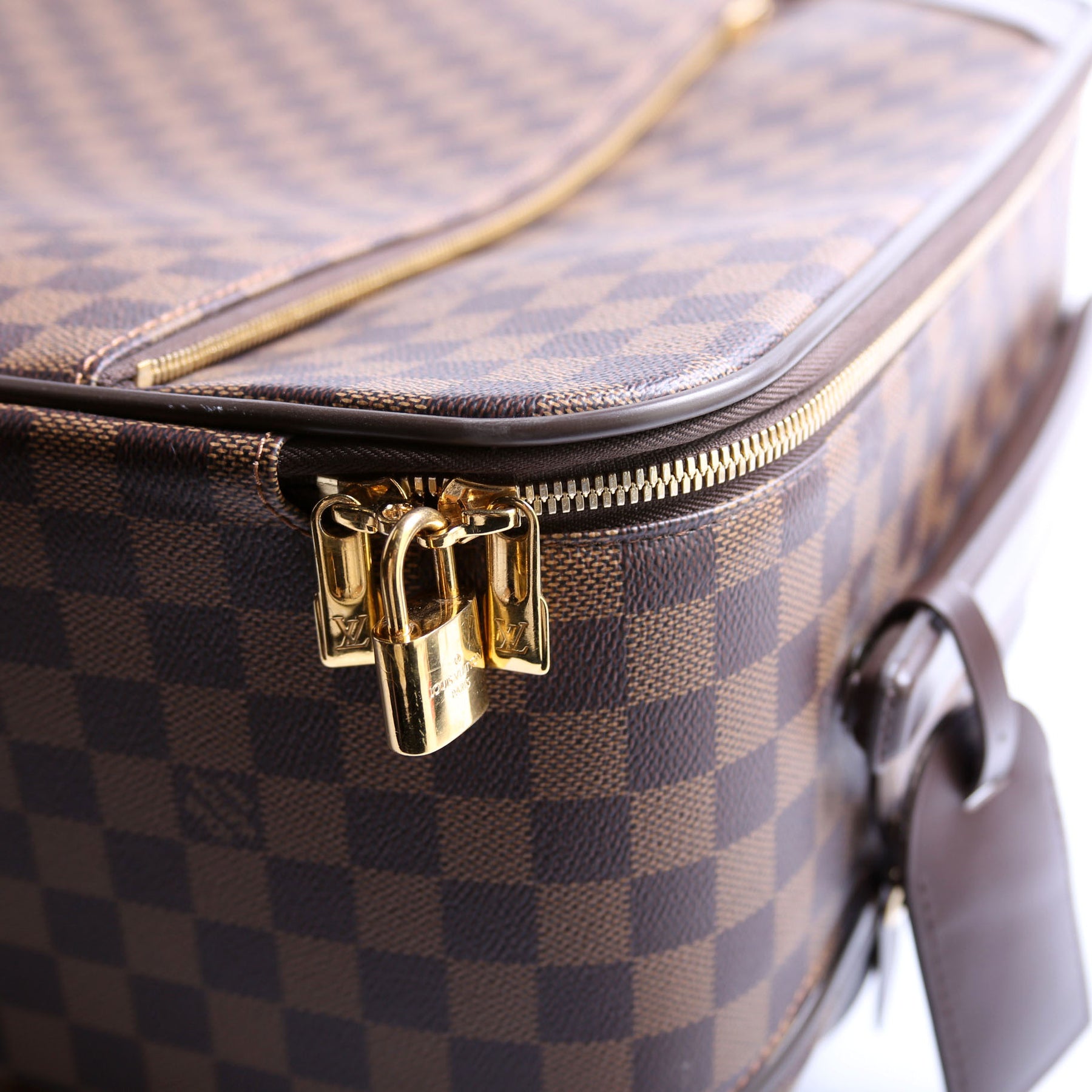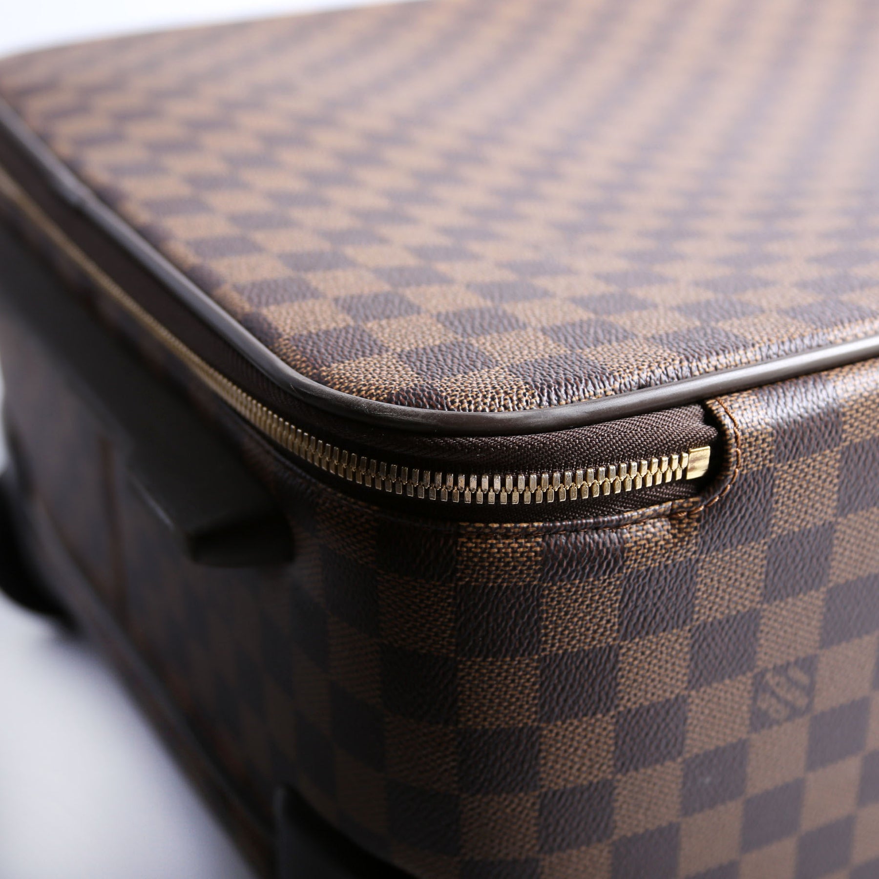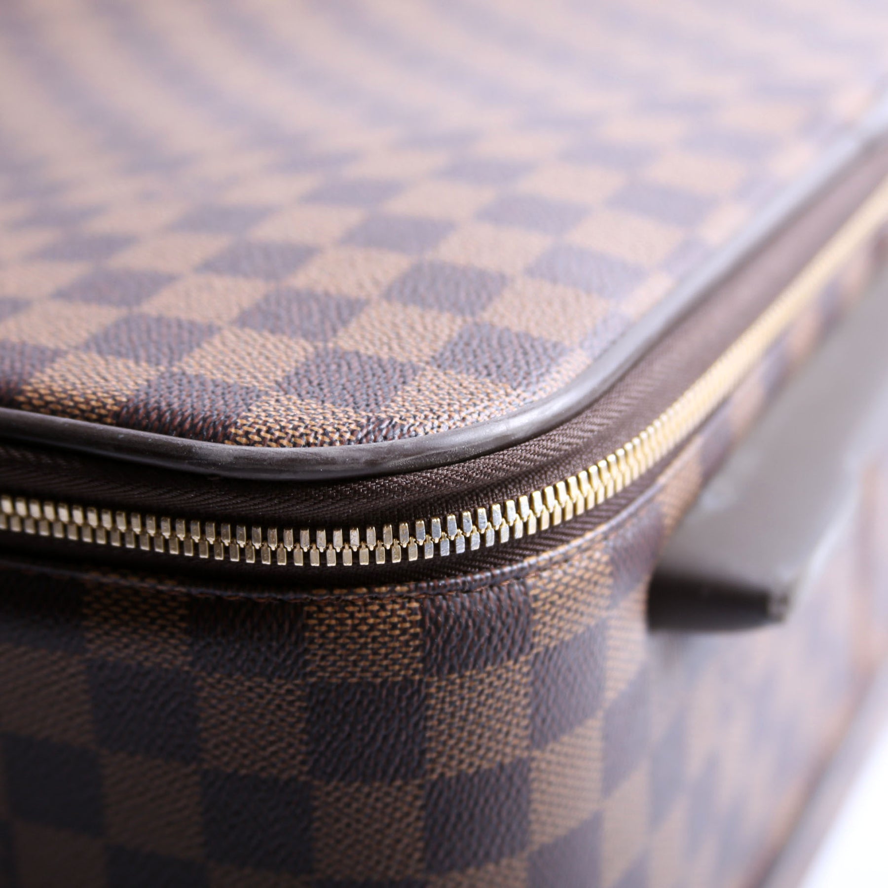 This pre-owned Louis Vuitton Pegase Legere 55 Business is guaranteed 100% authentic. The exterior is in the classic Louis Vuitton Damier Ebene coated canvas.