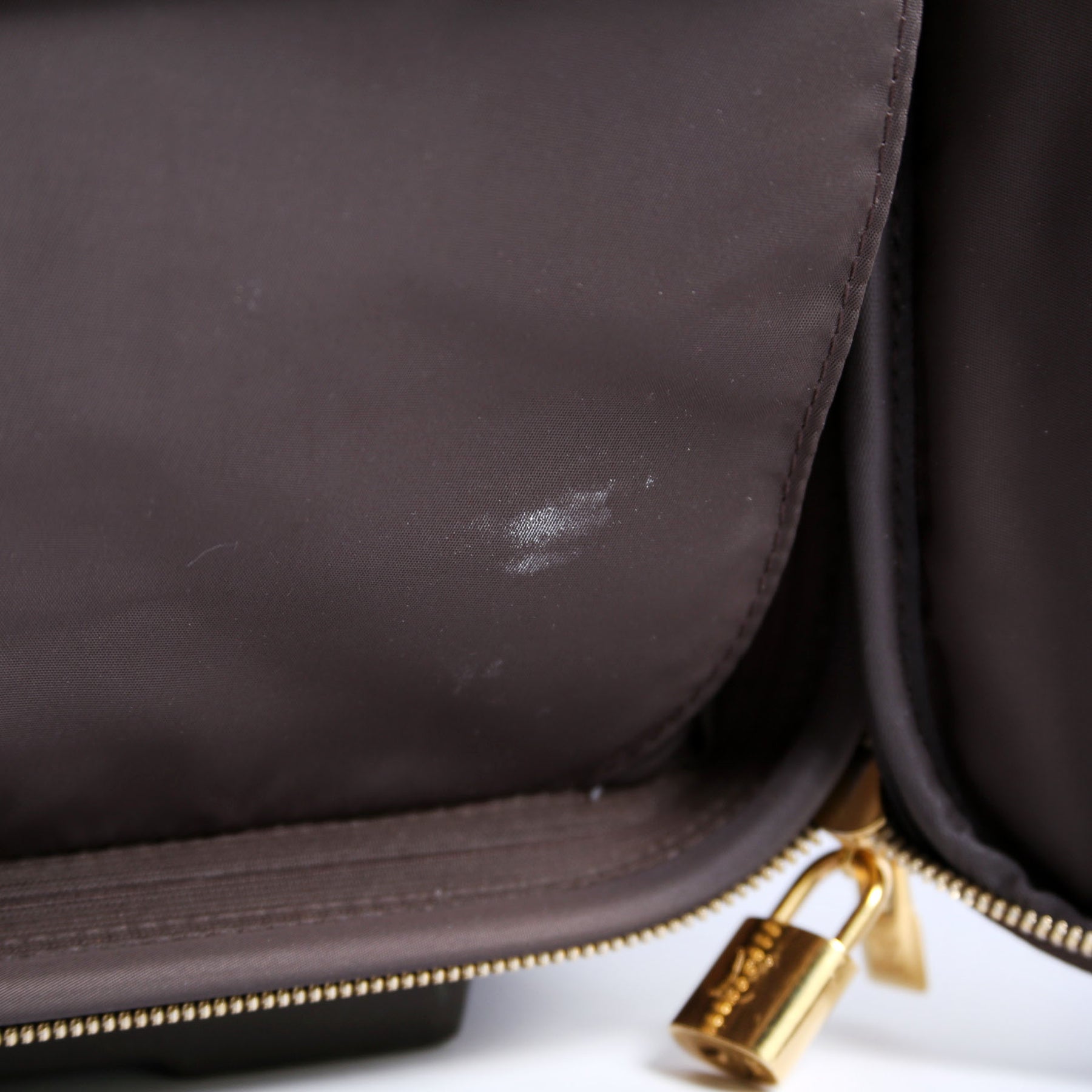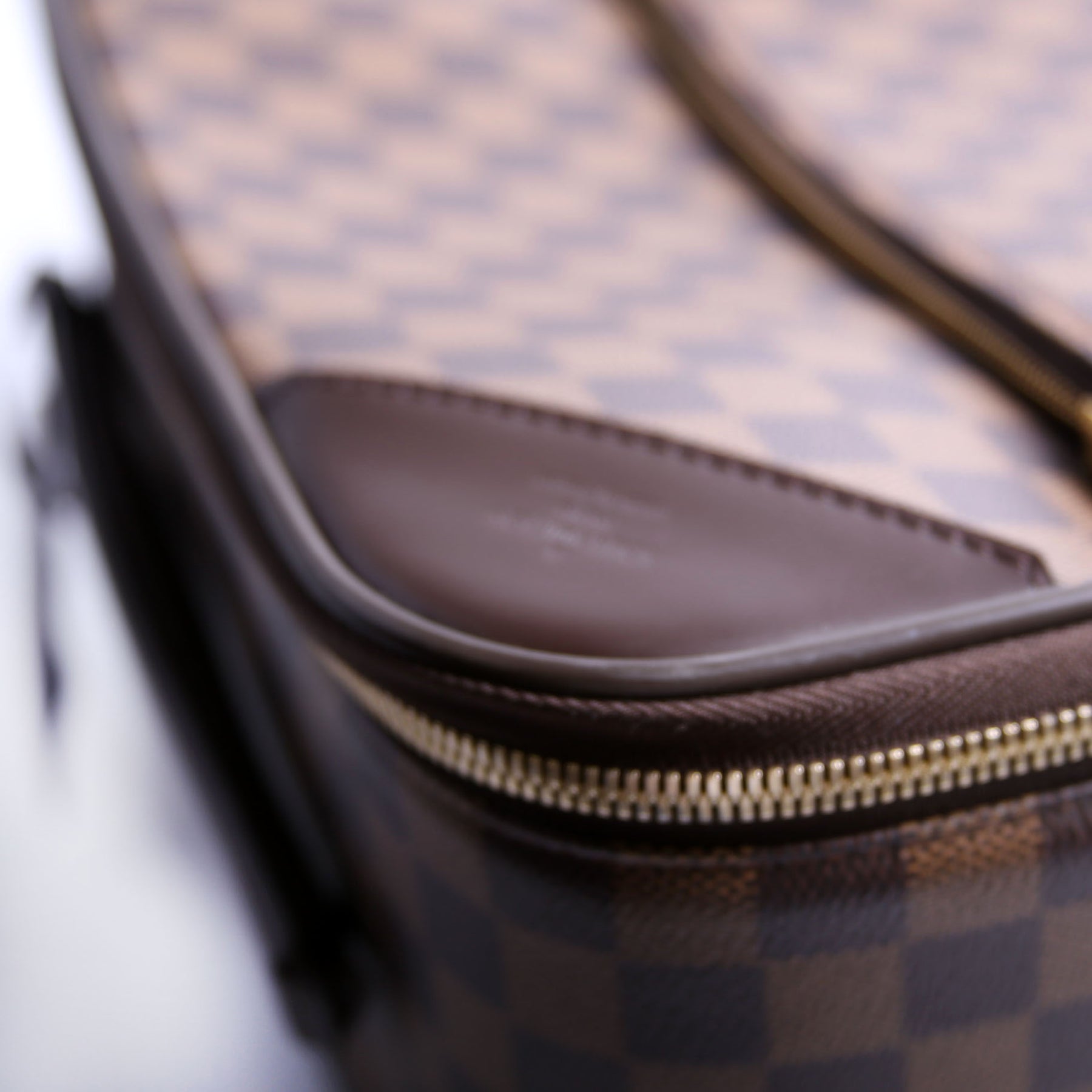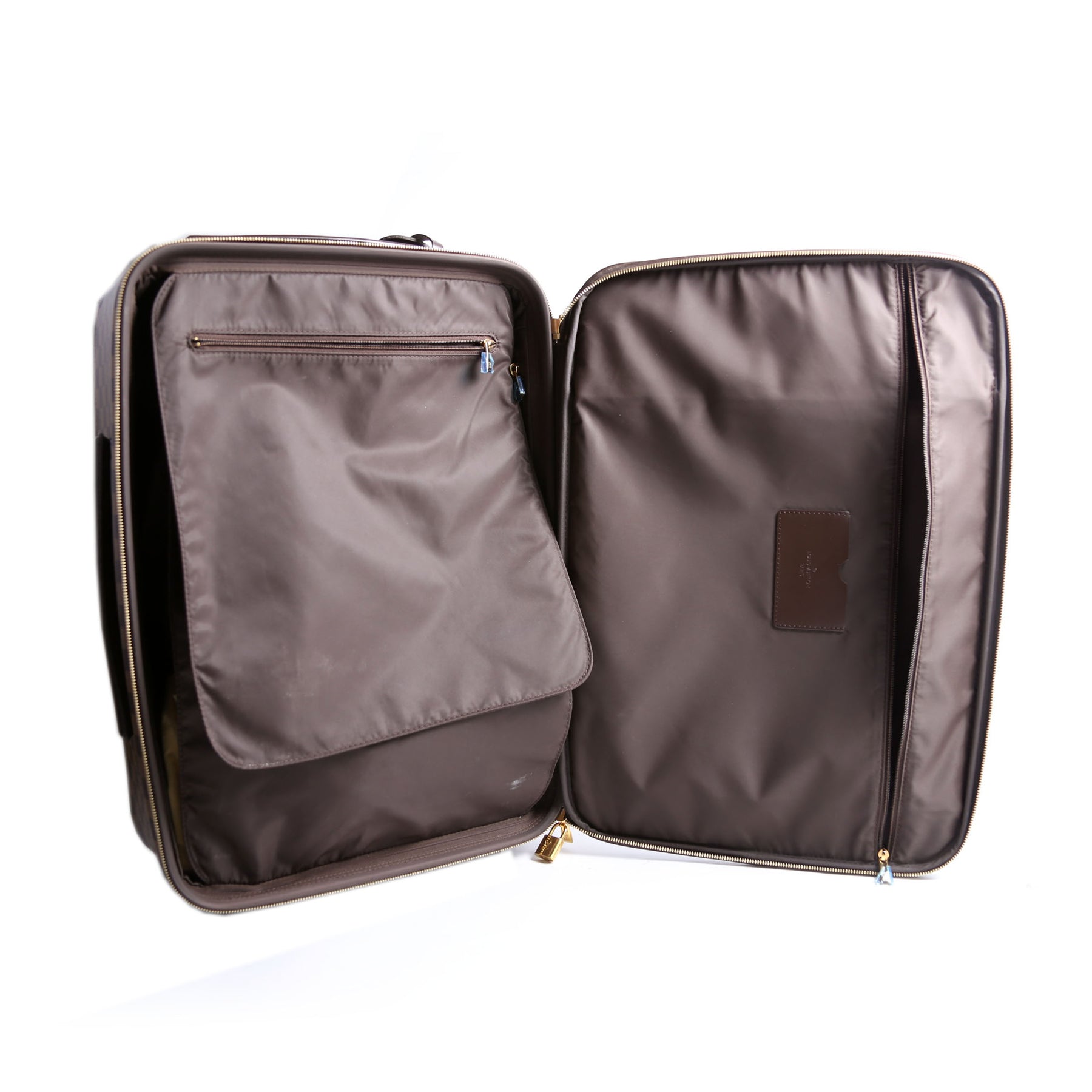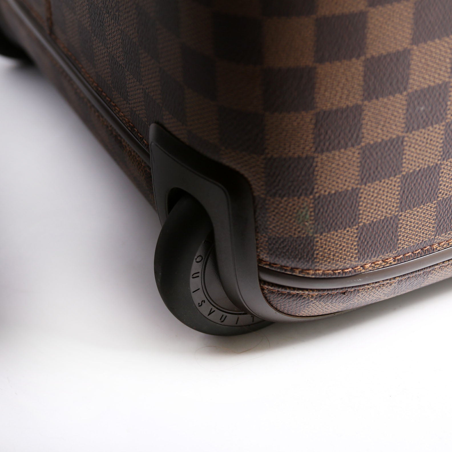 This pre-owned Louis Vuitton Pegase Legere 55 Business is guaranteed 100% authentic. The exterior is in the classic Louis Vuitton Damier Ebene coated canvas.