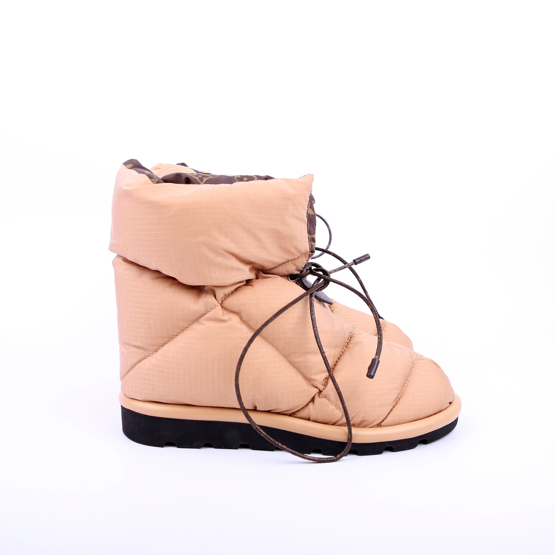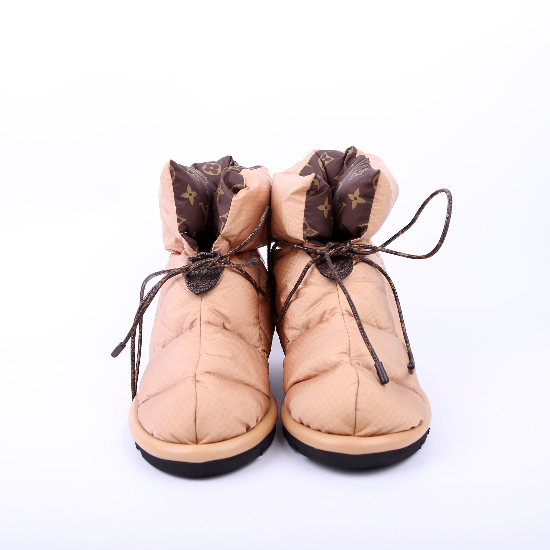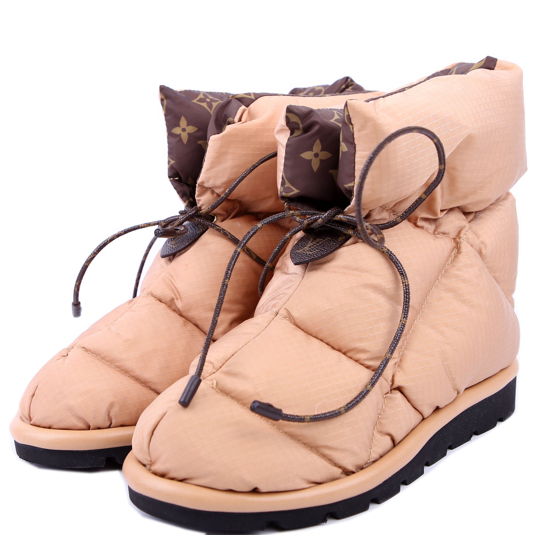 These pre-owned Louis Vuitton Pillow Flat Comfort Ankle Boots are guaranteed 100% authentic.