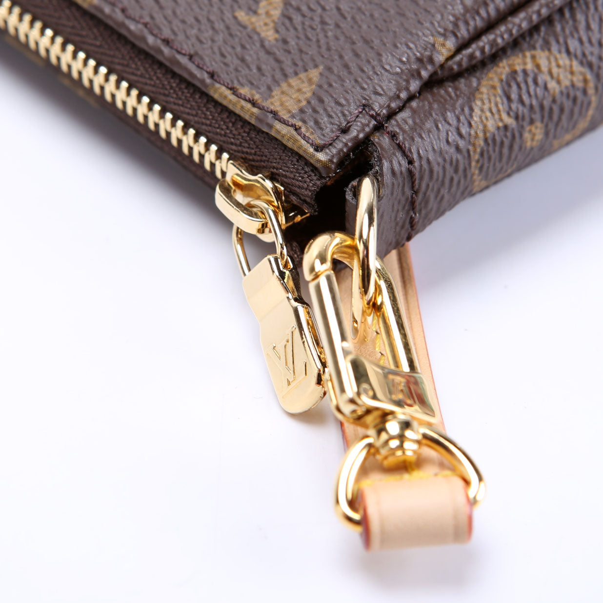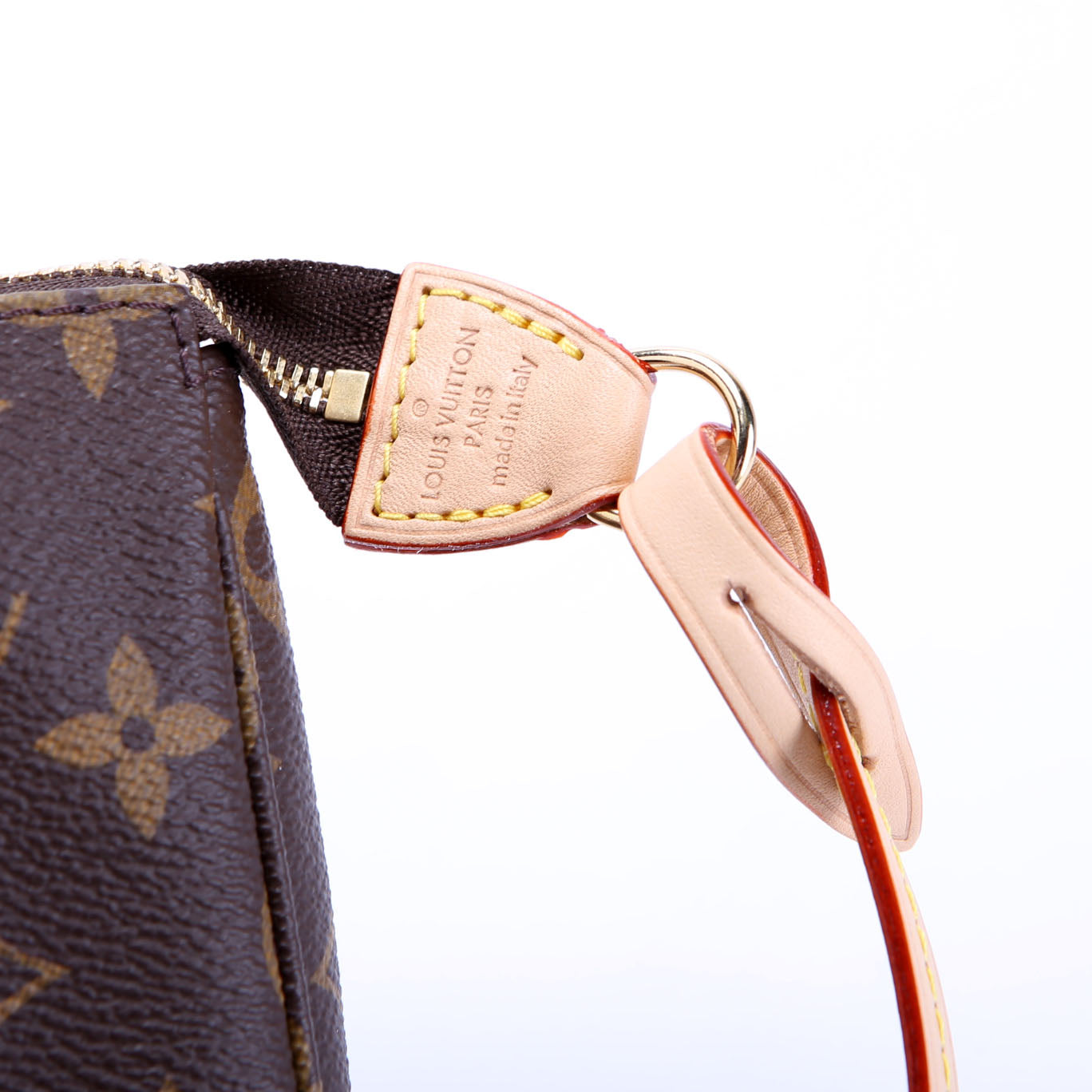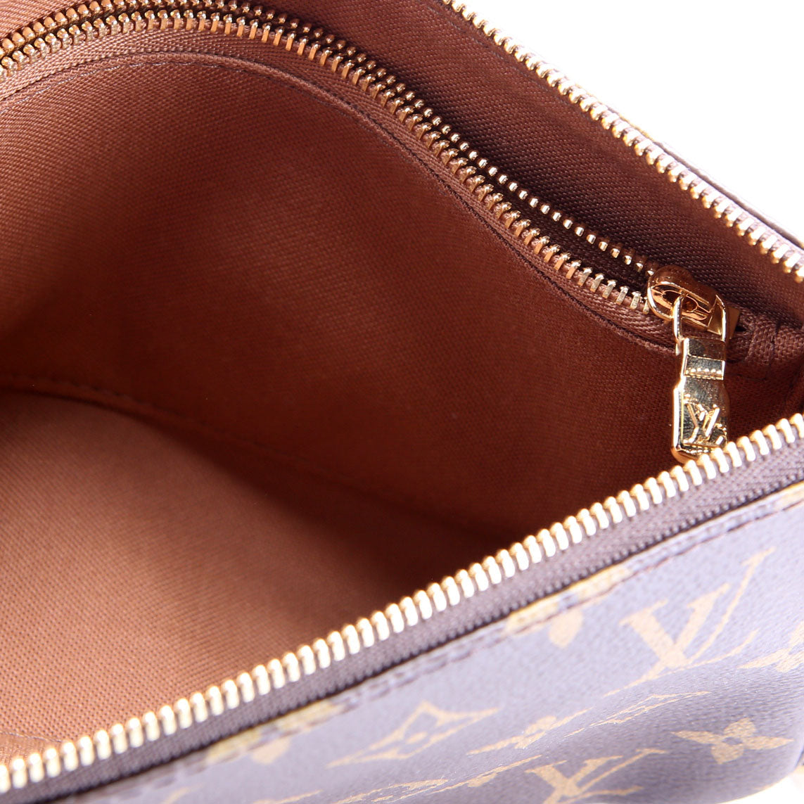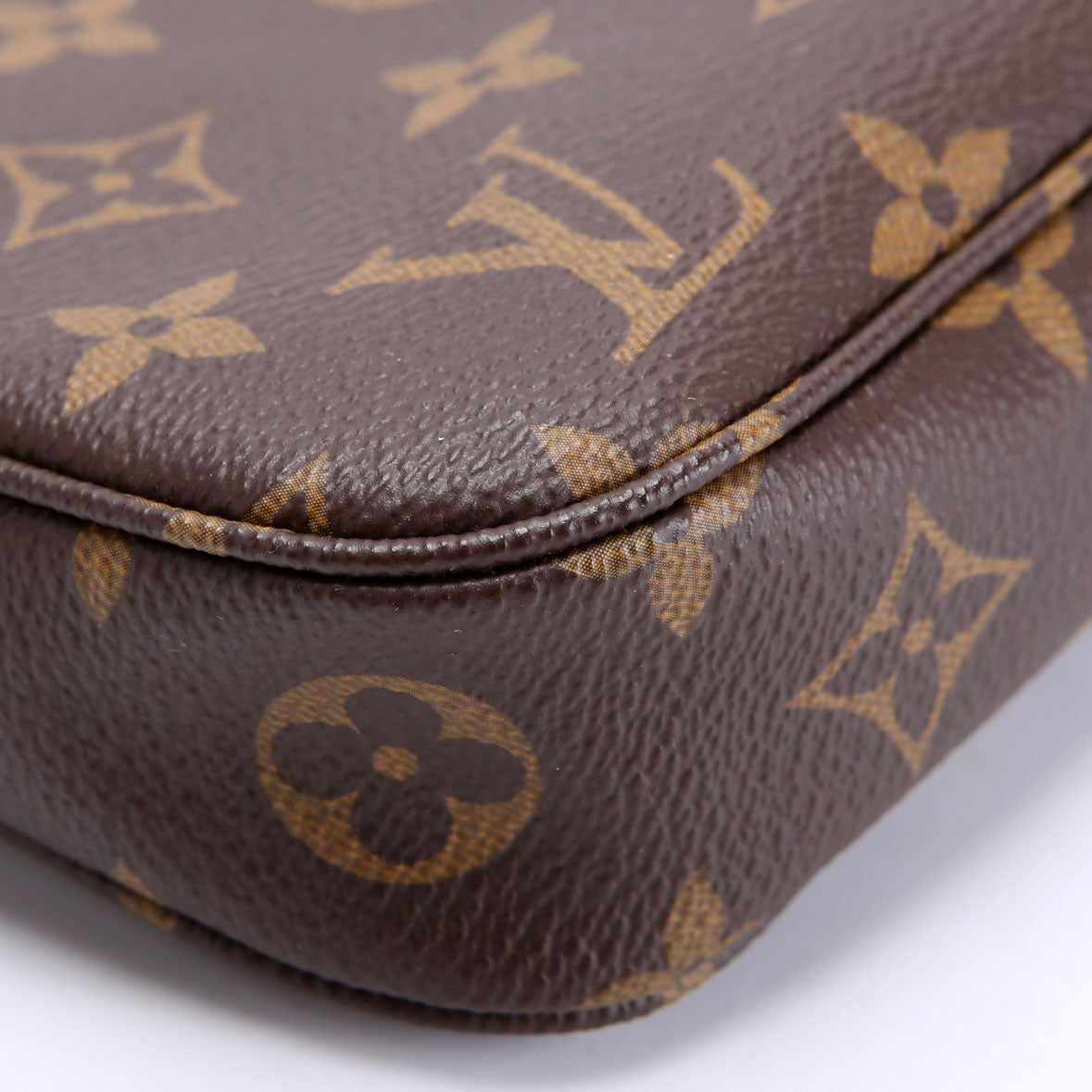 This pre-owned Louis Vuitton Pochette Accessories NV With Chain is guaranteed 100% authentic. The exterior is in the classic Monogram coated canvas.