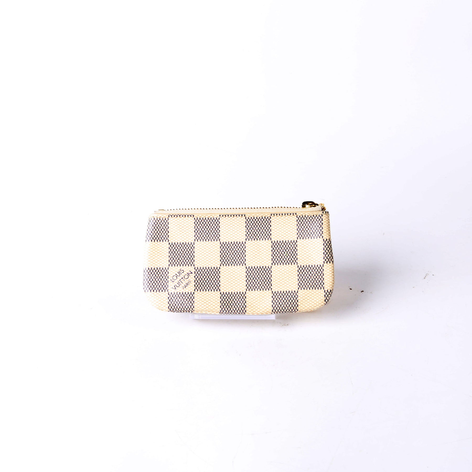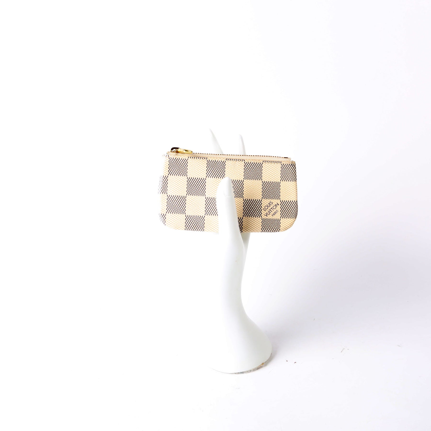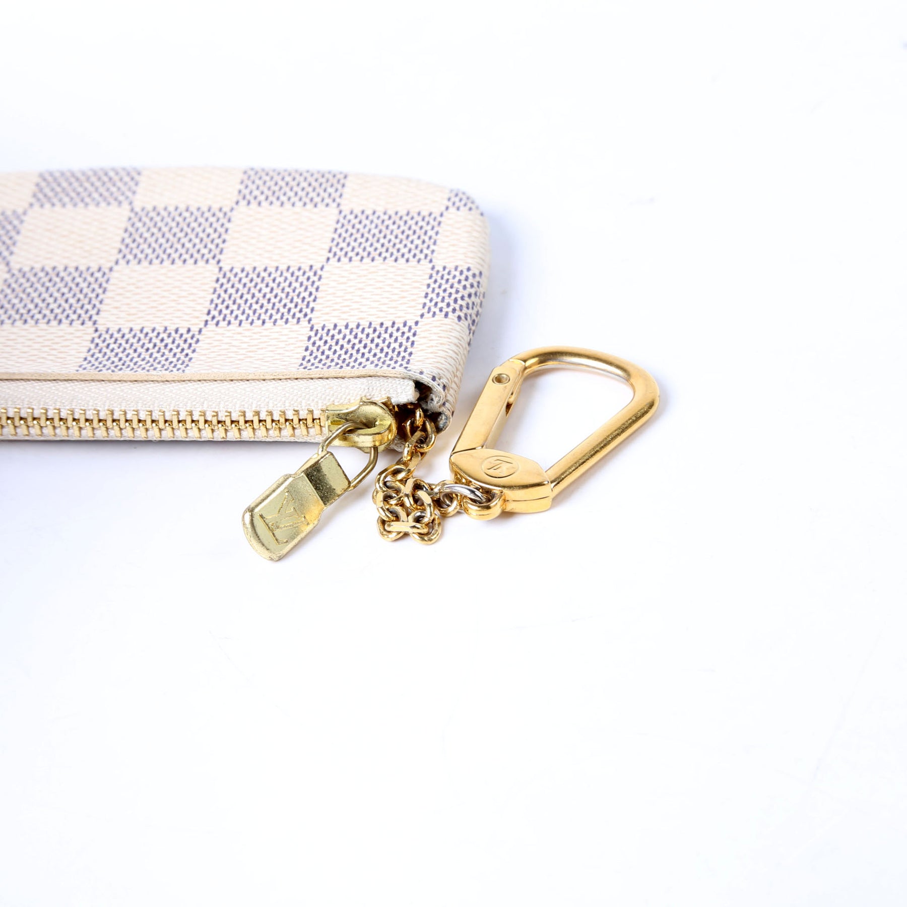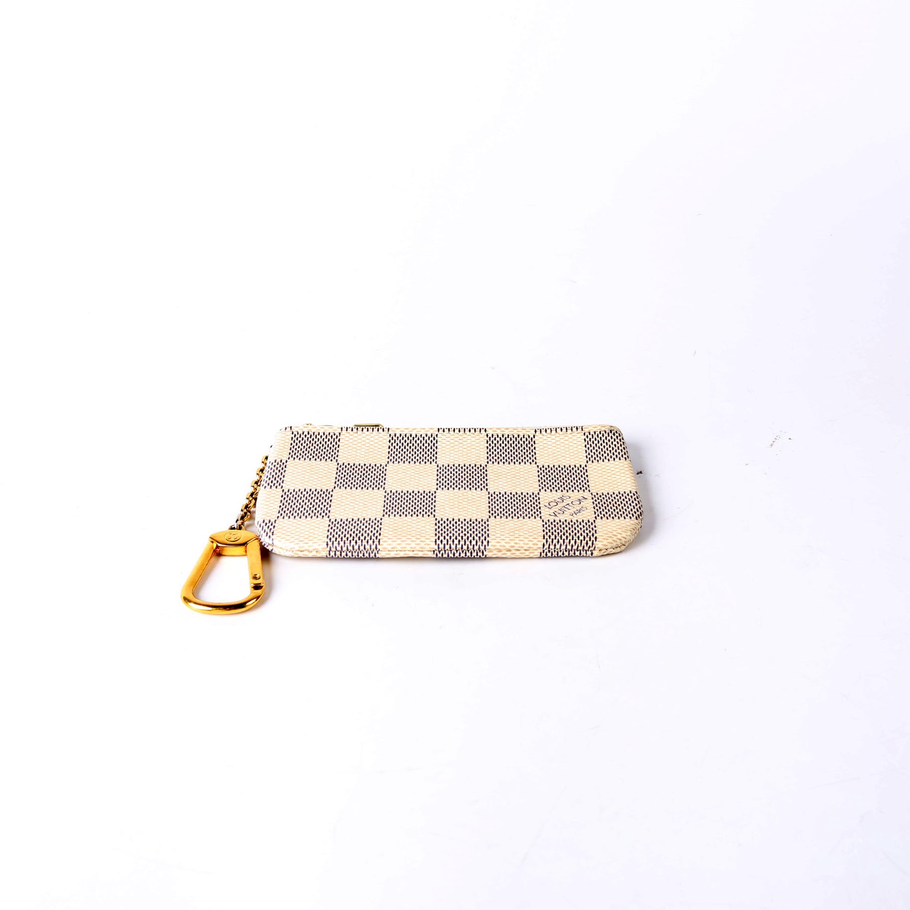 This pre-owned Louis Vuitton Pochette Cles is guaranteed 100% authentic. The exterior is in the classic Damier Azur coated canvas.