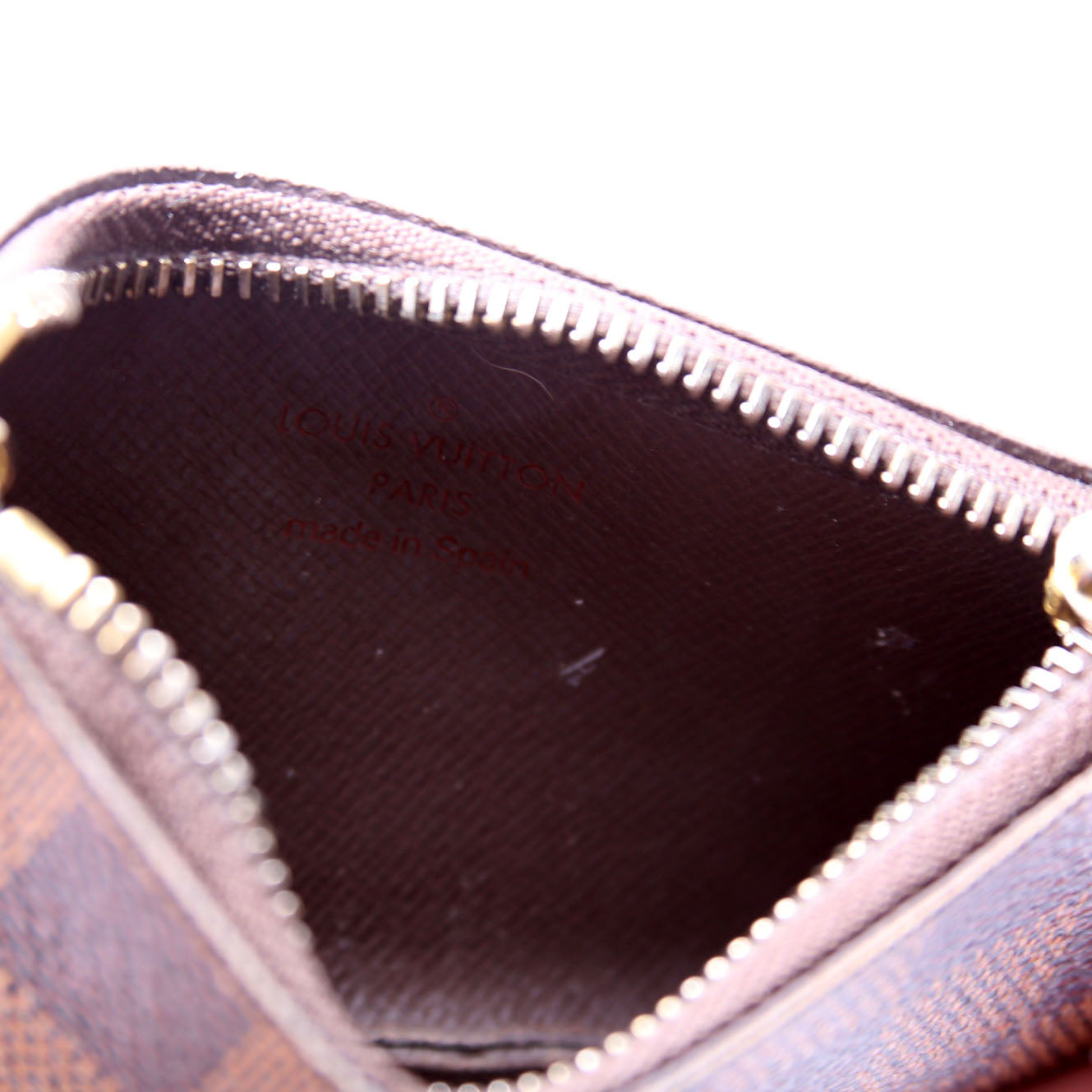 This pre-owned Louis Vuitton Pochette Cles is guaranteed 100% authentic. The exterior is in the classic Louis Vuitton Damier Ebene coated canvas.