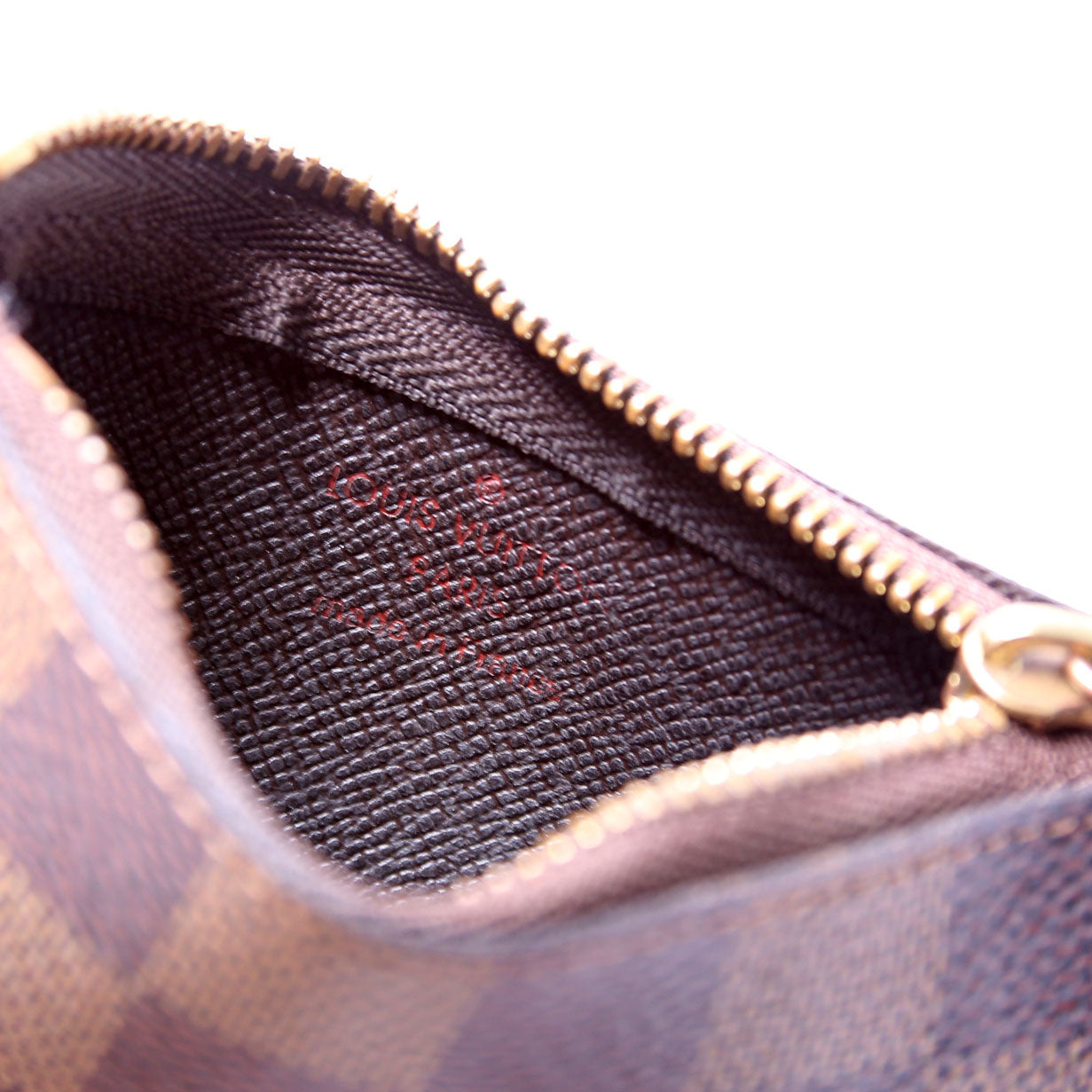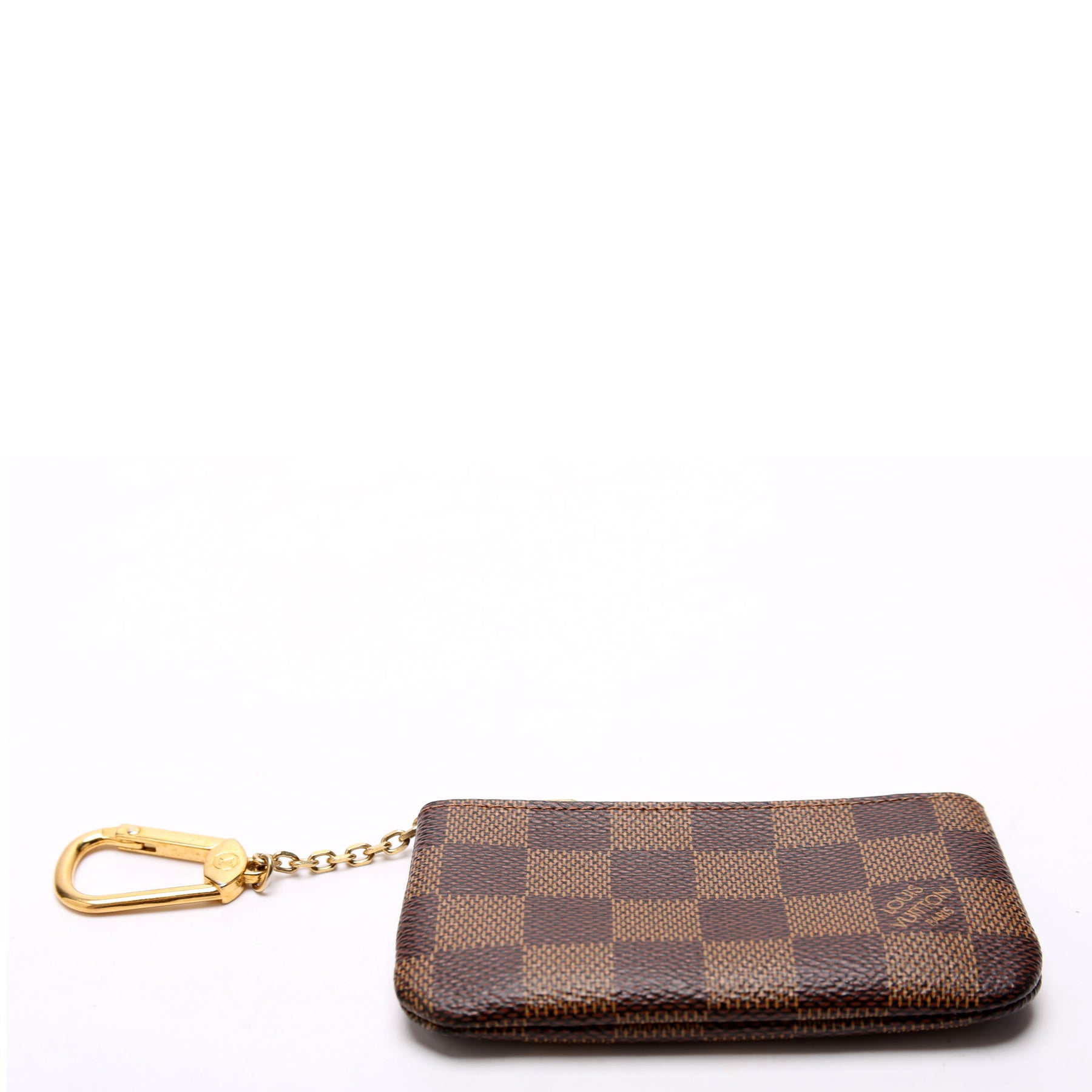 This pre-owned Louis Vuitton Pochette Cles is guaranteed 100% authentic. The exterior is in the classic Louis Vuitton Damier Ebene leather.