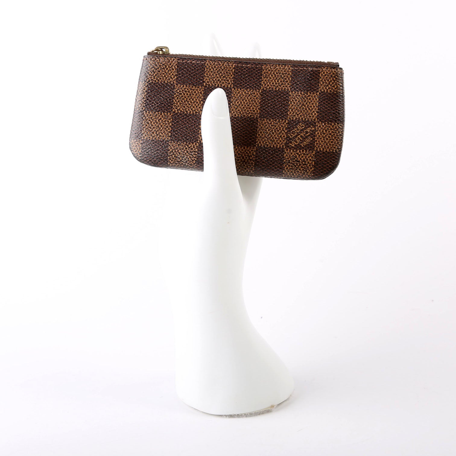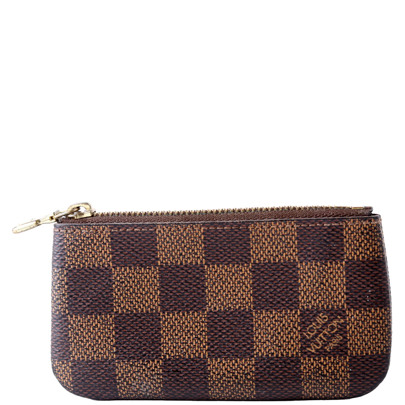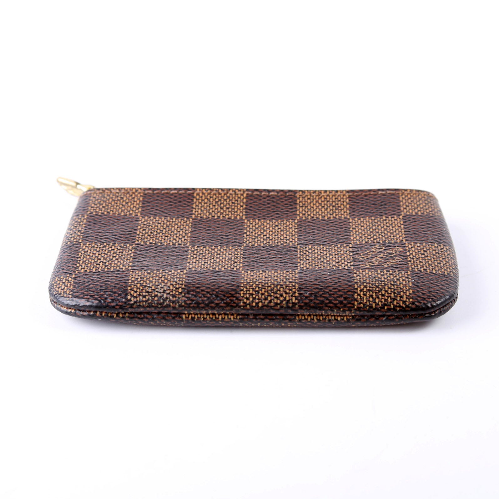 This pre-owned Louis Vuitton Pochette Cles is guaranteed 100% authentic. The exterior is in the classic Louis Vuitton Damier Ebene coated canvas.