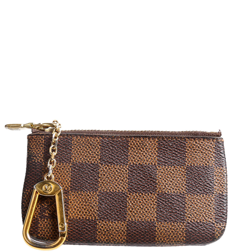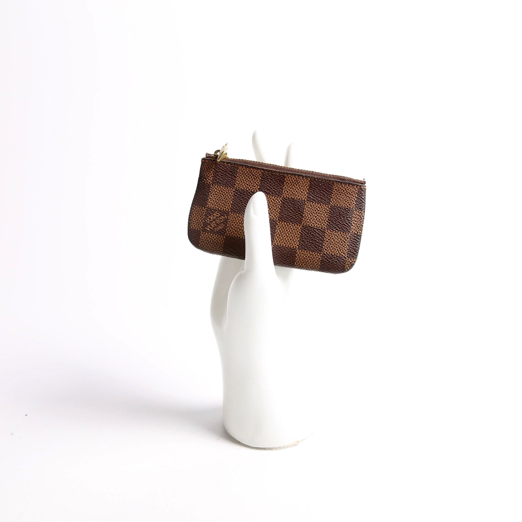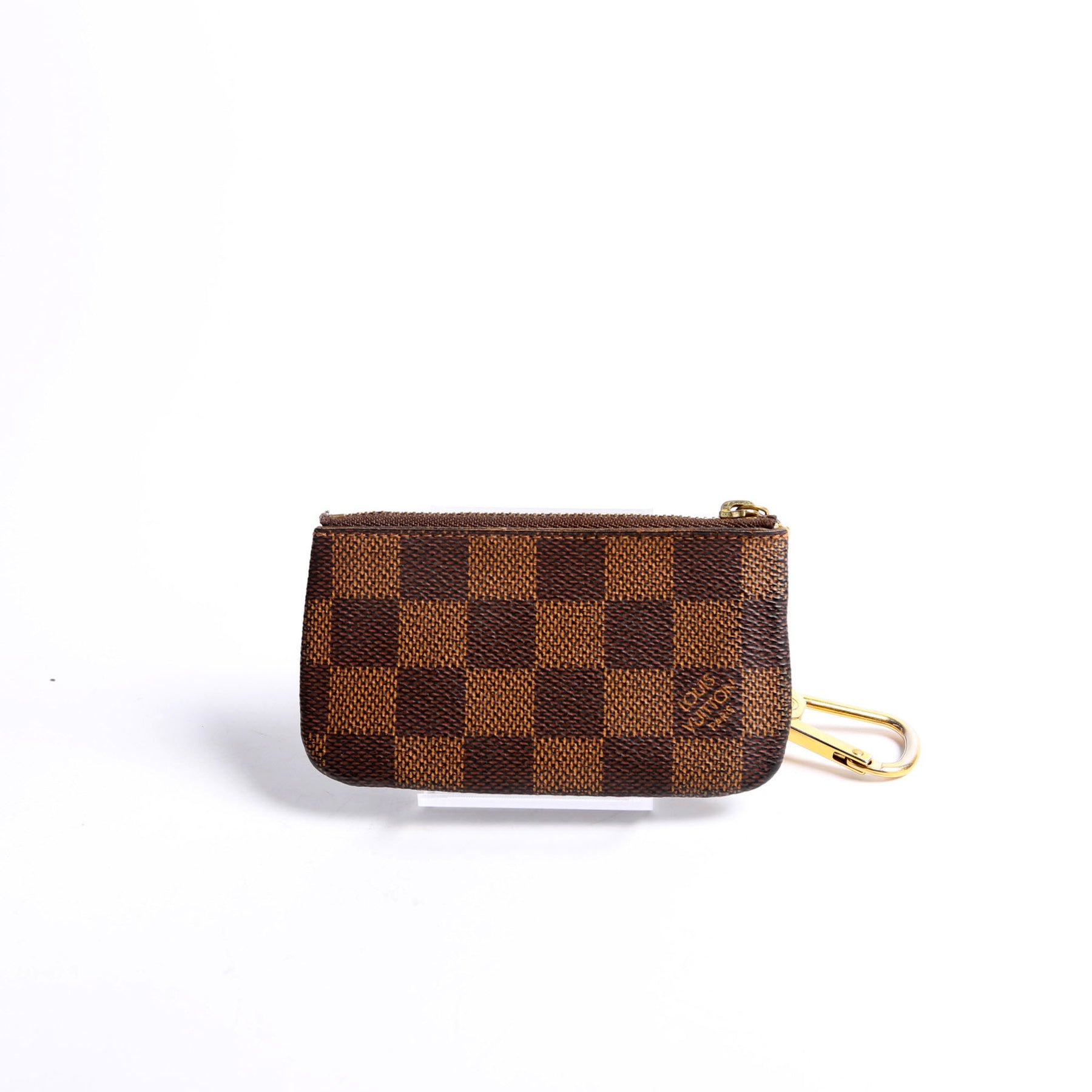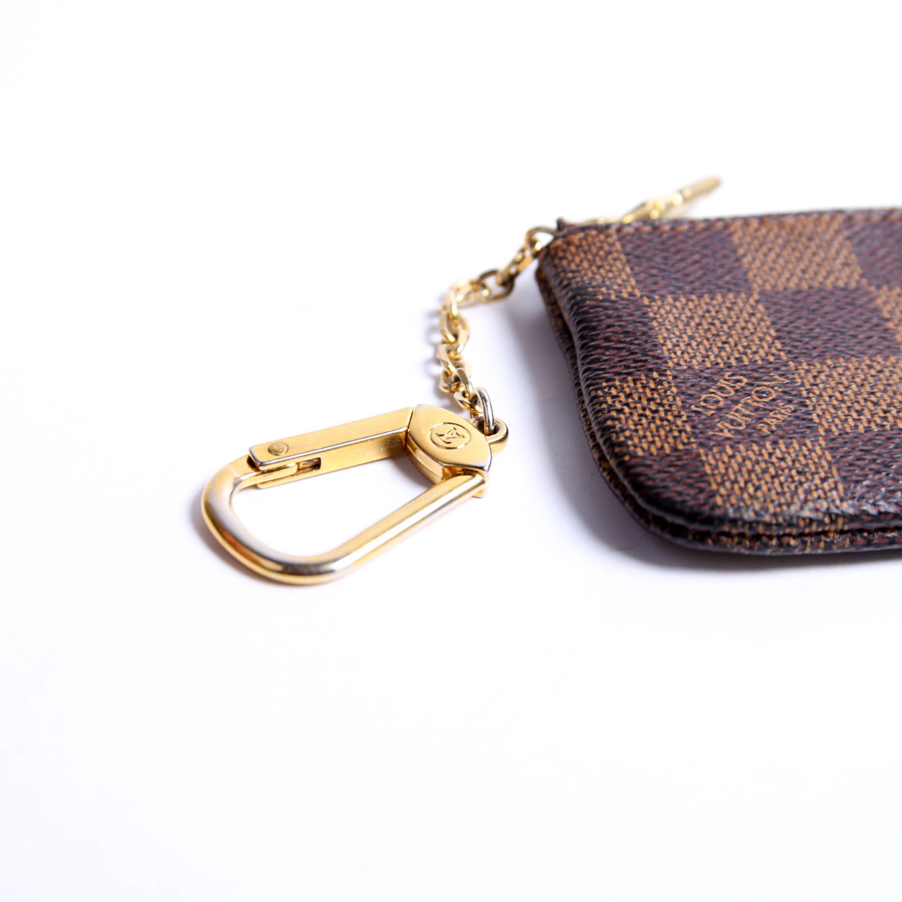 This pre-owned Louis Vuitton Pochette Cles is guaranteed 100% authentic. The exterior is in the classic Louis Vuitton Damier Ebene Coated Canvas.
