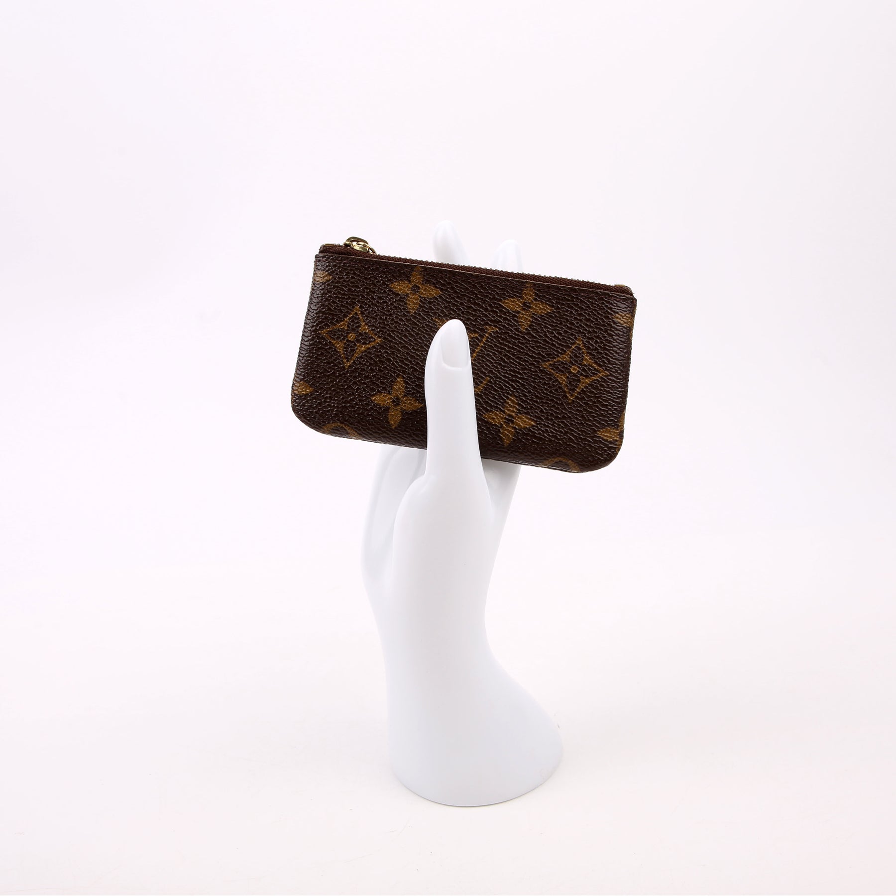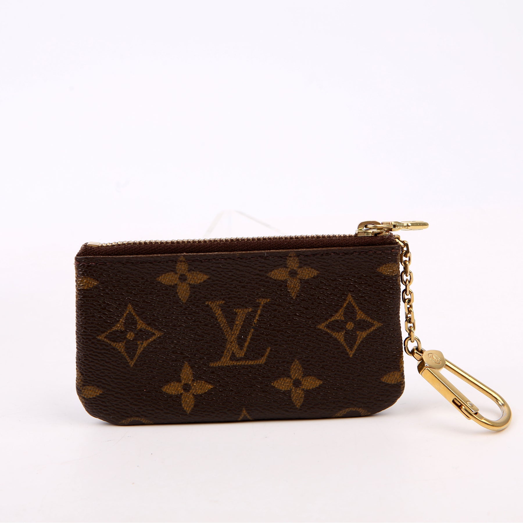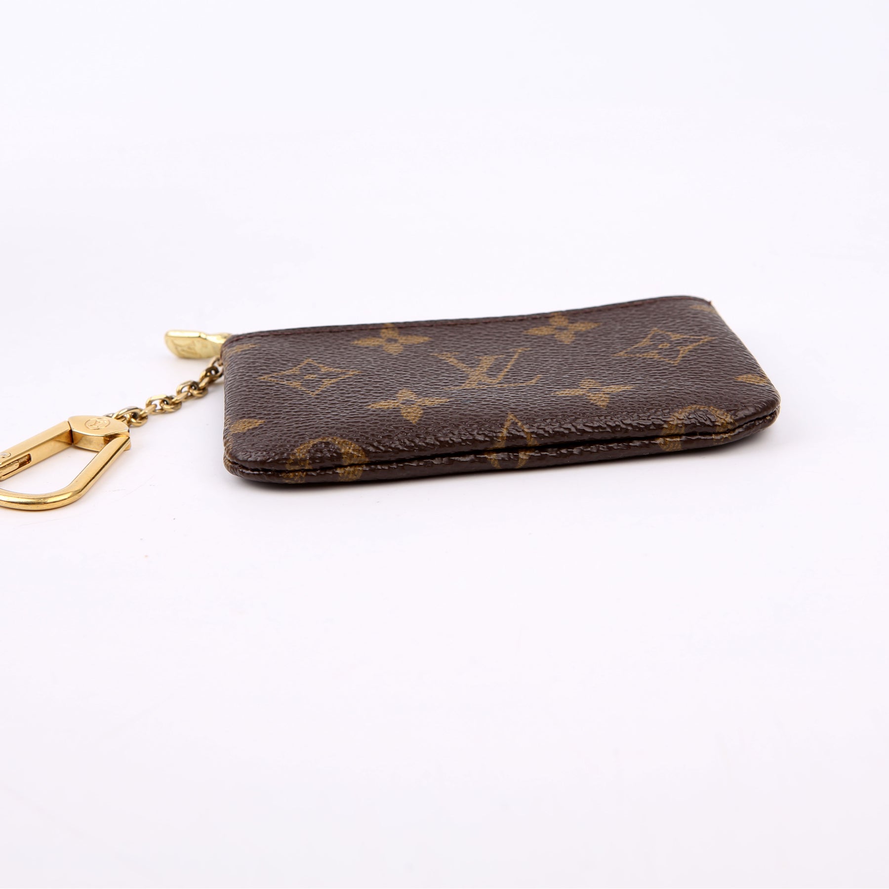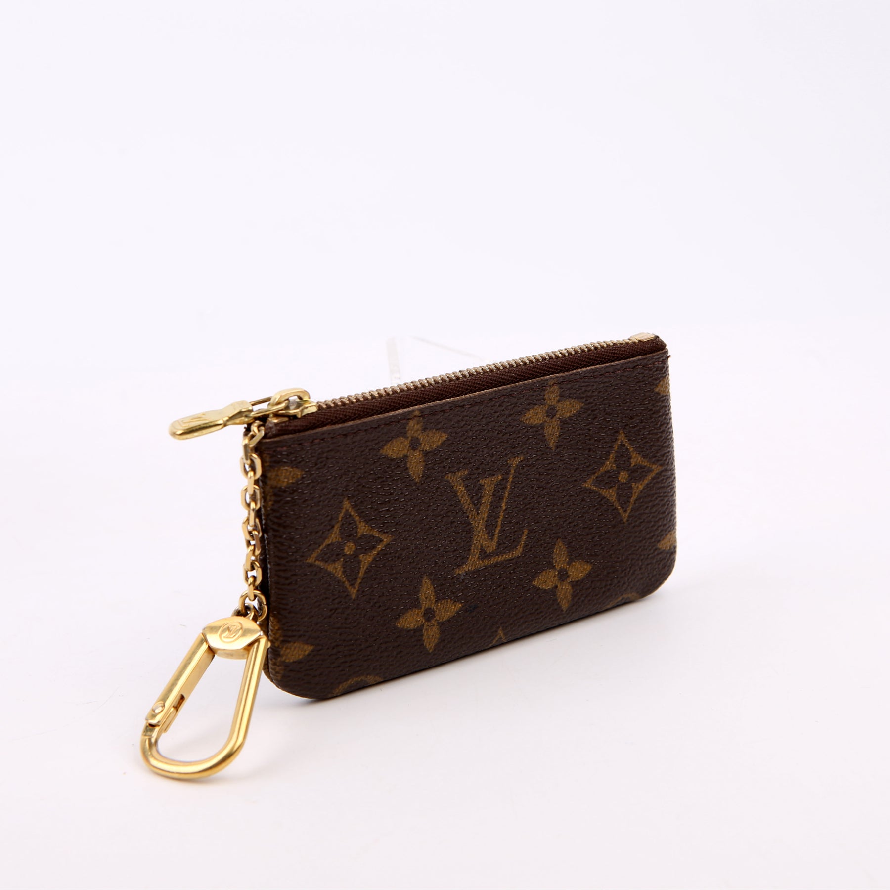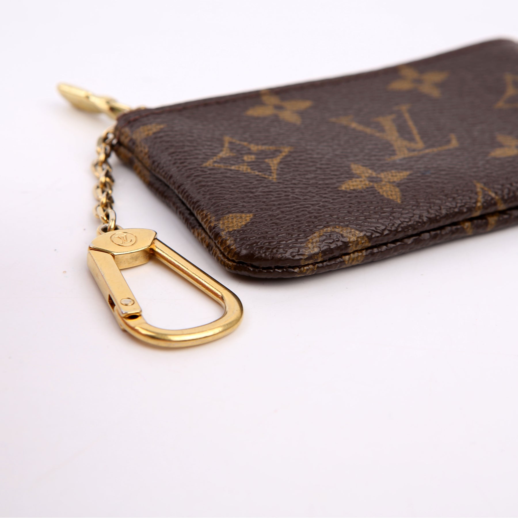 This pre-owned Louis Vuitton Pochette Cles is guaranteed 100% authentic. The exterior is in the classic Louis Vuitton Monogram coated canvas.