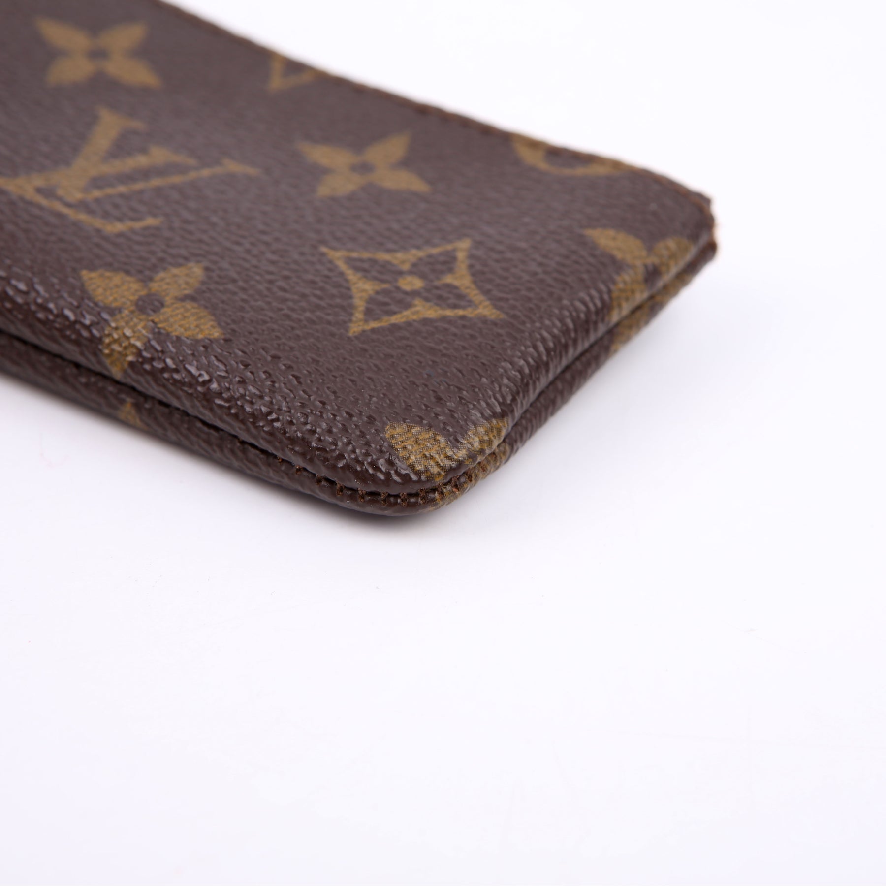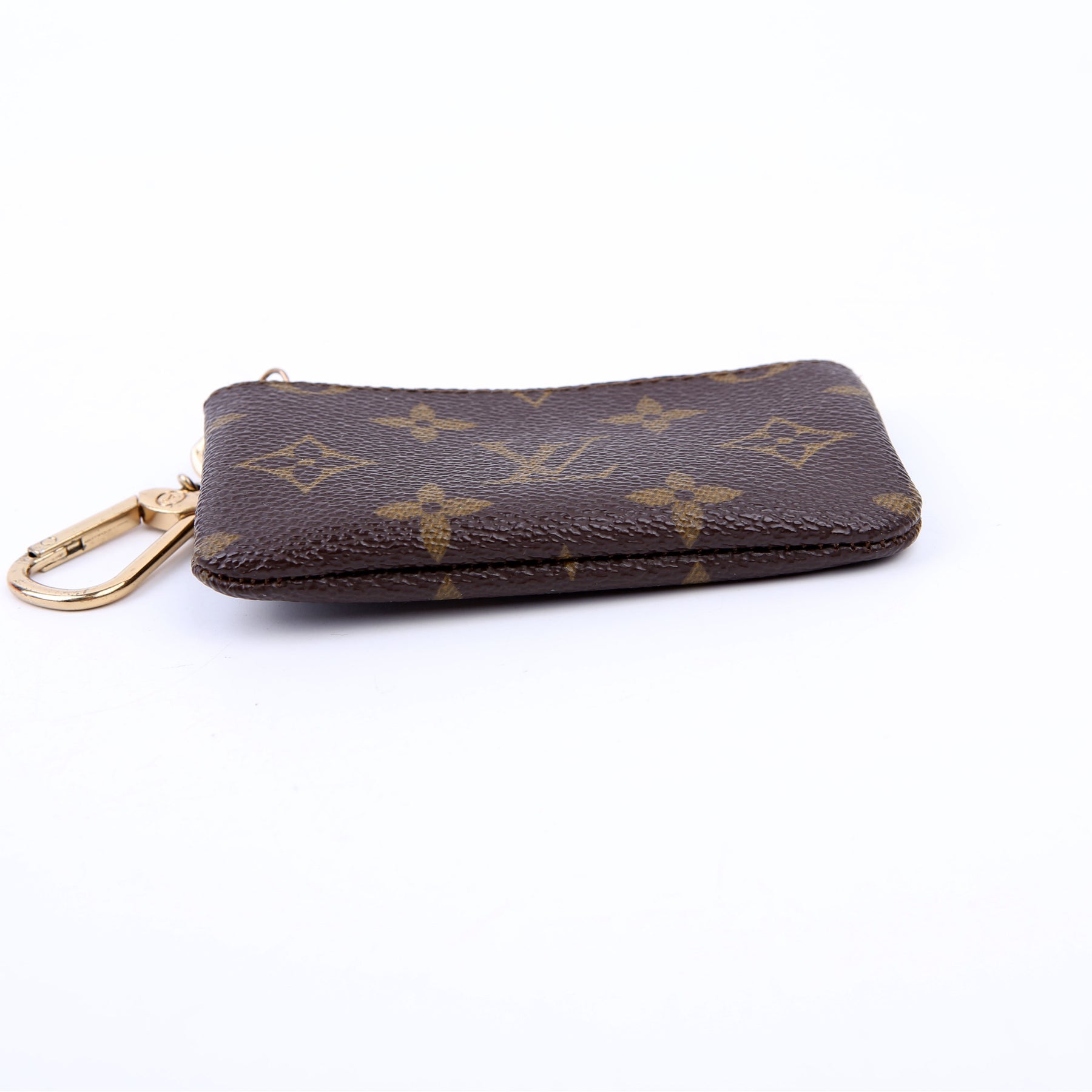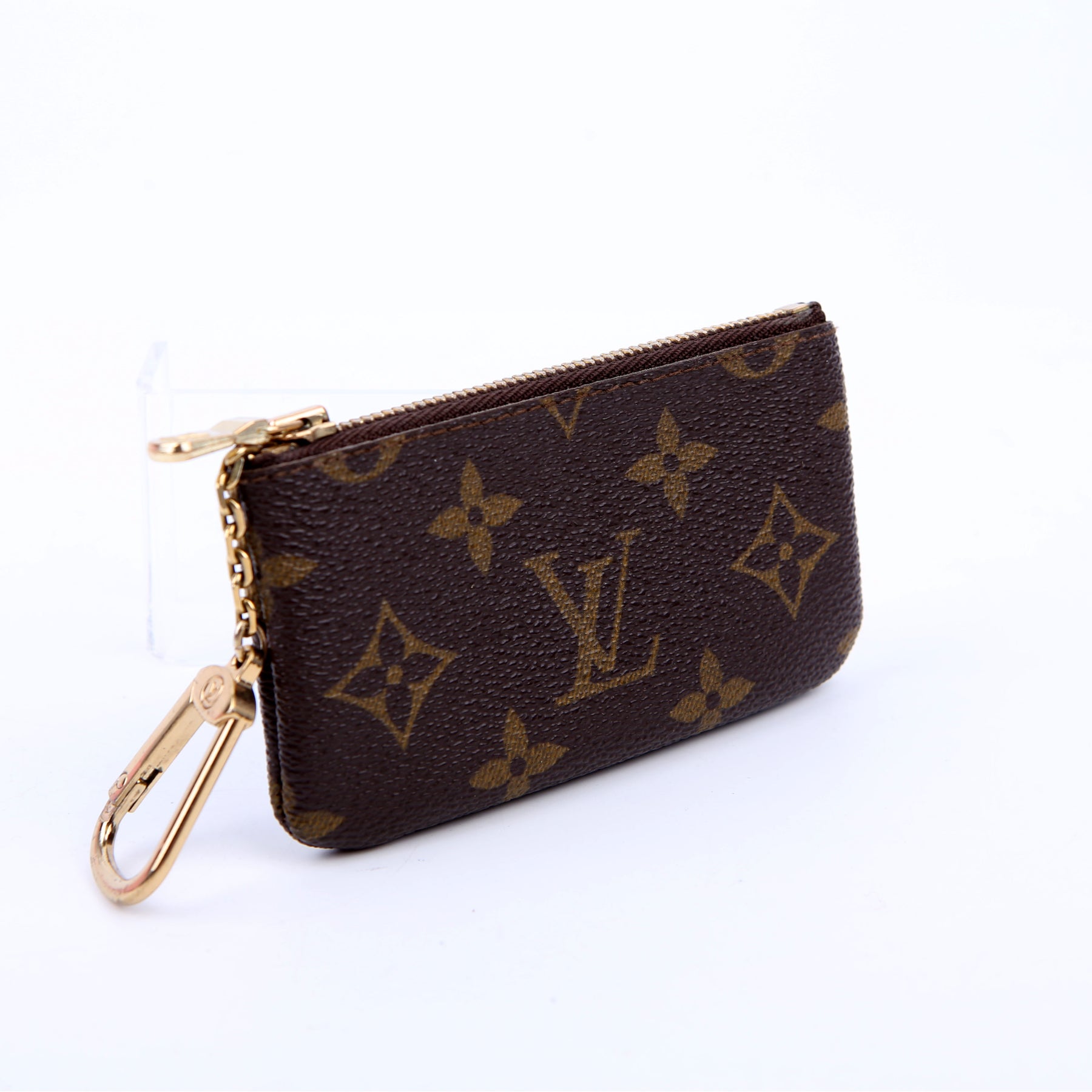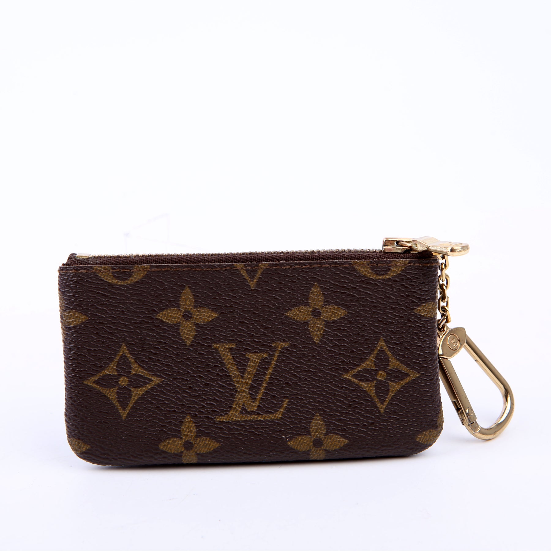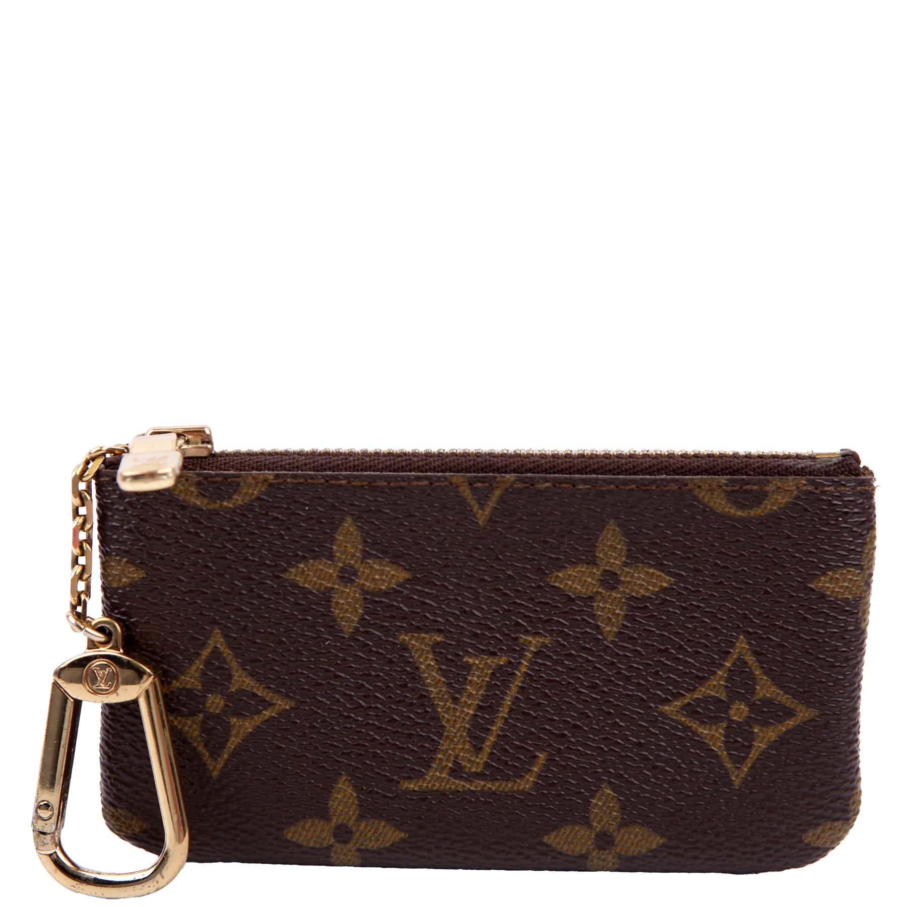 This pre-owned Louis Vuitton Pochette Cles is guaranteed 100% authentic. The exterior is in the classic Louis Vuitton Monogram coated canvas.