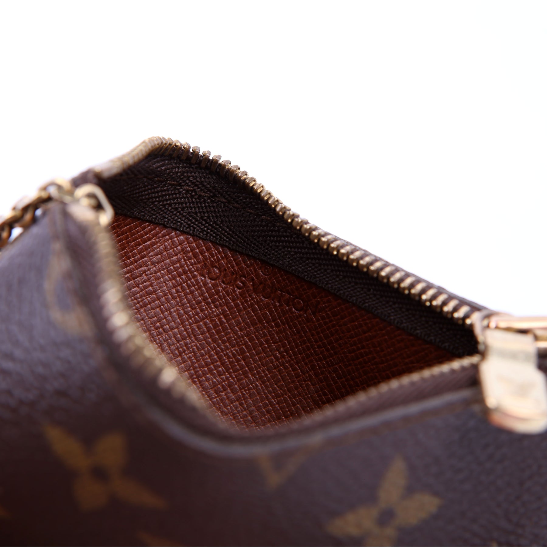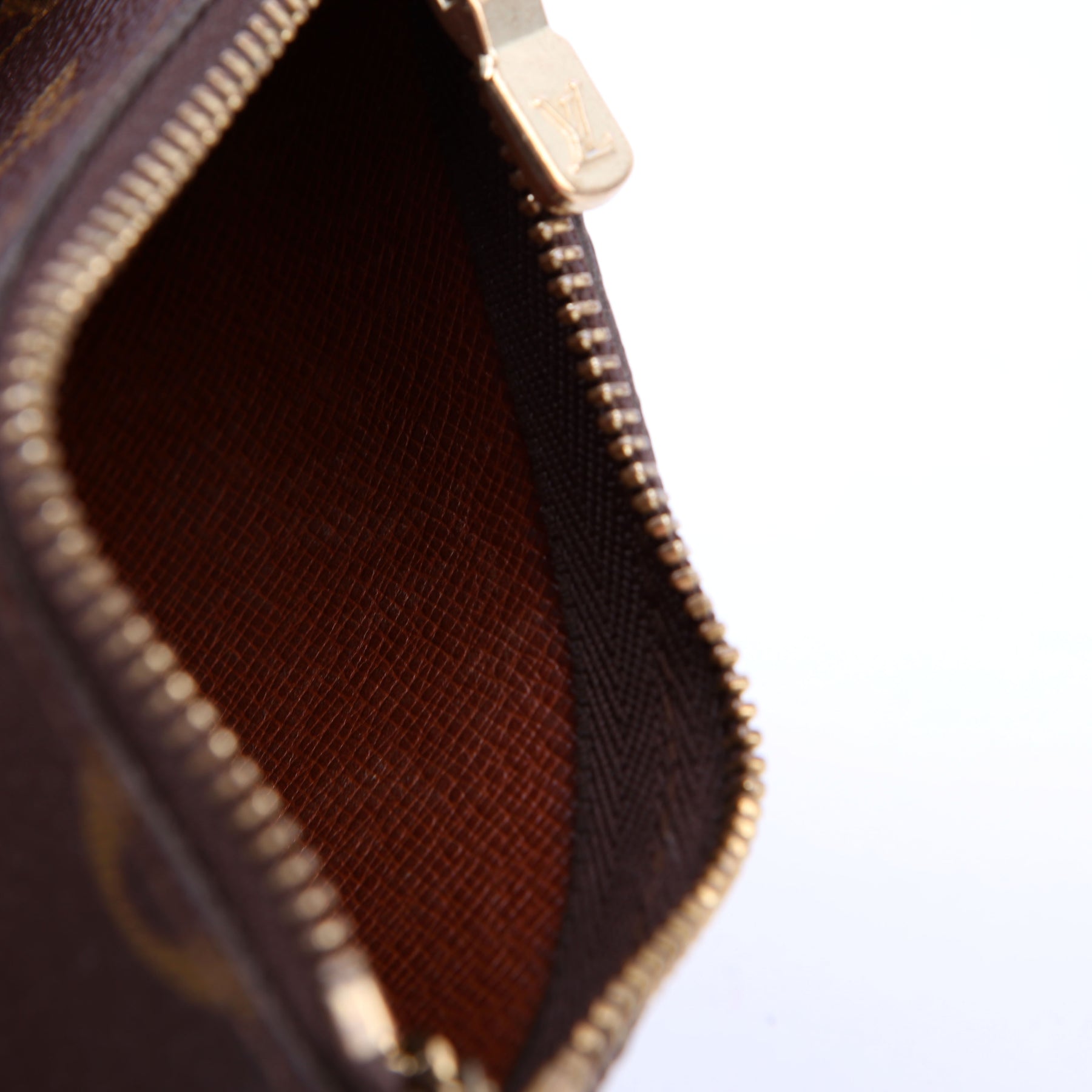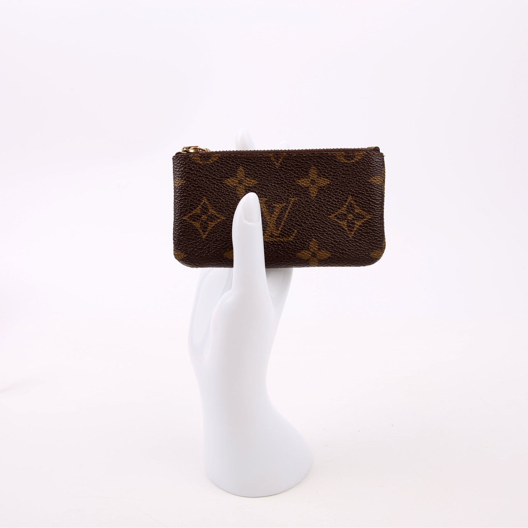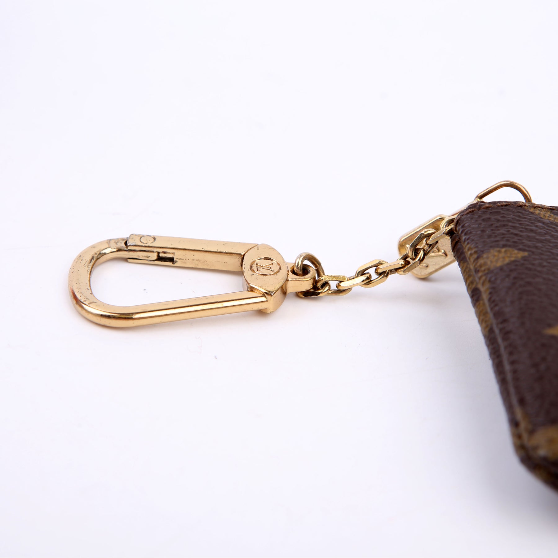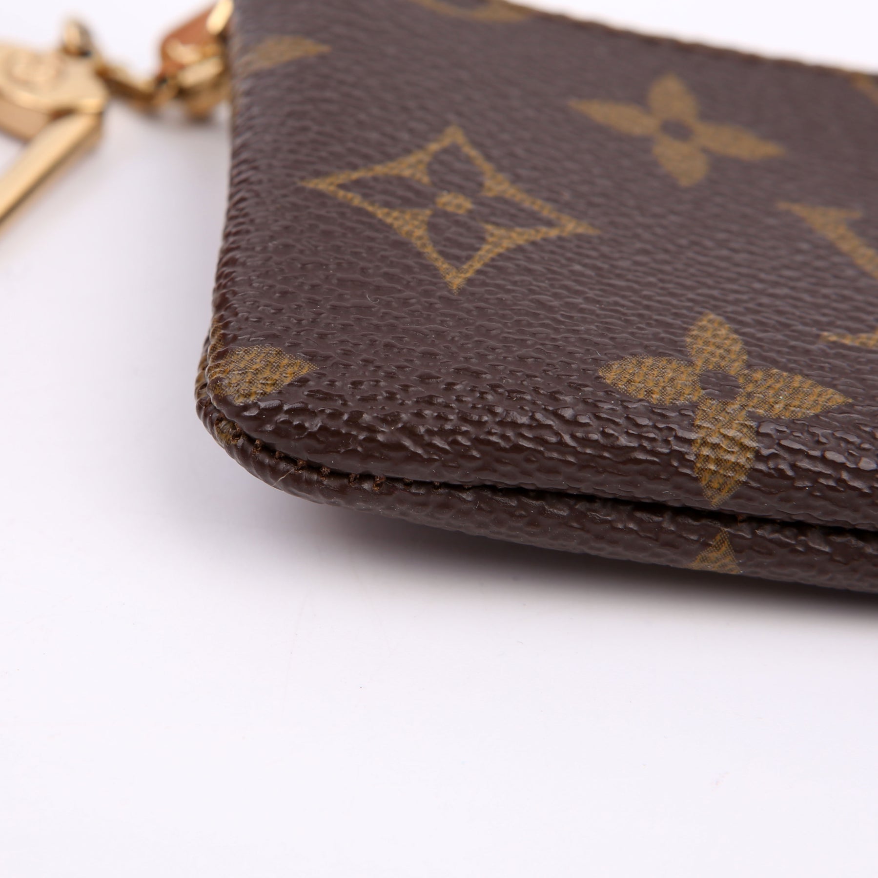 This pre-owned Louis Vuitton Pochette Cles is guaranteed 100% authentic. The exterior is in the classic Louis Vuitton Monogram coated canvas.