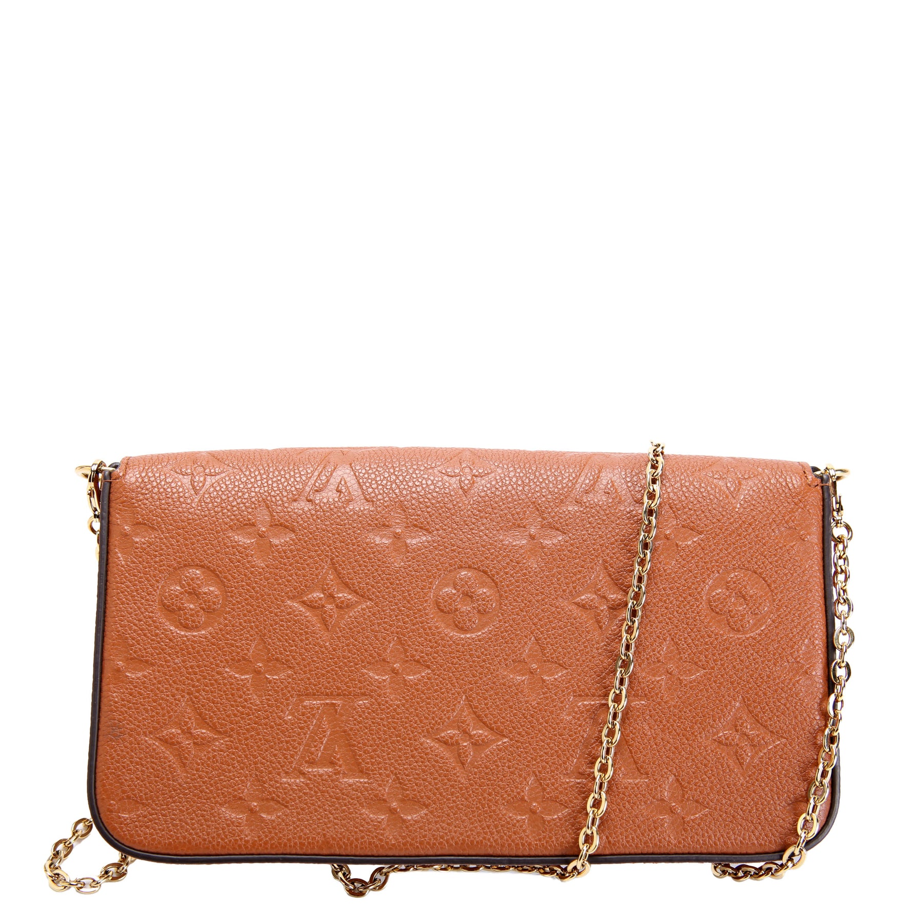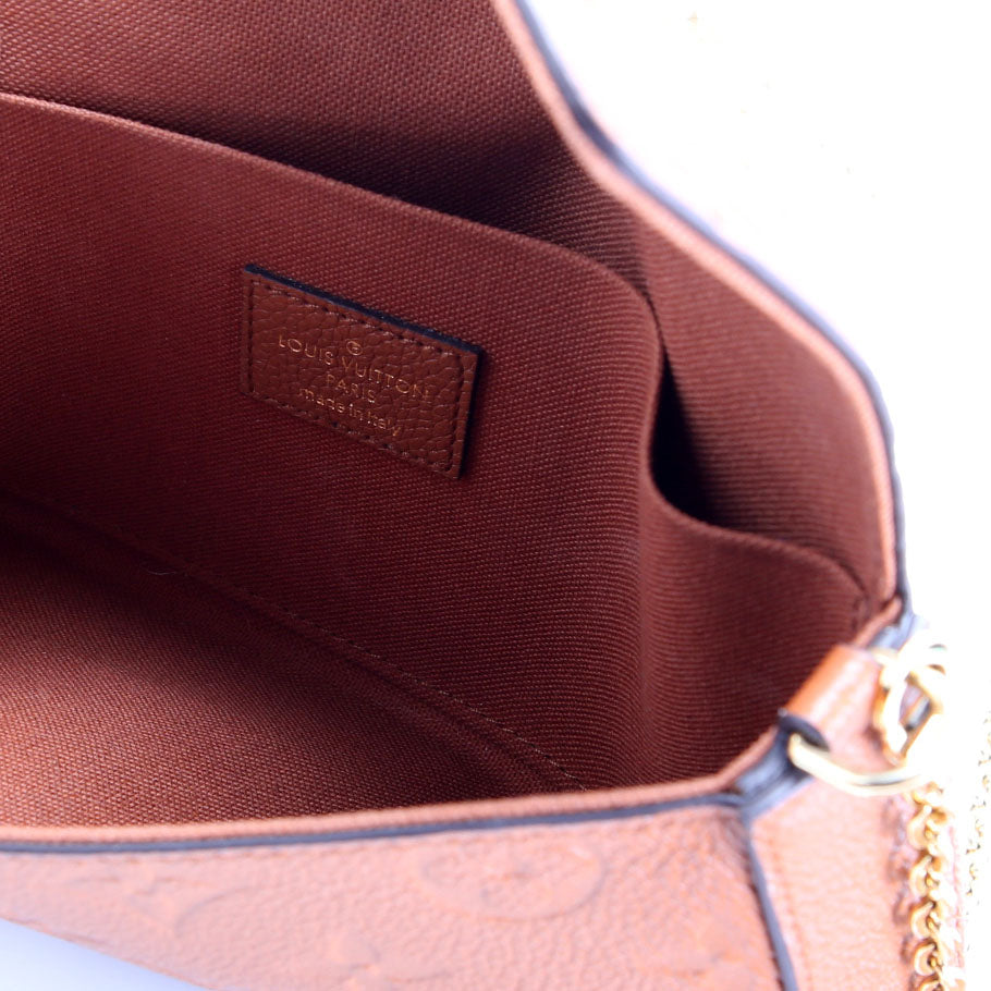 This pre-owned Louis Vuitton Pochette Felicie is guaranteed 100% authentic. The exterior is in the classic Louis Vuitton Empreinte leather.