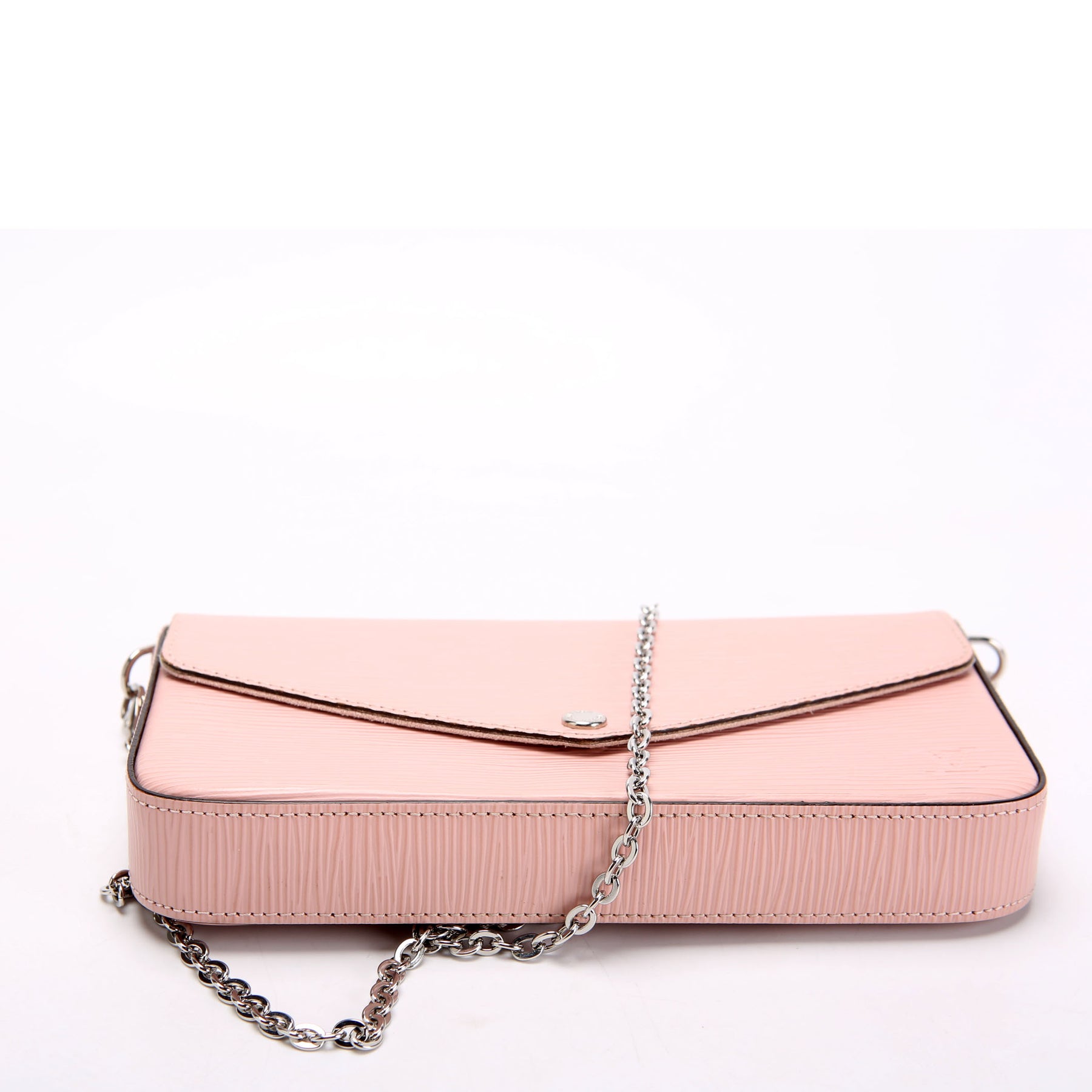 This pre-owned Louis Vuitton Pochette Felicie Epi Leather is guaranteed 100% authentic. The exterior is in the classic Louis Vuitton Epi Leather material.