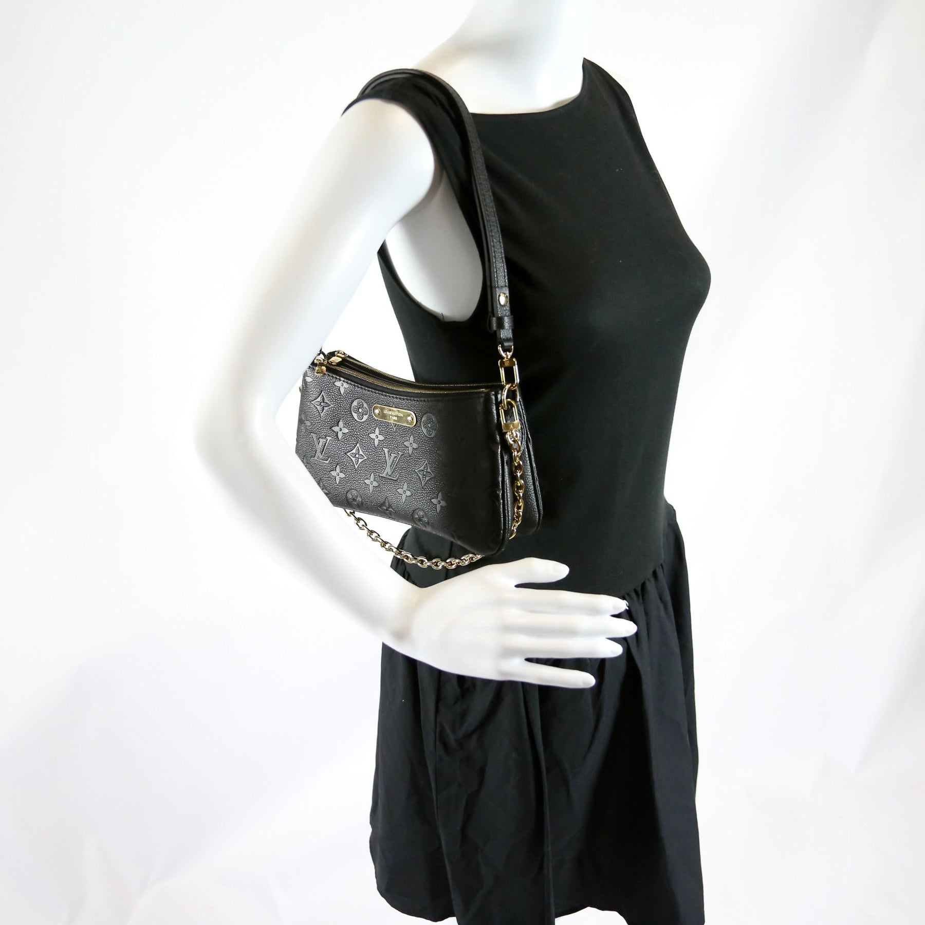 This pre-owned Louis Vuitton Pochette Liv is guaranteed 100% authentic. The exterior is in the classic Louis Vuitton Empreinte leather.