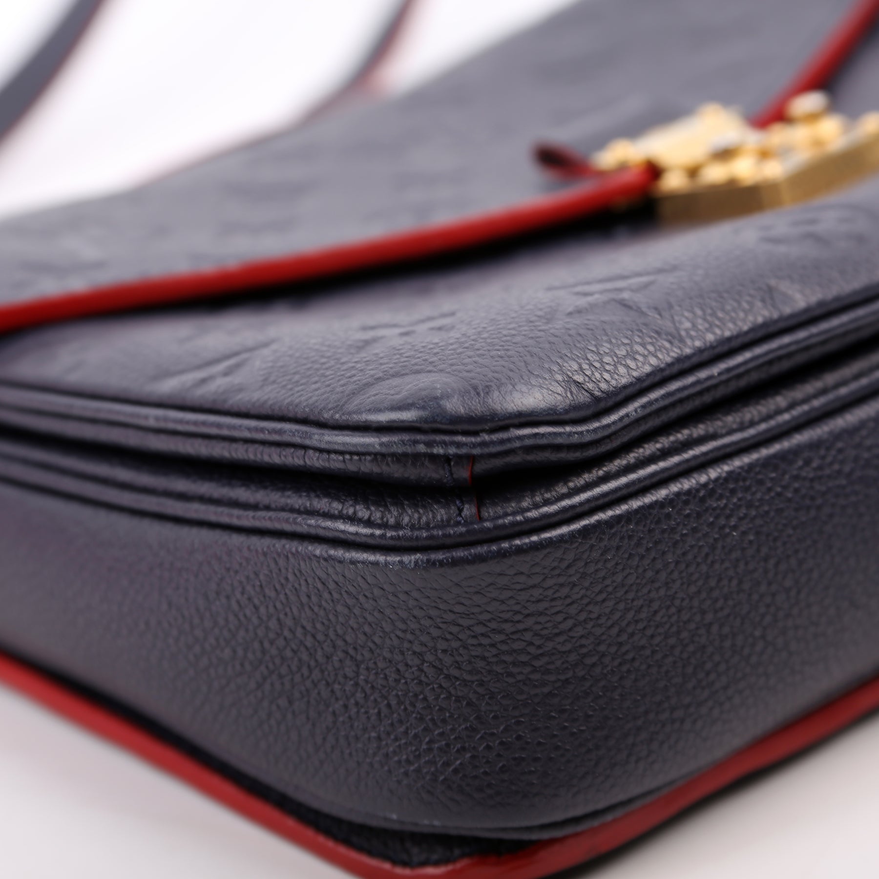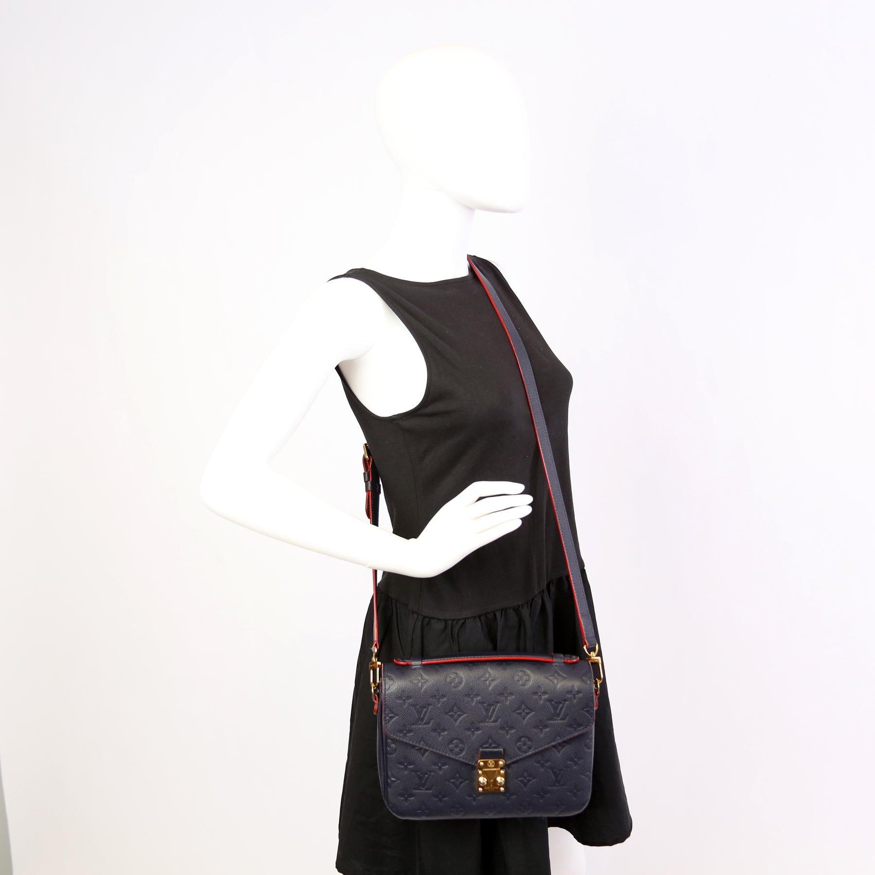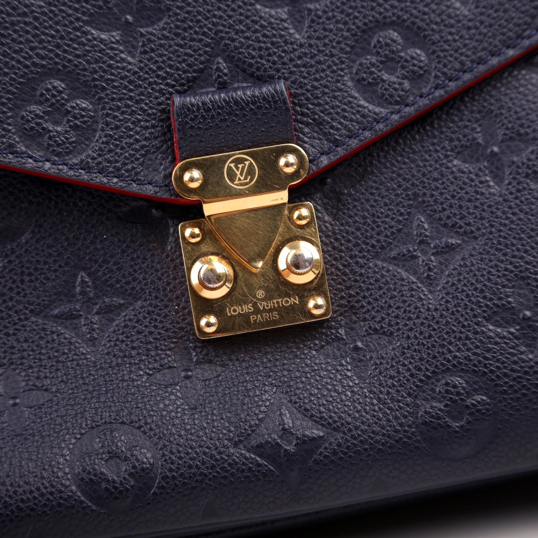 This pre-owned Louis Vuitton Pochette Metis is guaranteed 100% authentic. The exterior is in the classic Louis Vuitton Empreinte leather.