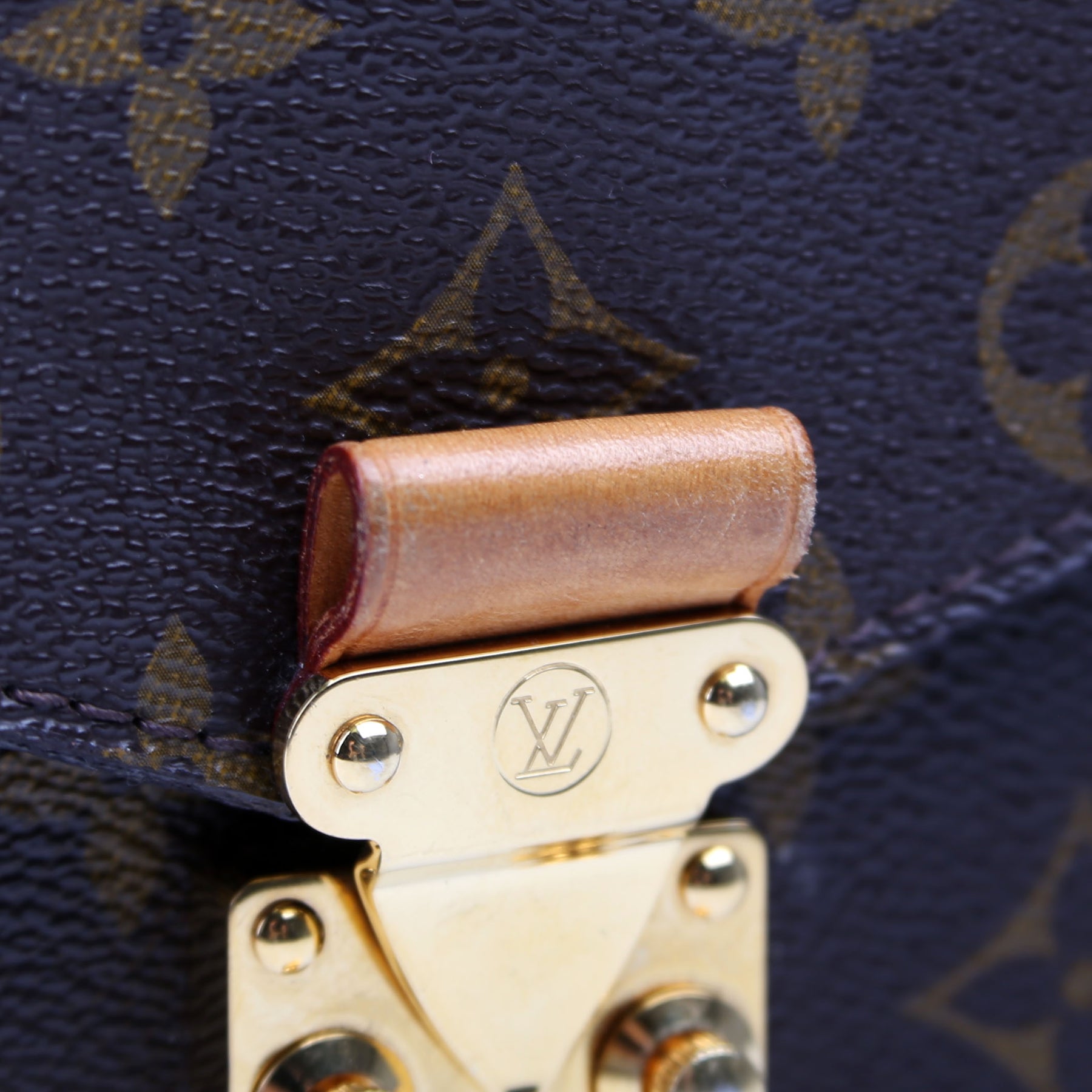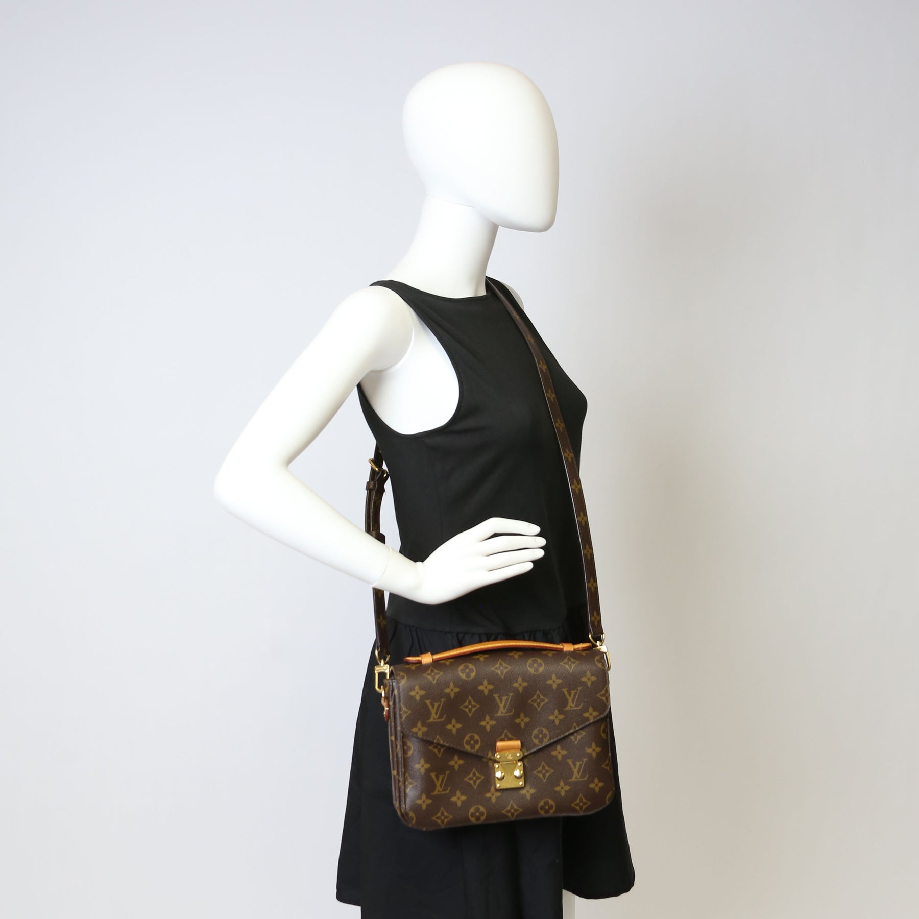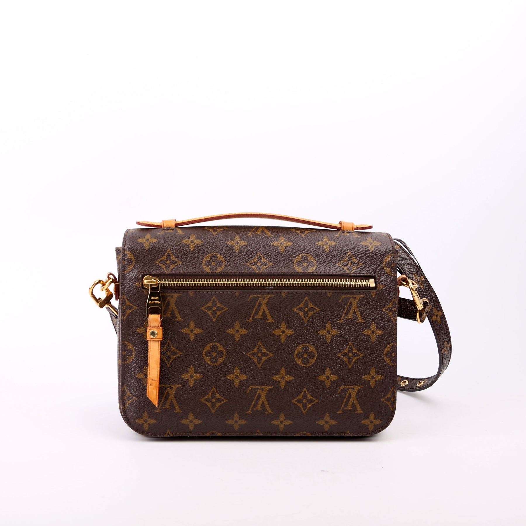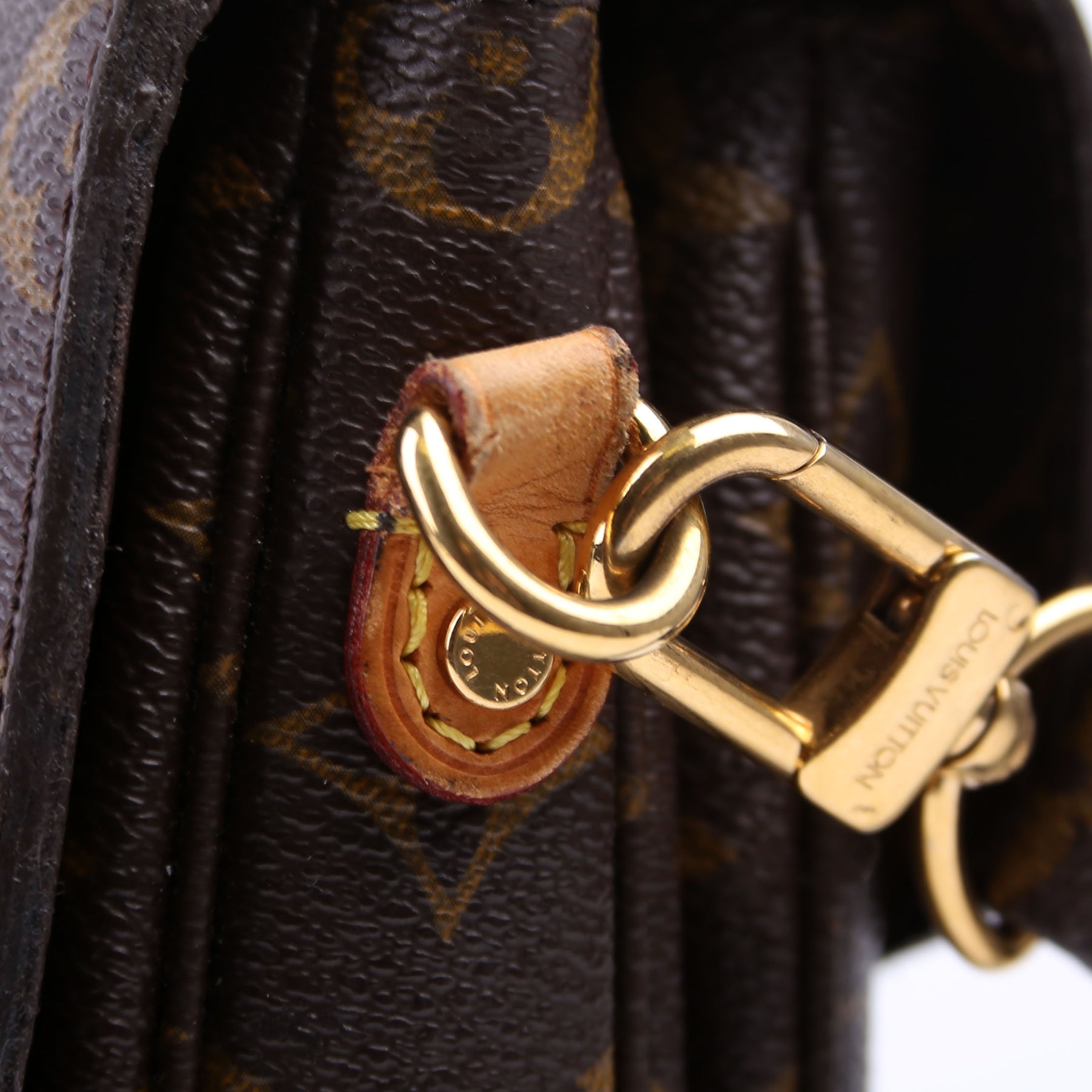 This pre-owned Louis Vuitton Pochette Metis is guaranteed 100% authentic. The exterior is in the classic Louis Vuitton Monogram coated canvas.