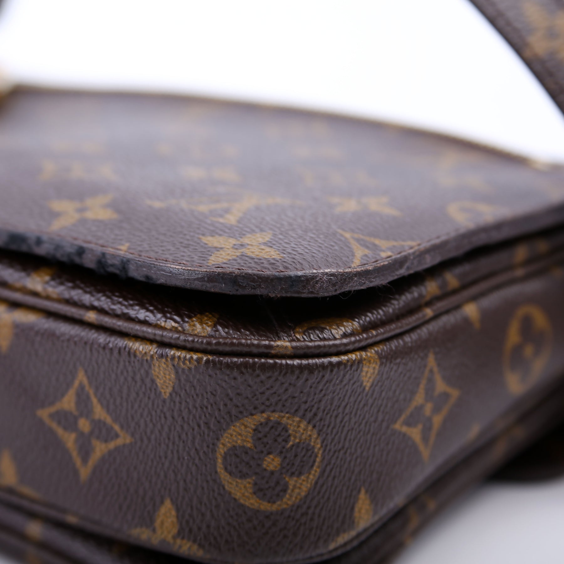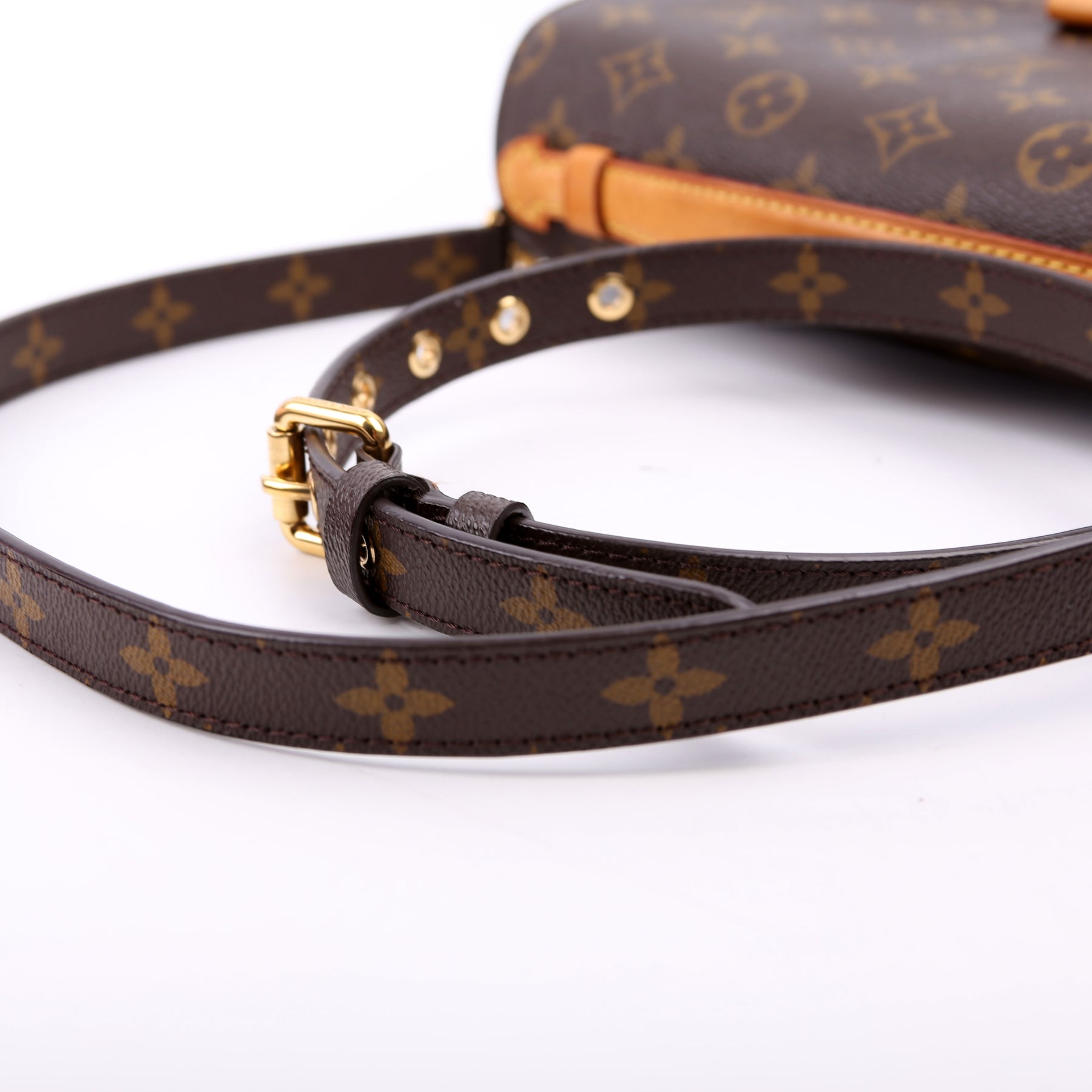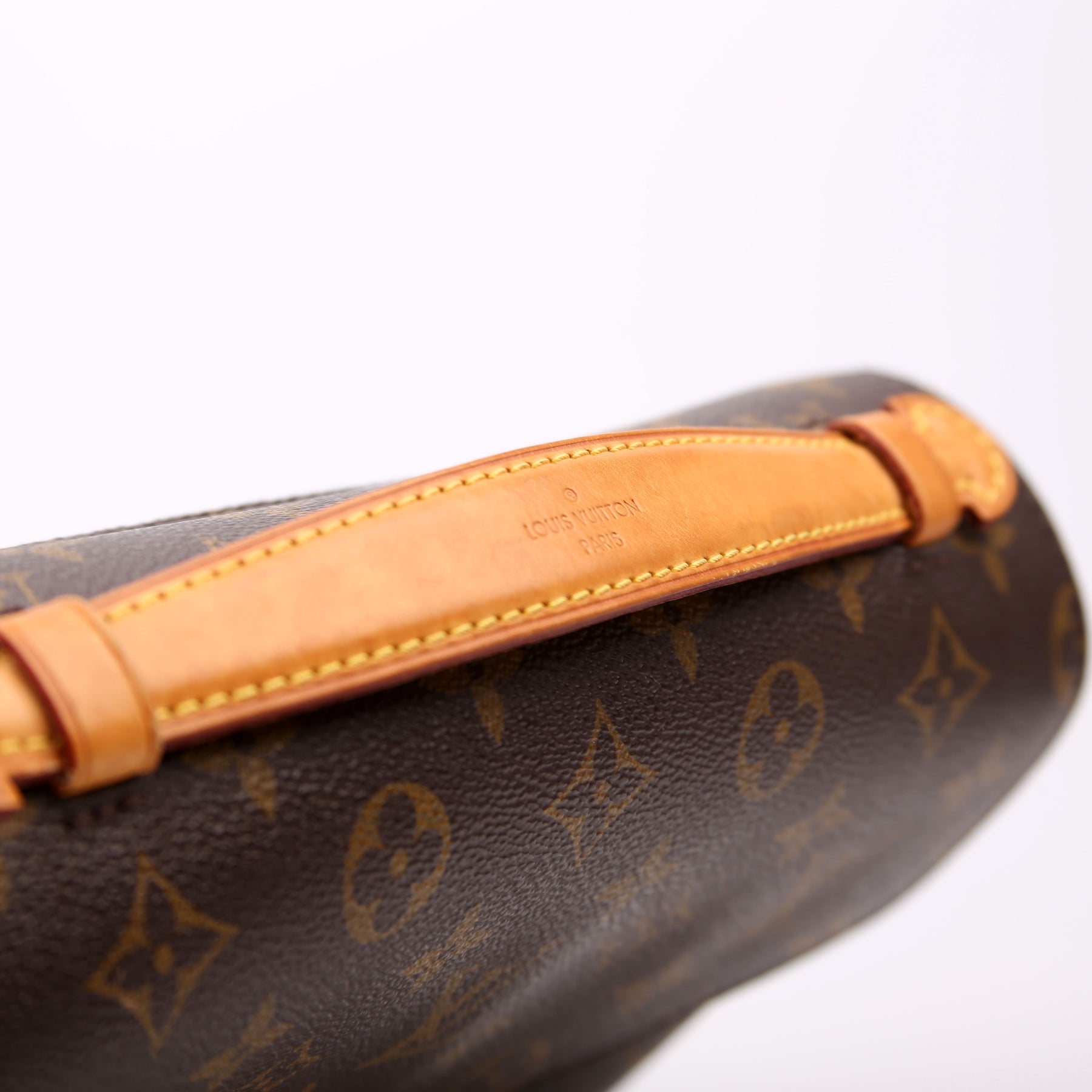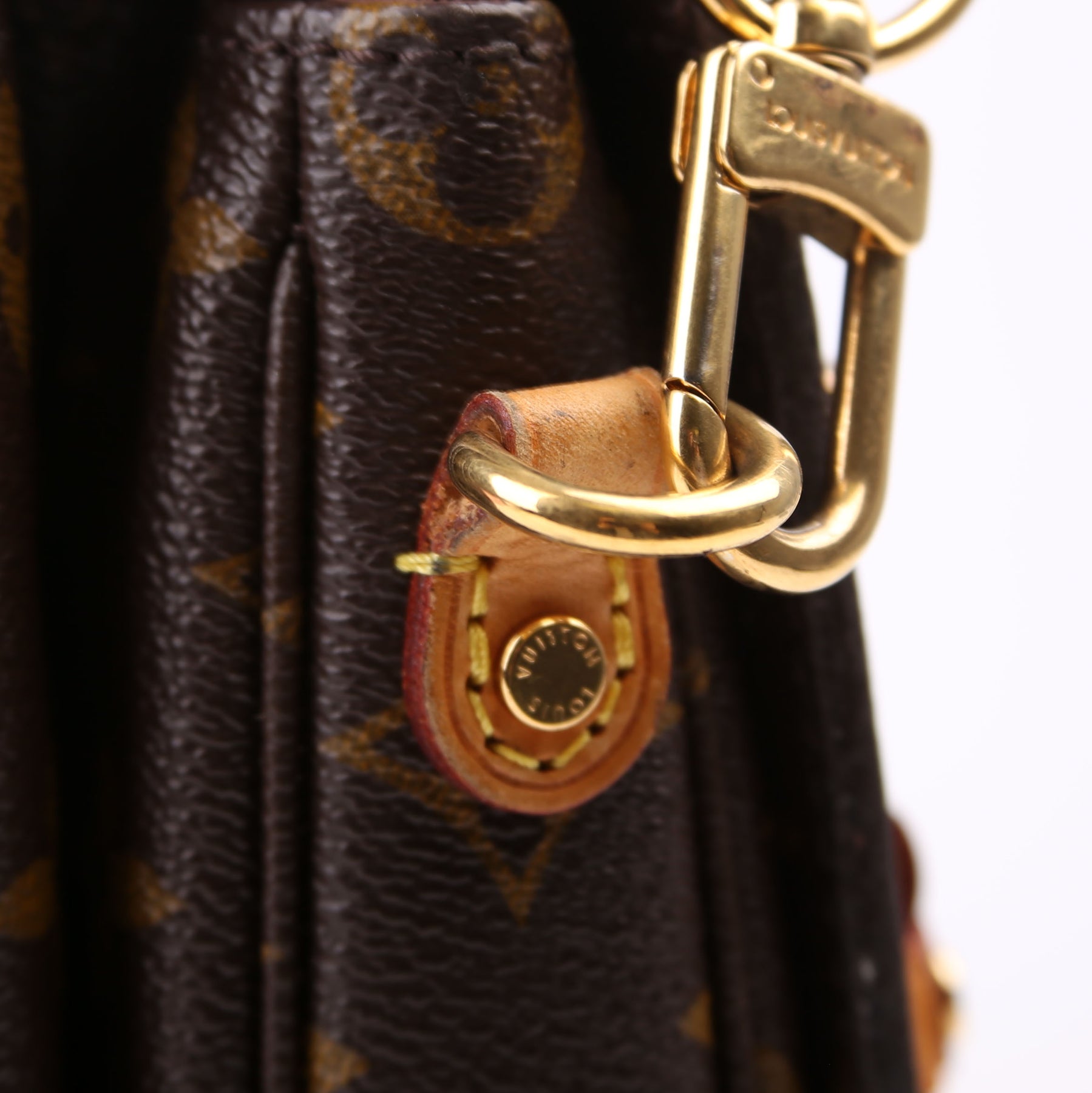 This pre-owned Louis Vuitton Pochette Metis is guaranteed 100% authentic. The exterior is in the classic Louis Vuitton Monogram coated canvas.