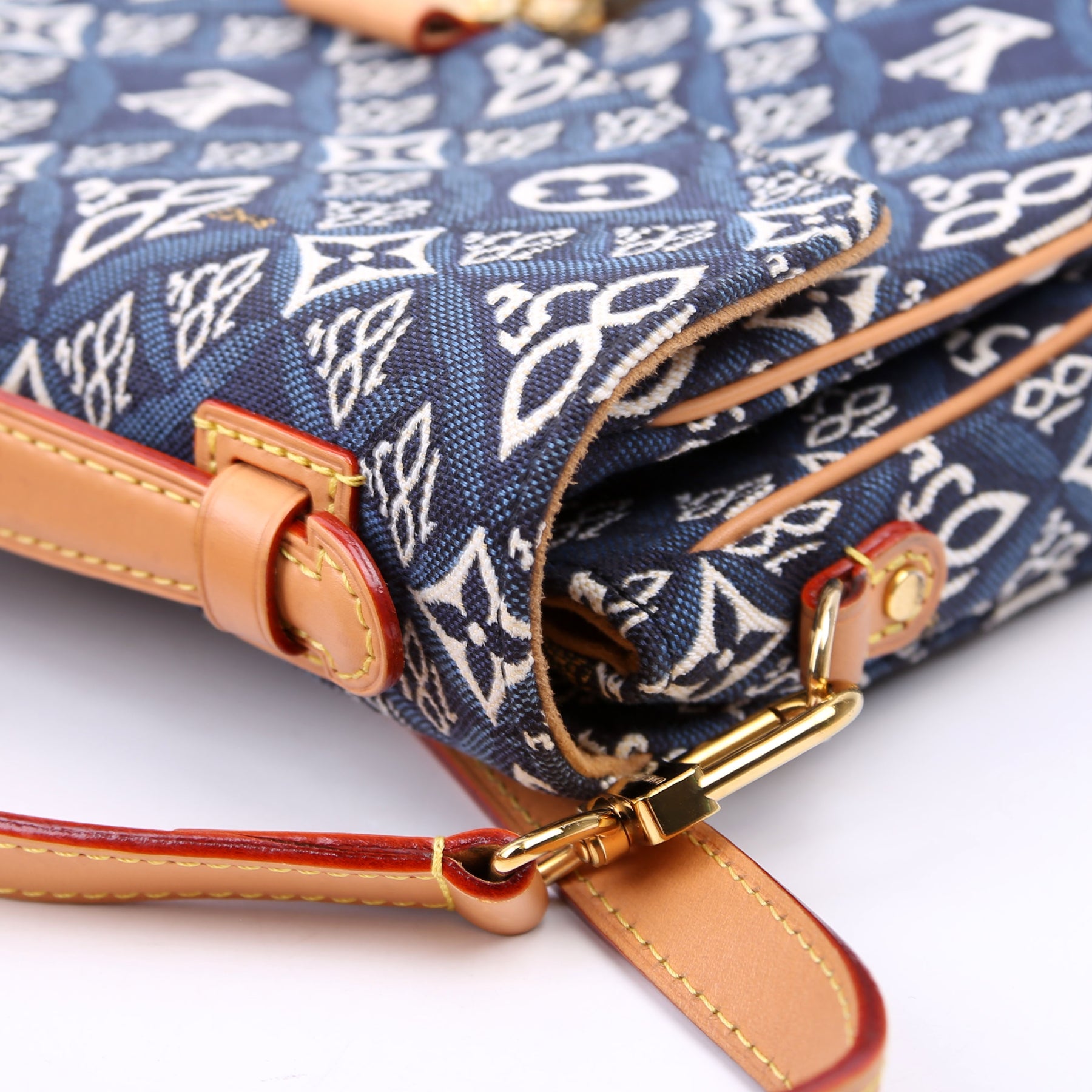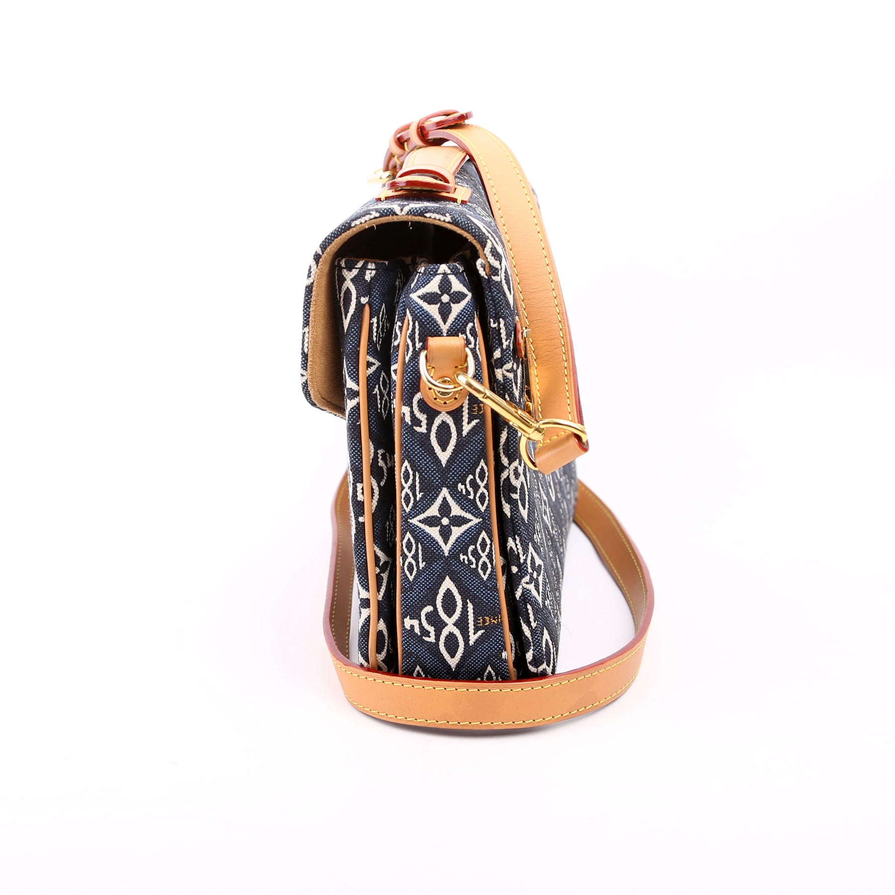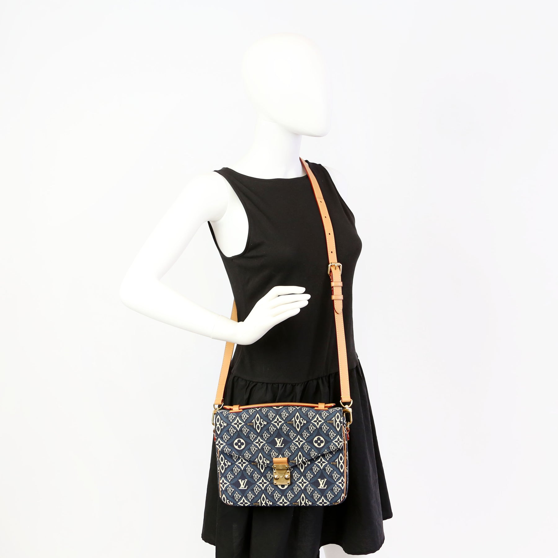 This pre-owned Louis Vuitton Pochette Metis is guaranteed 100% authentic. The exterior is in the Louis Vuitton Since 1854 Jacquard canvas.