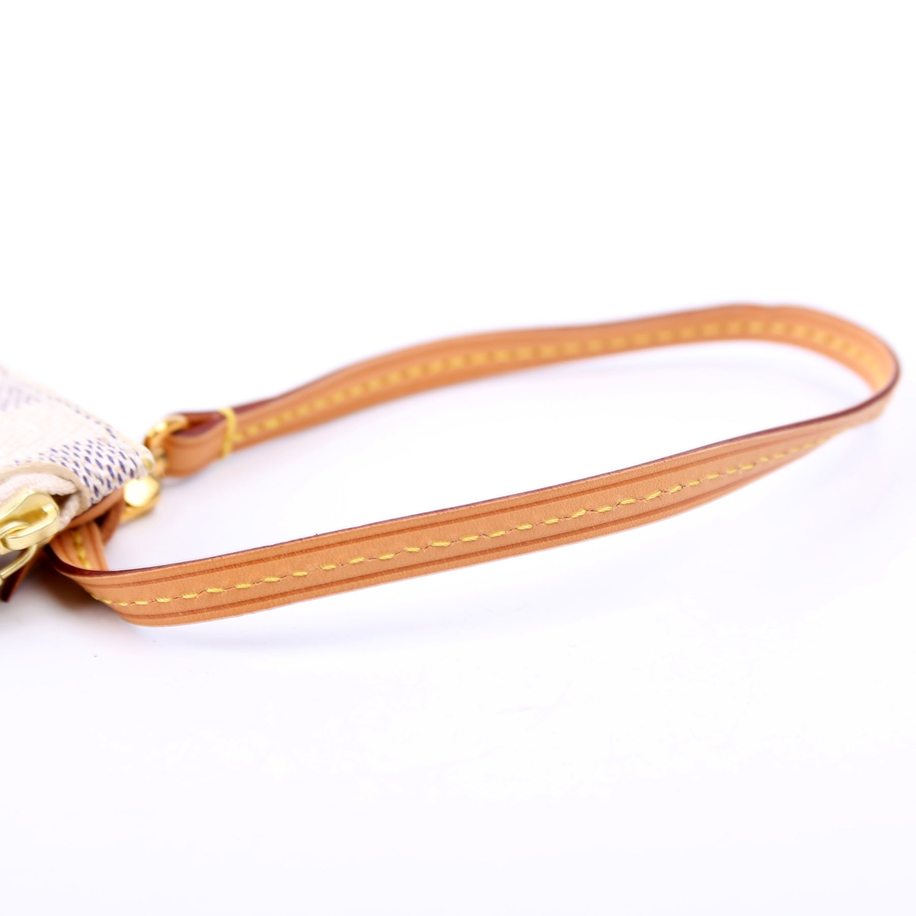 This pre-owned Louis Vuitton Pochette Only Neverfull is guaranteed 100% authentic. The exterior is in the classic Damier Azur coated canvas.