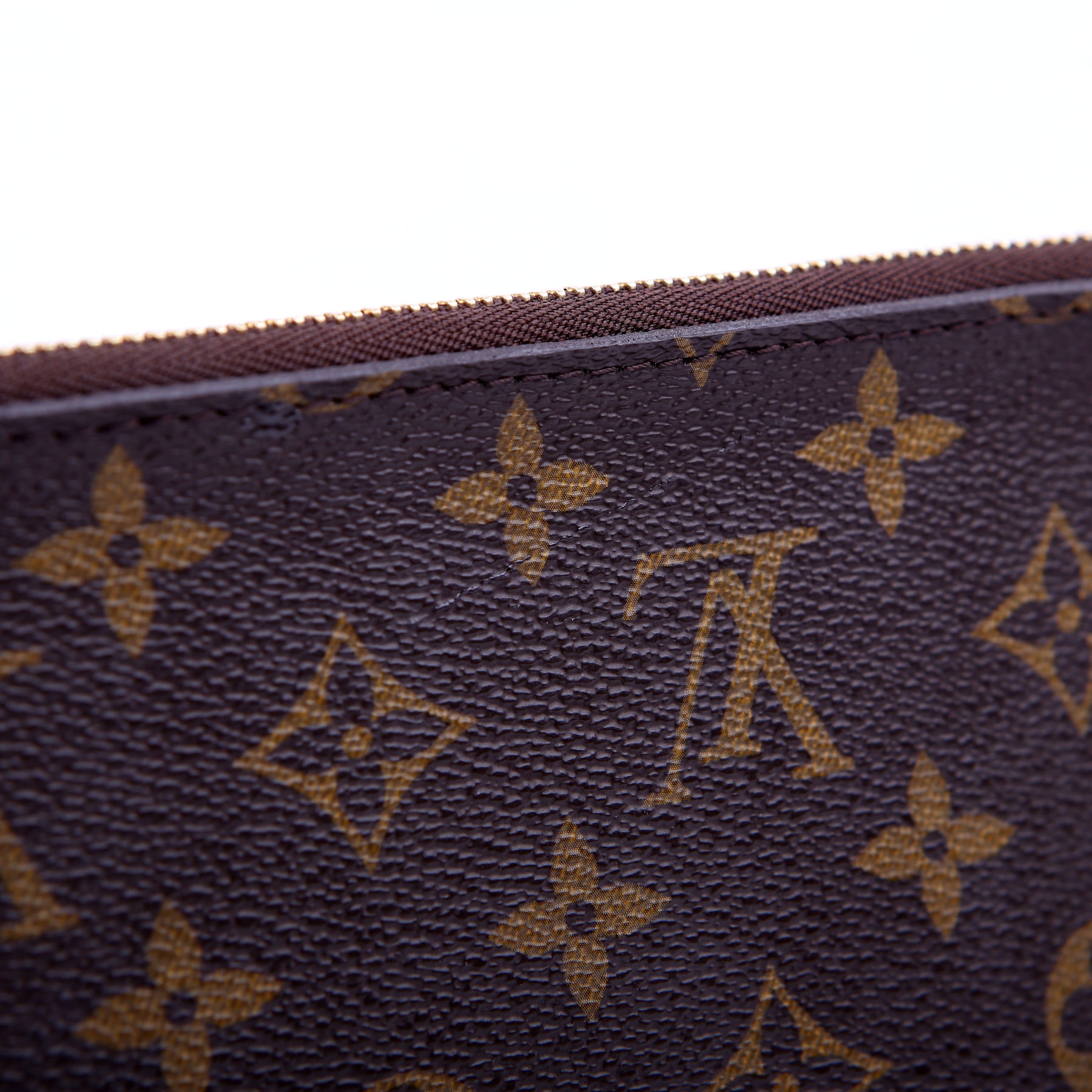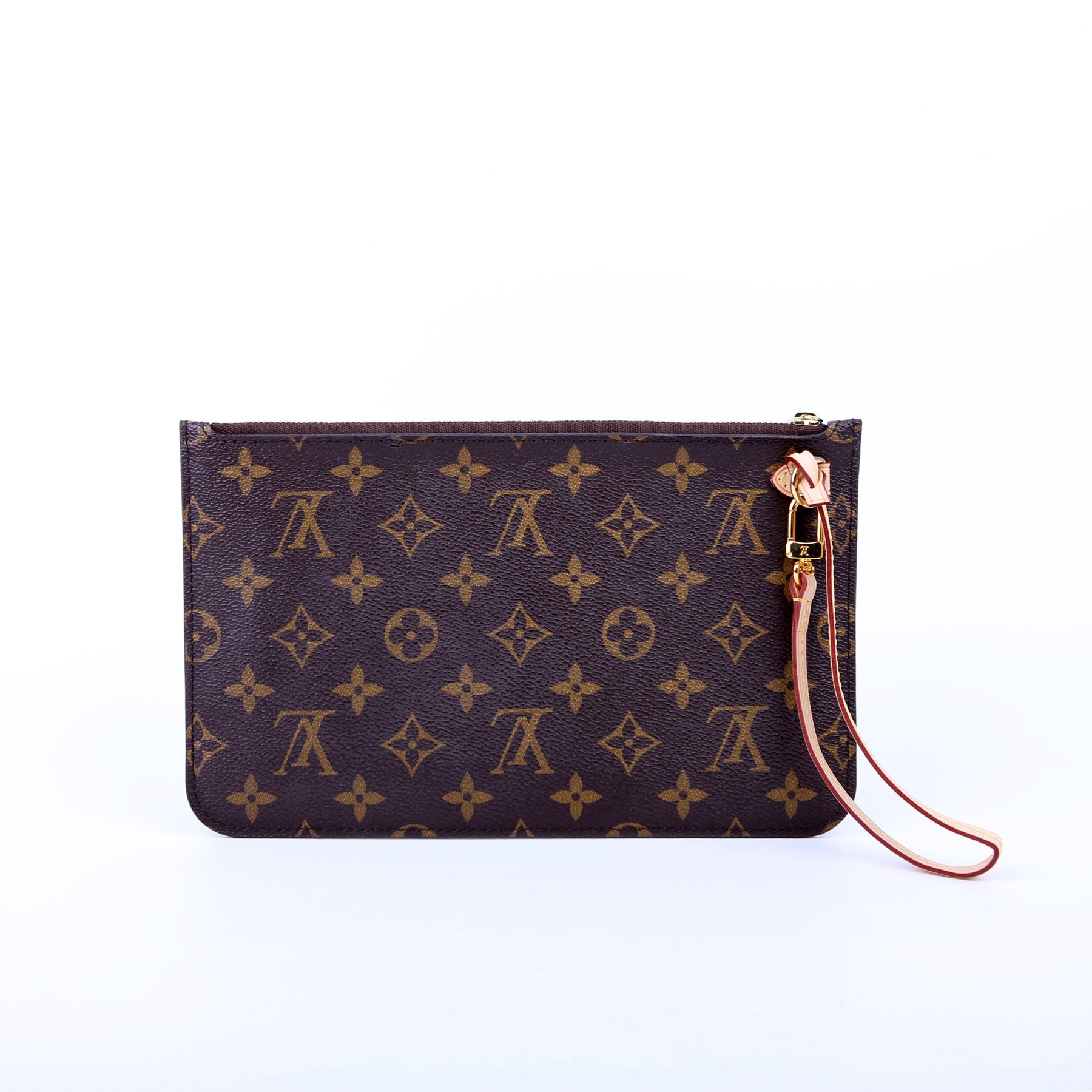 This pre-owned Louis Vuitton Pochette Only Monogram World Tour is guaranteed 100% authentic. The exterior is in the classic Louis Vuitton Monogram coated canvas.