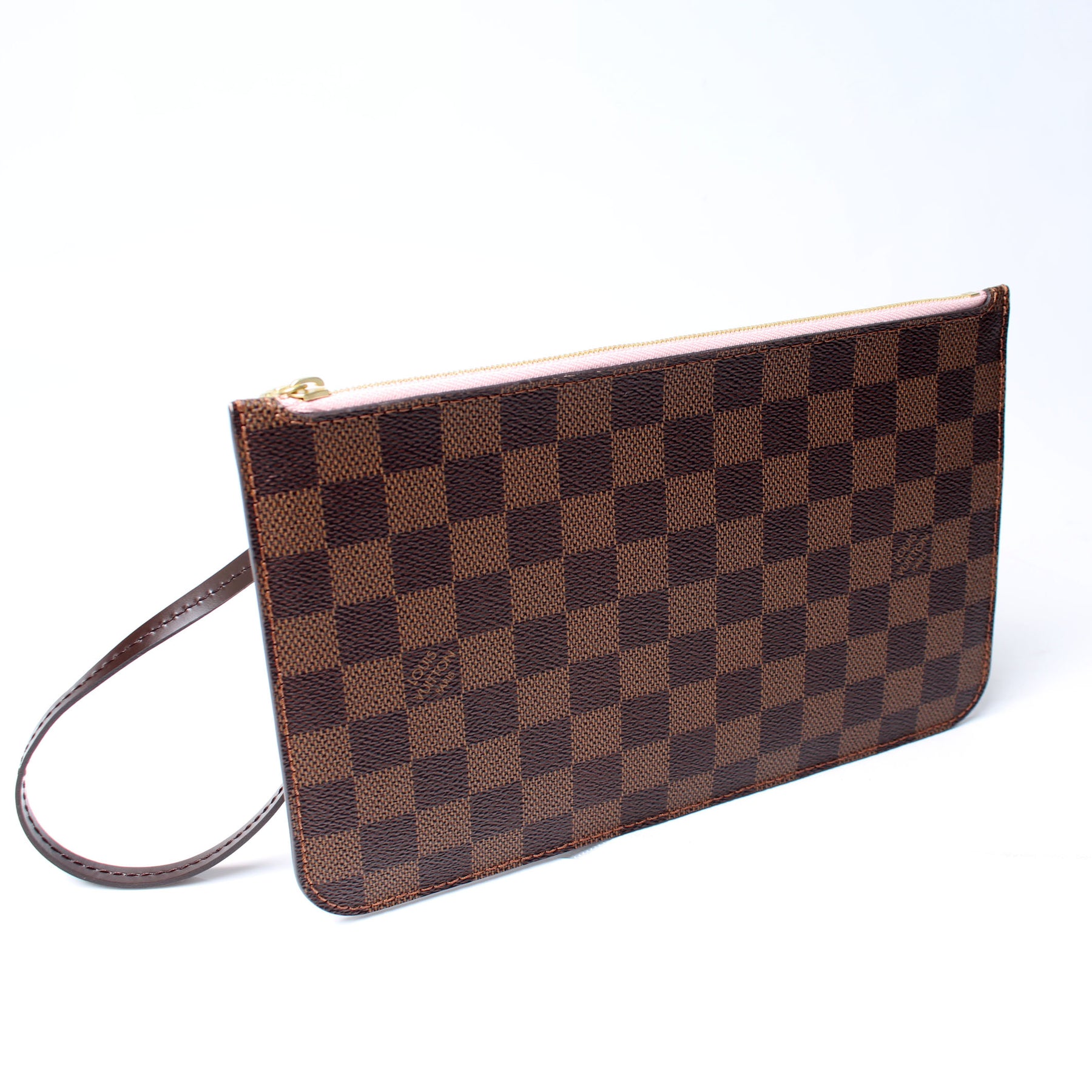 This pre-owned Louis Vuitton Pochette Only Neverfull is guaranteed 100% authentic. The exterior is in the classic Louis Vuitton Damier Ebene coated canvas.