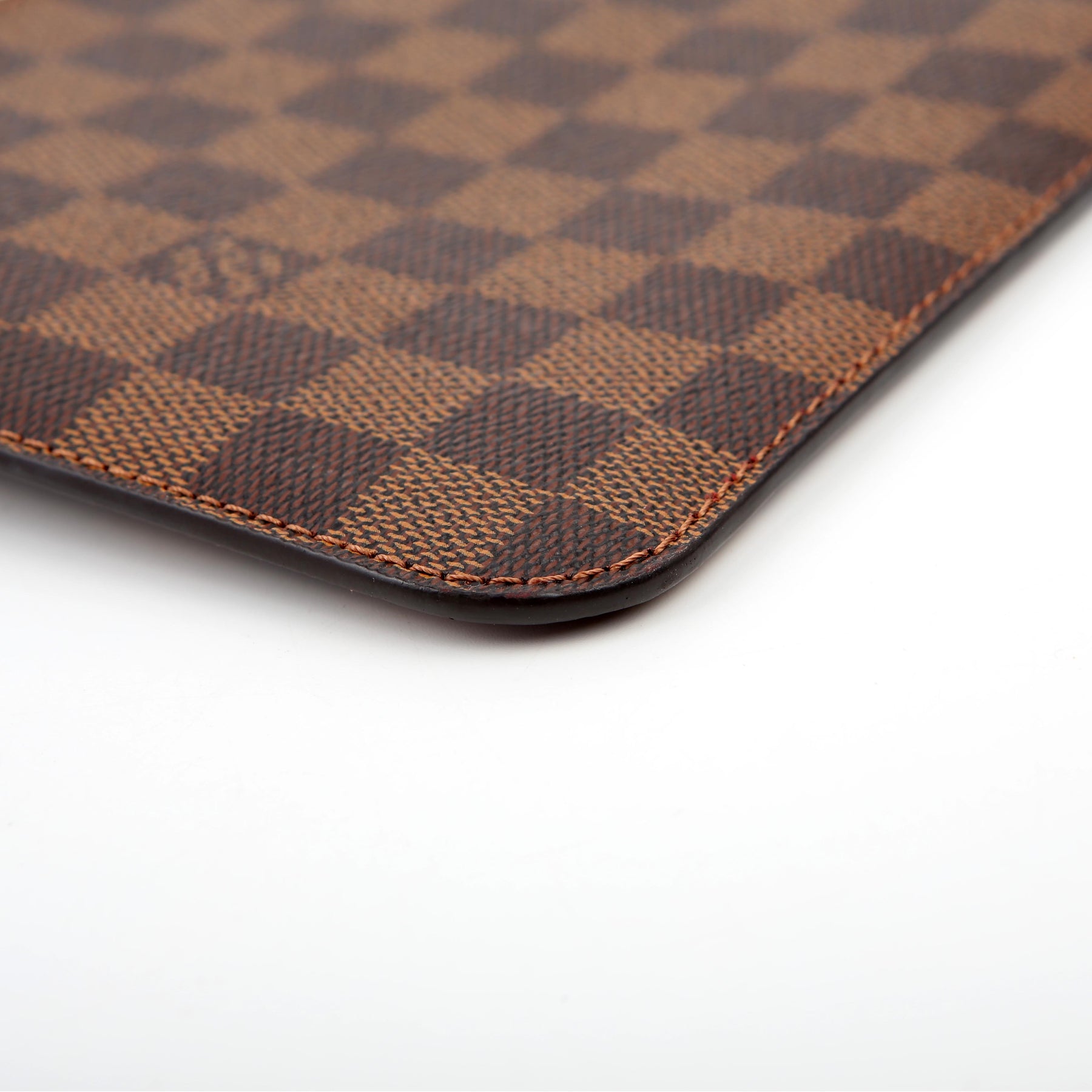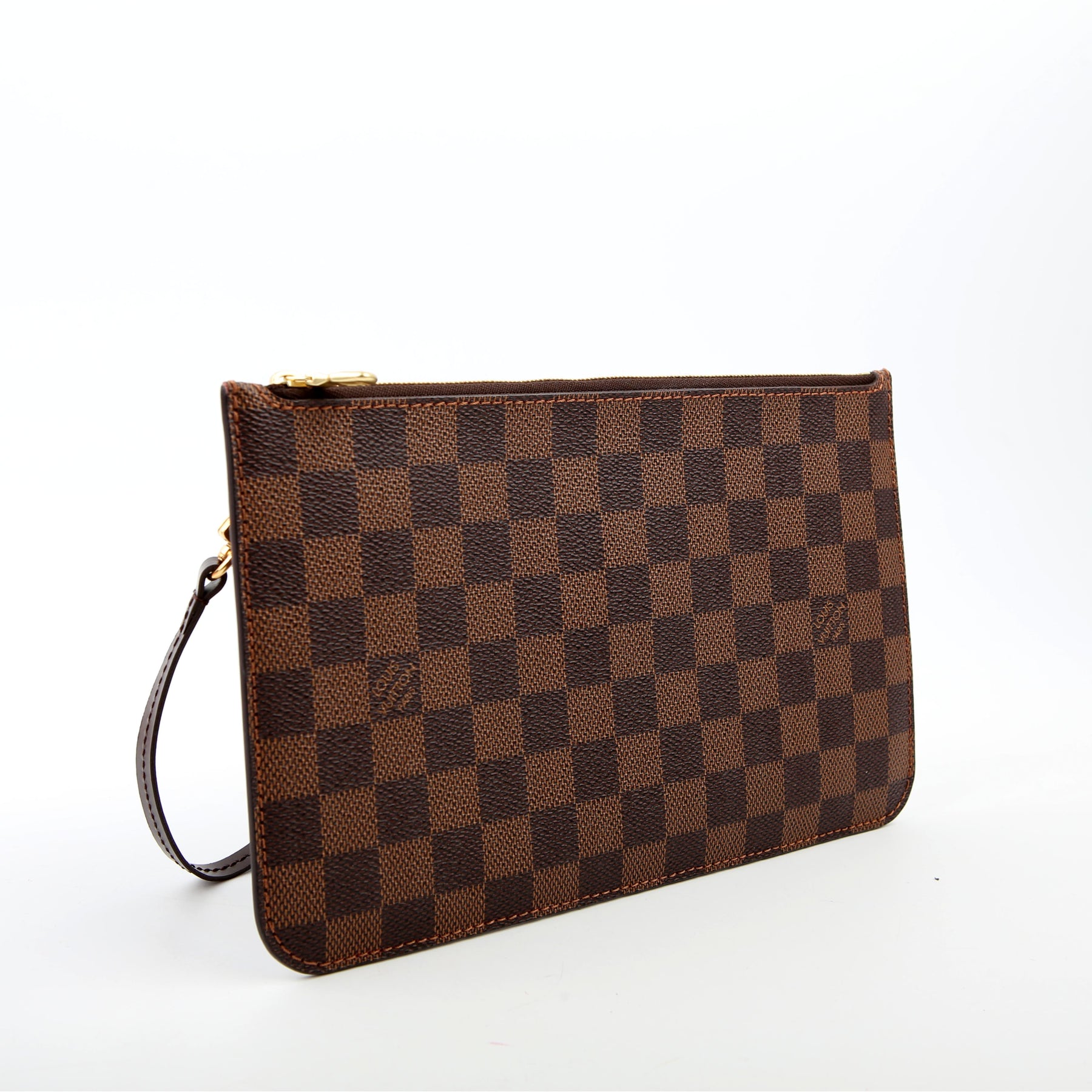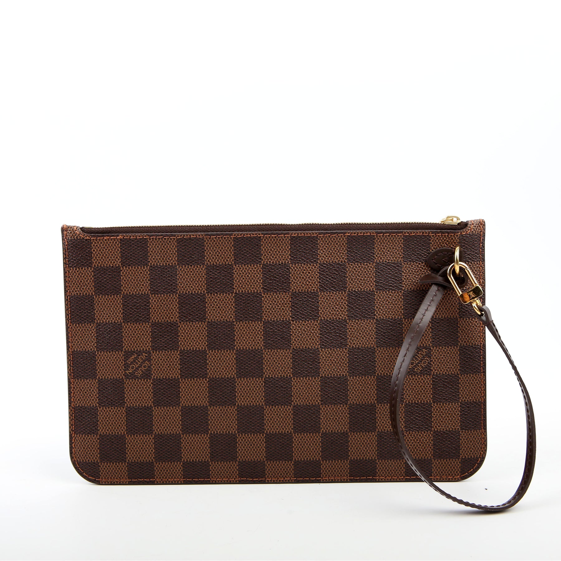 This pre-owned Louis Vuitton Pochette Only Neverfull is guaranteed 100% authentic. The exterior is in the classic Louis Vuitton Damier Ebene coated canvas.