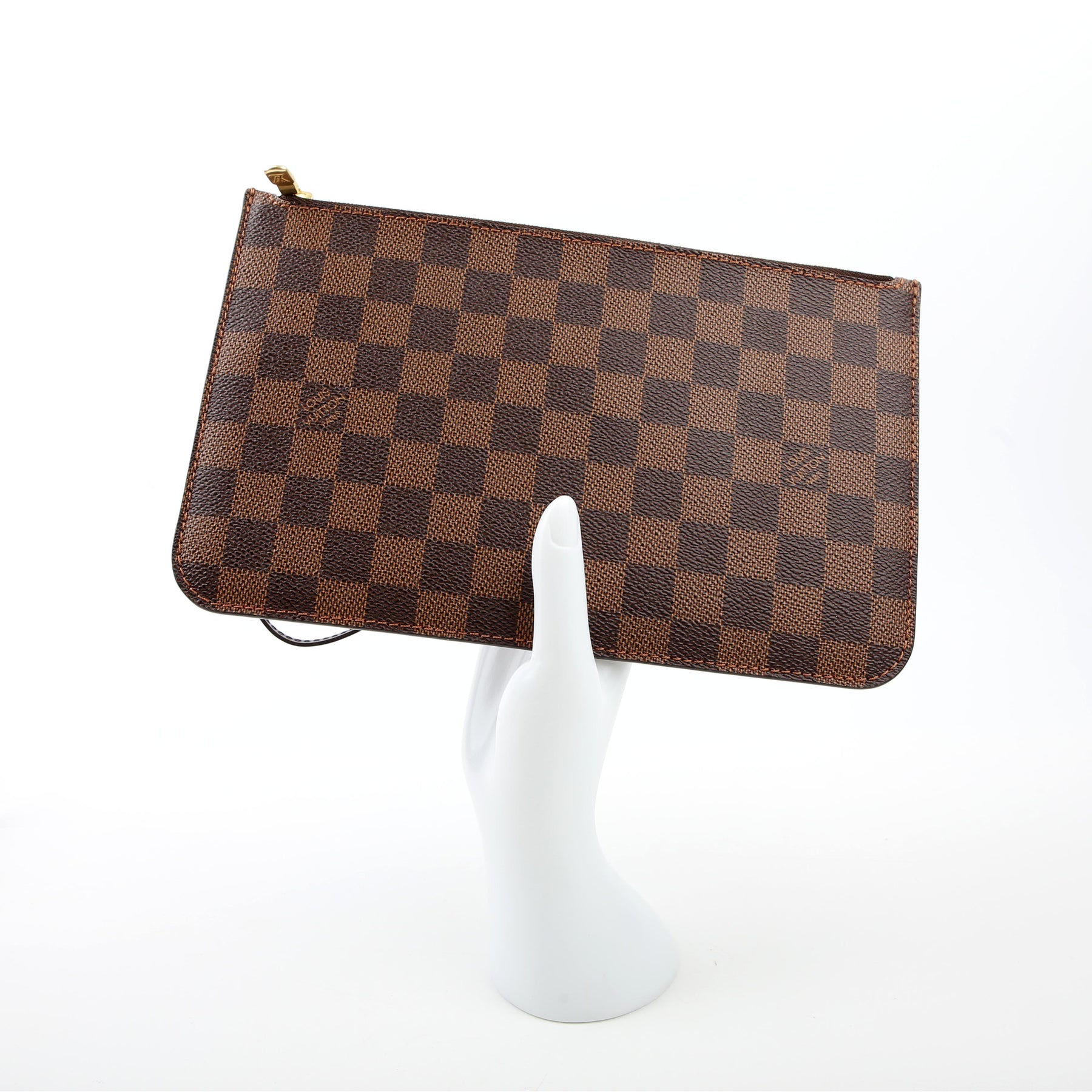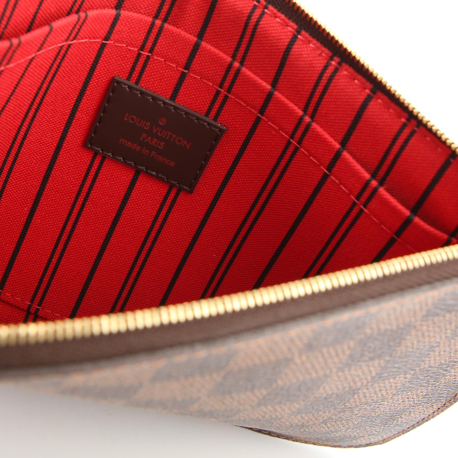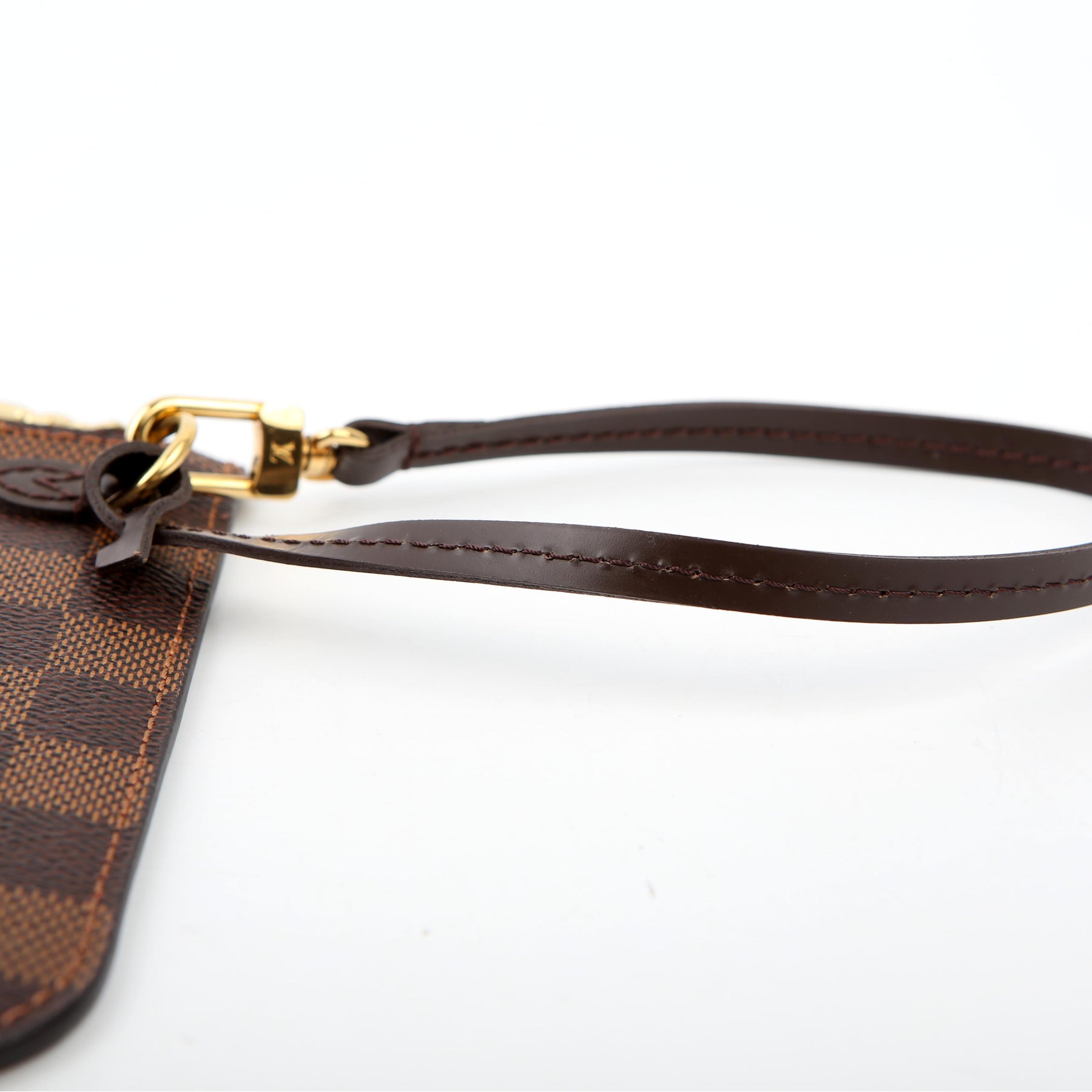 This pre-owned Louis Vuitton Pochette Only Neverfull is guaranteed 100% authentic. The exterior is in the classic Louis Vuitton Damier Ebene coated canvas.
