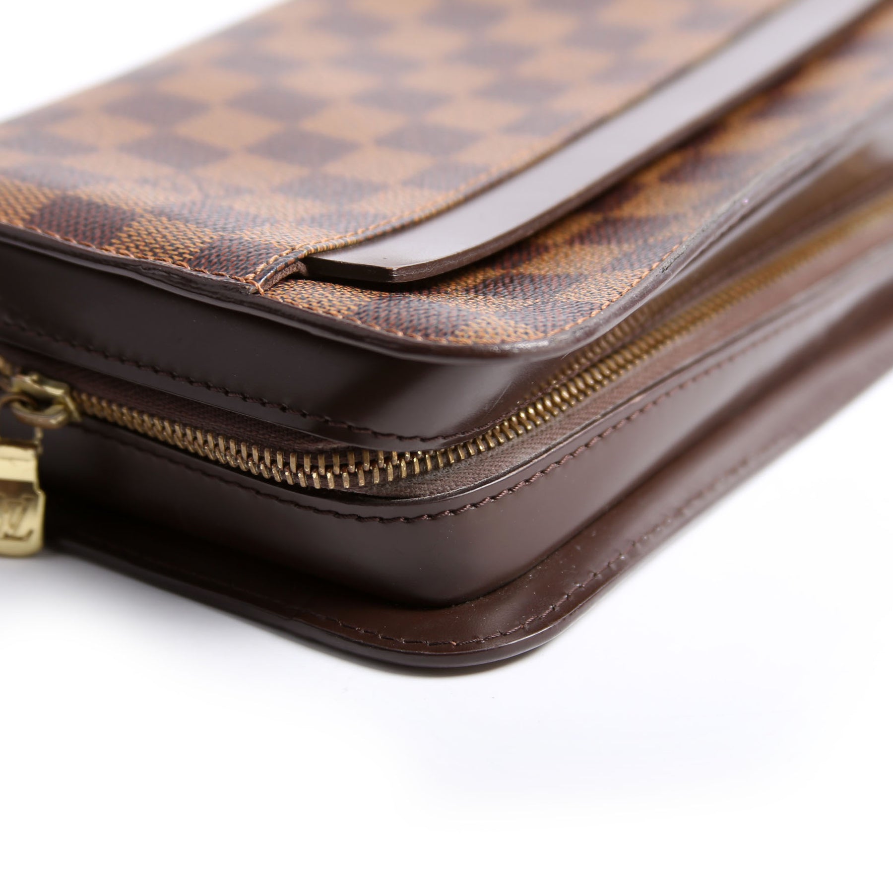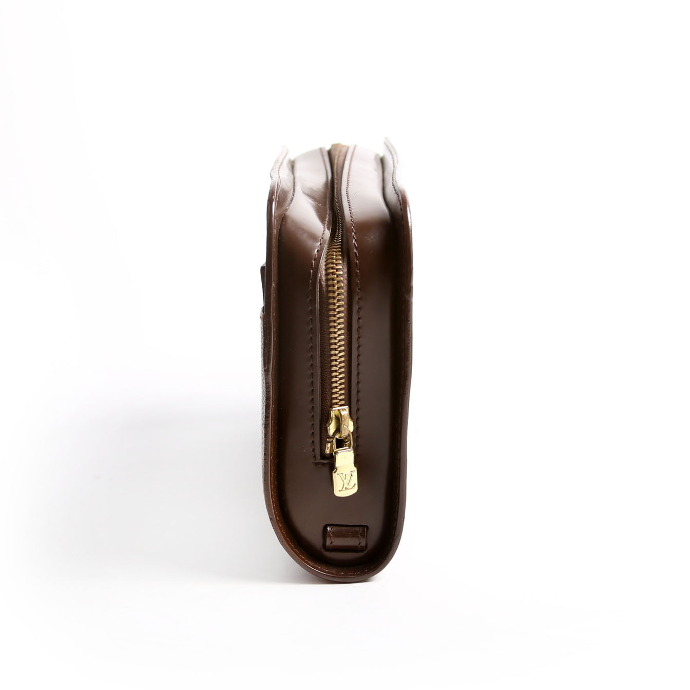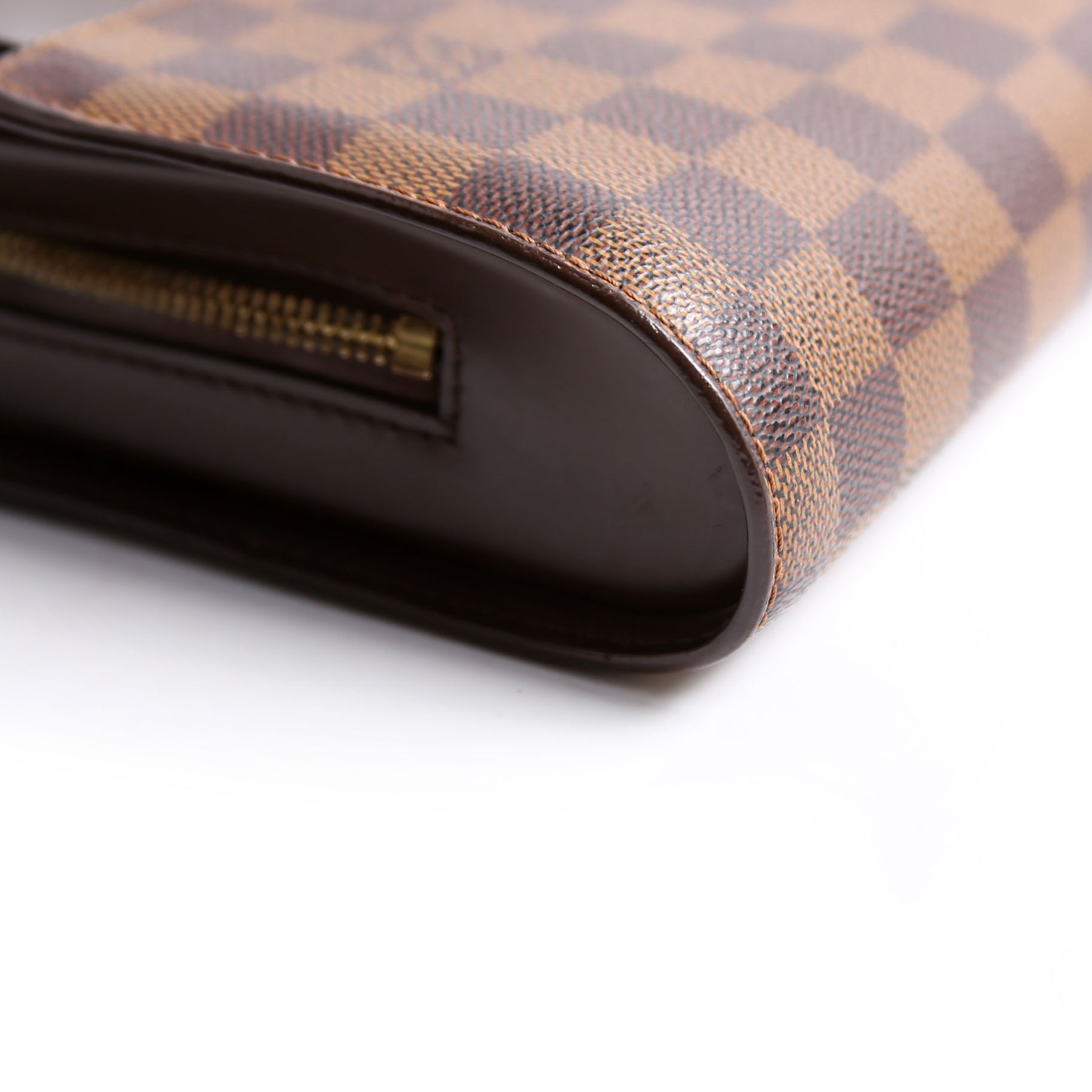 This pre-owned Louis Vuitton Pochette Saint Louis Clutch Ebene is guaranteed 100% authentic. The exterior is in the classic Louis Vuitton Ebene coated canvas material.