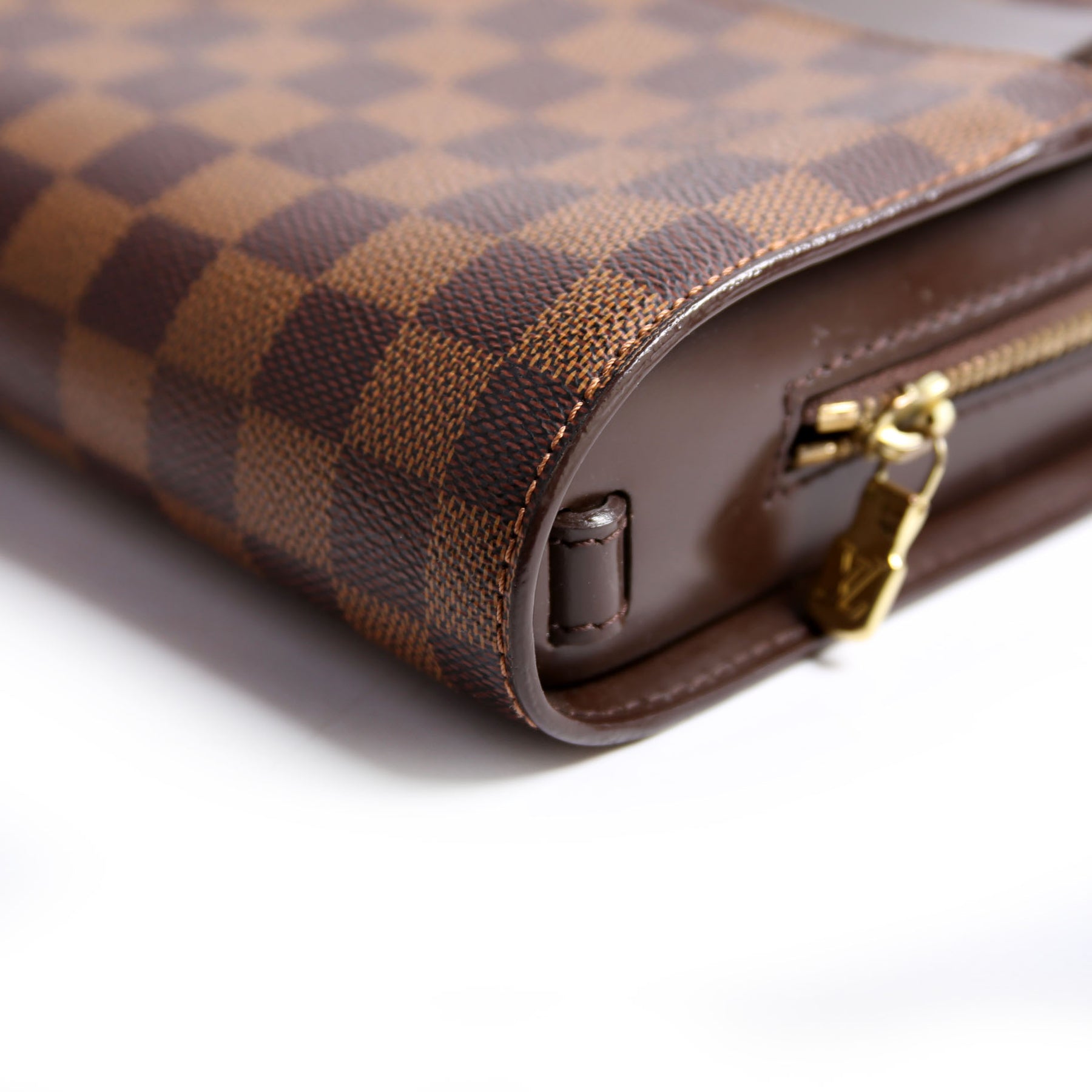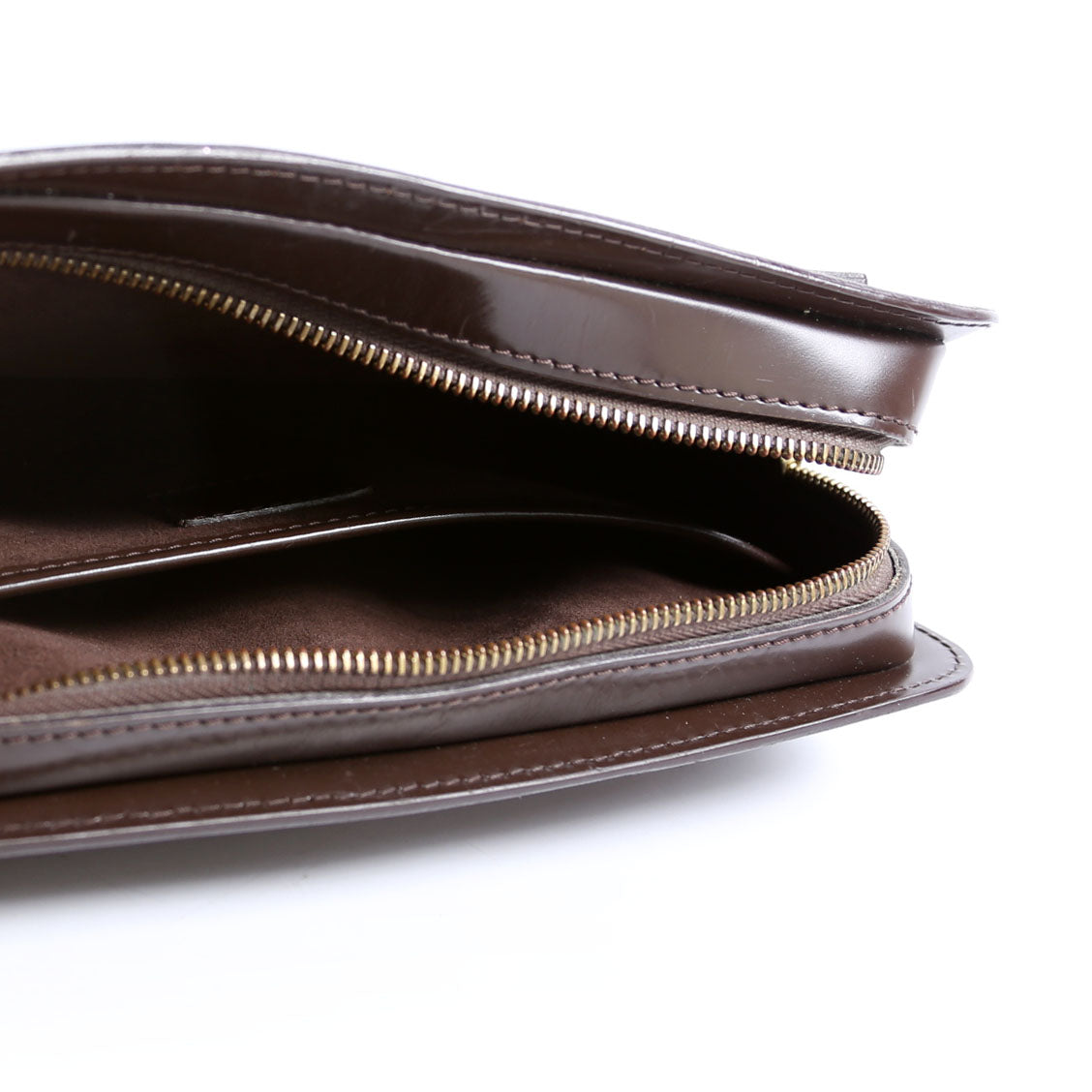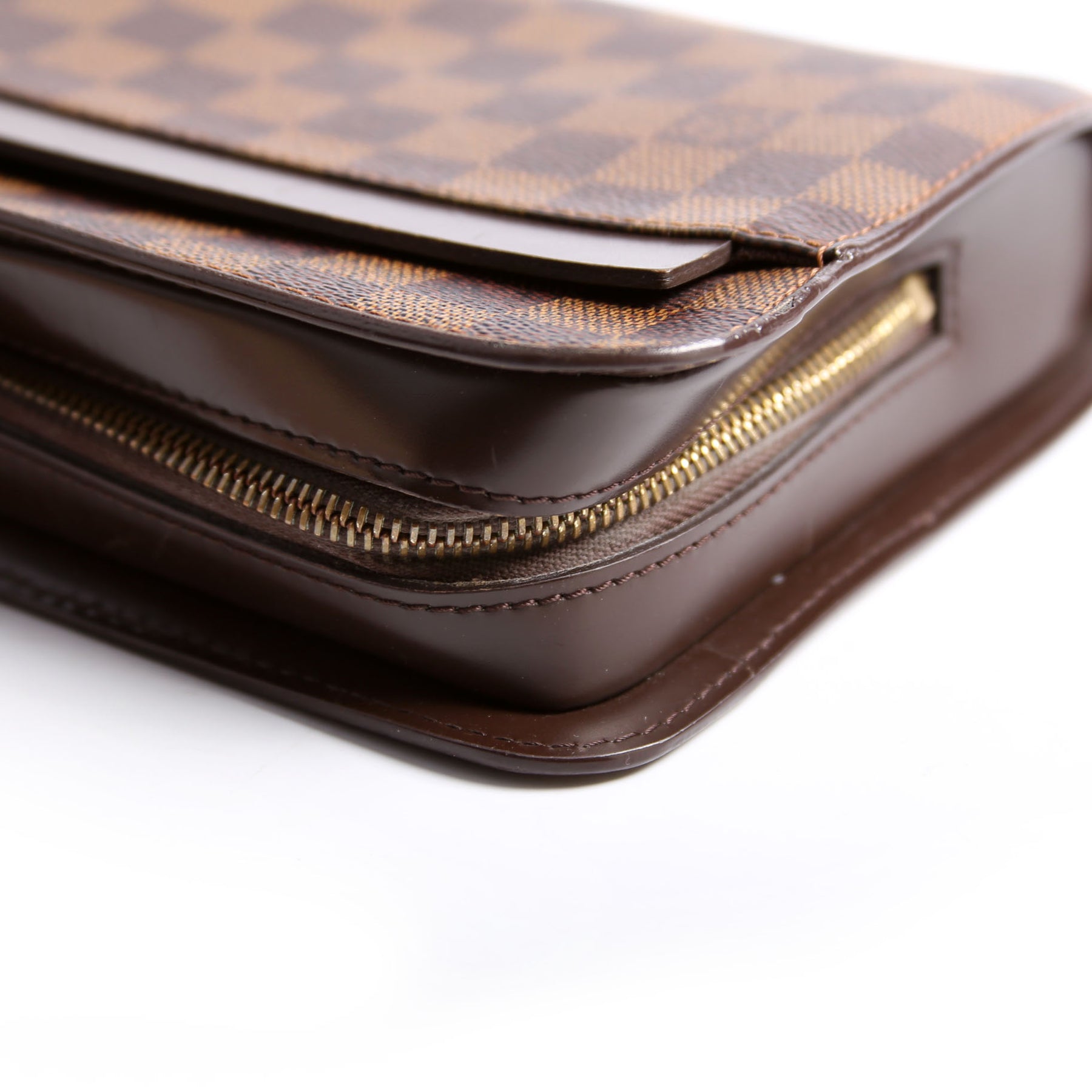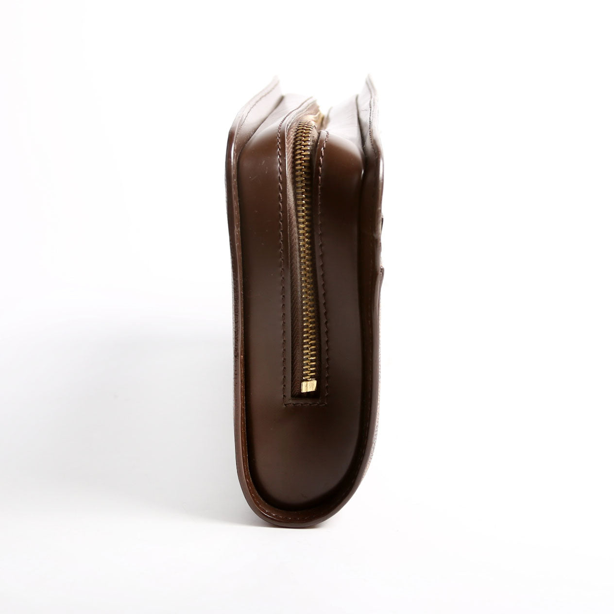 This pre-owned Louis Vuitton Pochette Saint Louis Clutch Ebene is guaranteed 100% authentic. The exterior is in the classic Louis Vuitton Ebene coated canvas material.