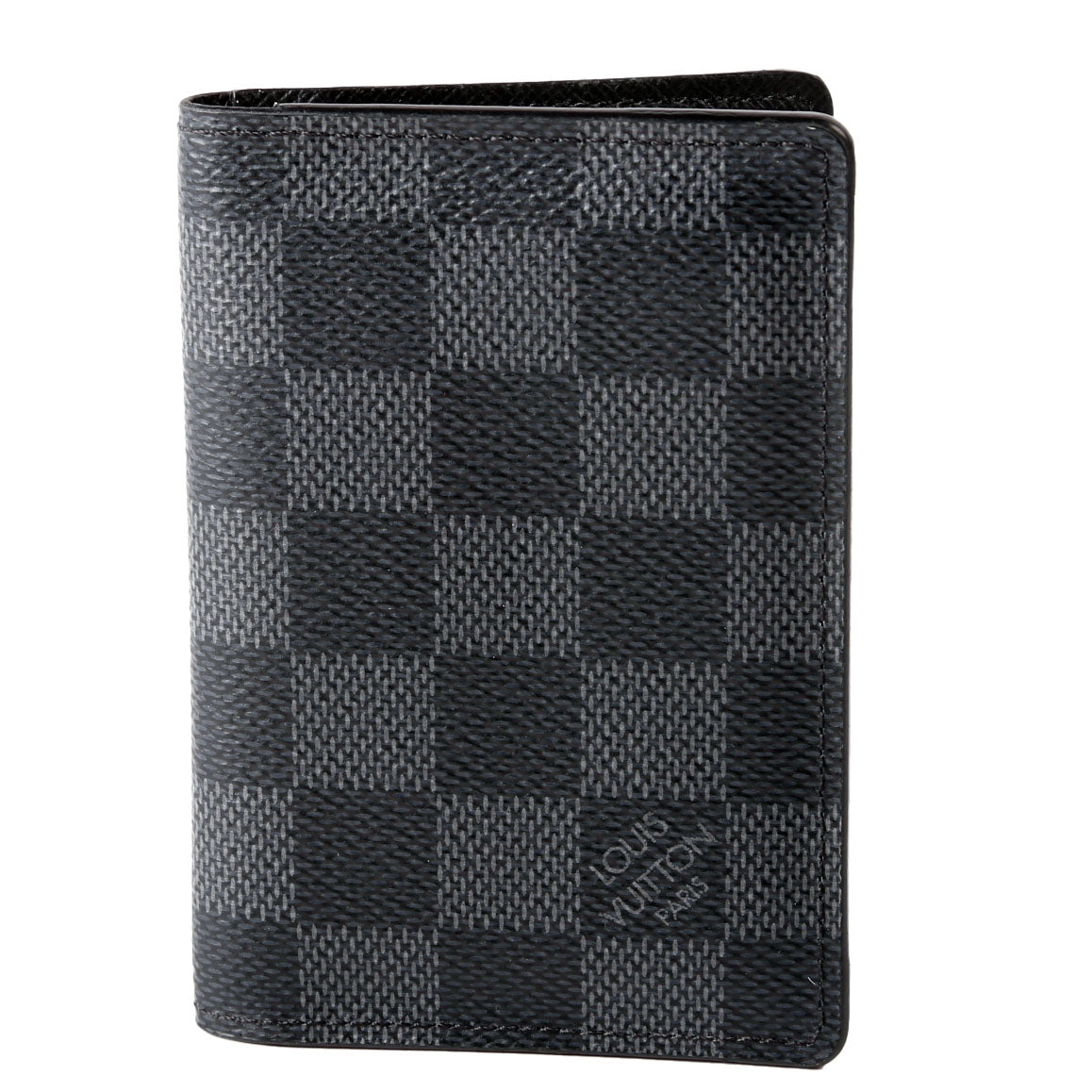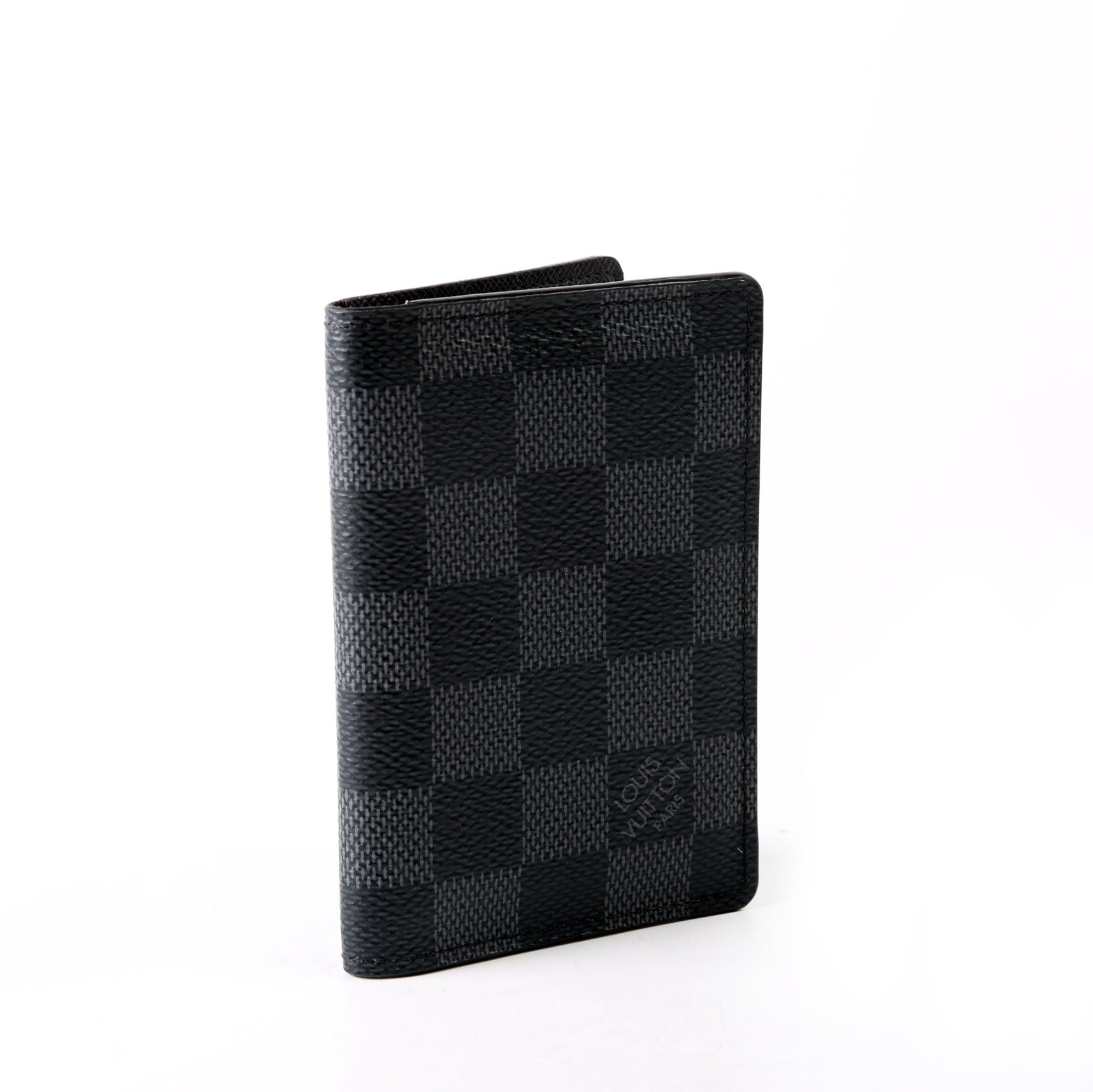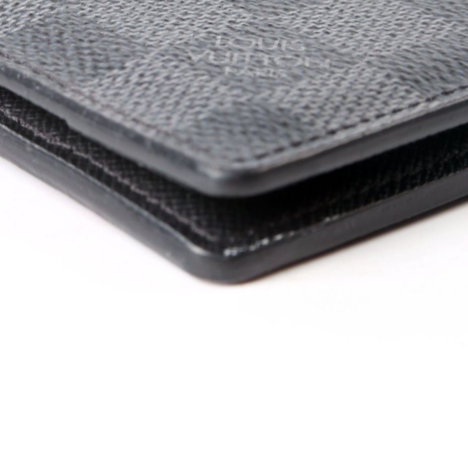 This pre-owned Louis Vuitton Pocket Organizer NM guaranteed 100% authentic. The exterior is in the classic Louis Vuitton Damier Graphite coated canvas.