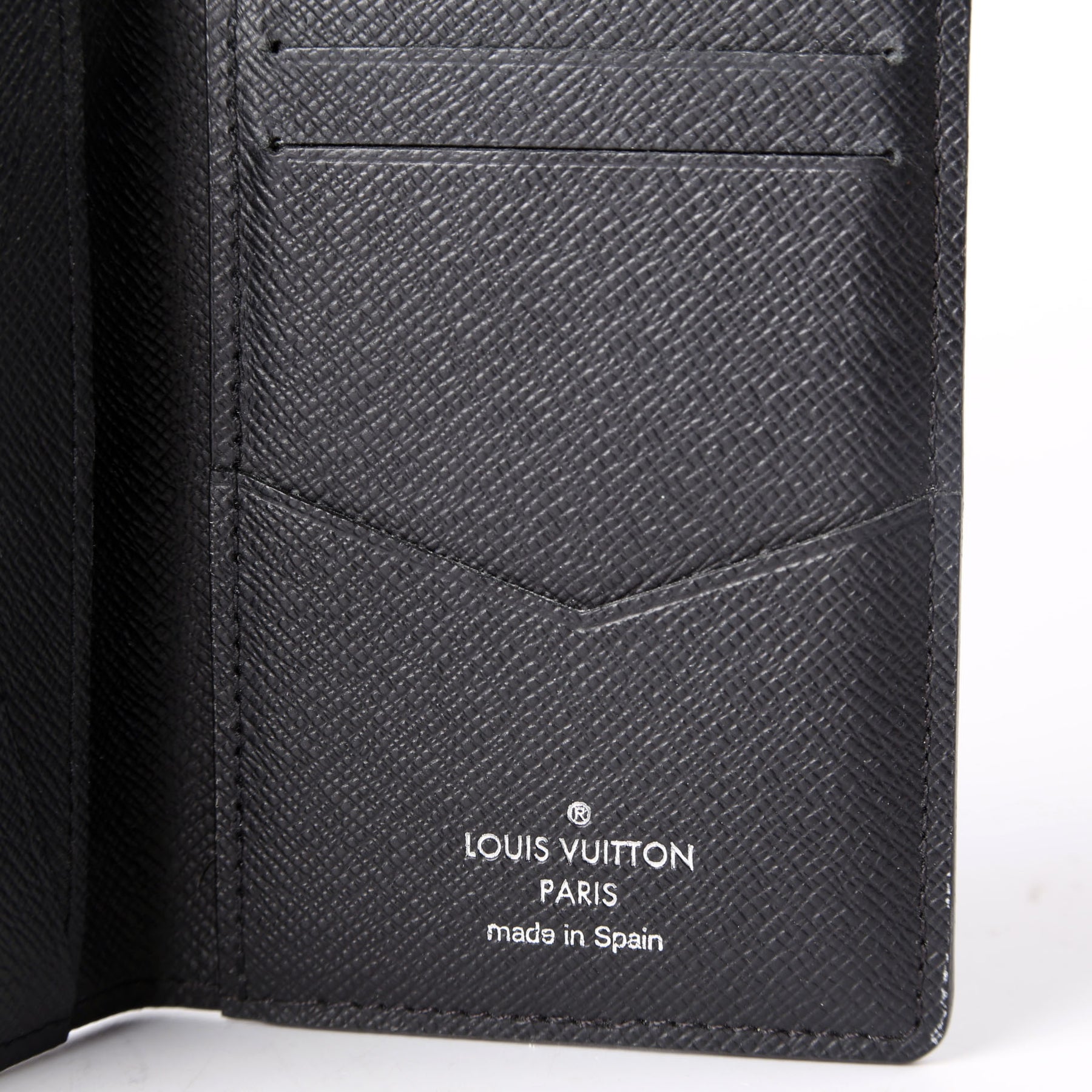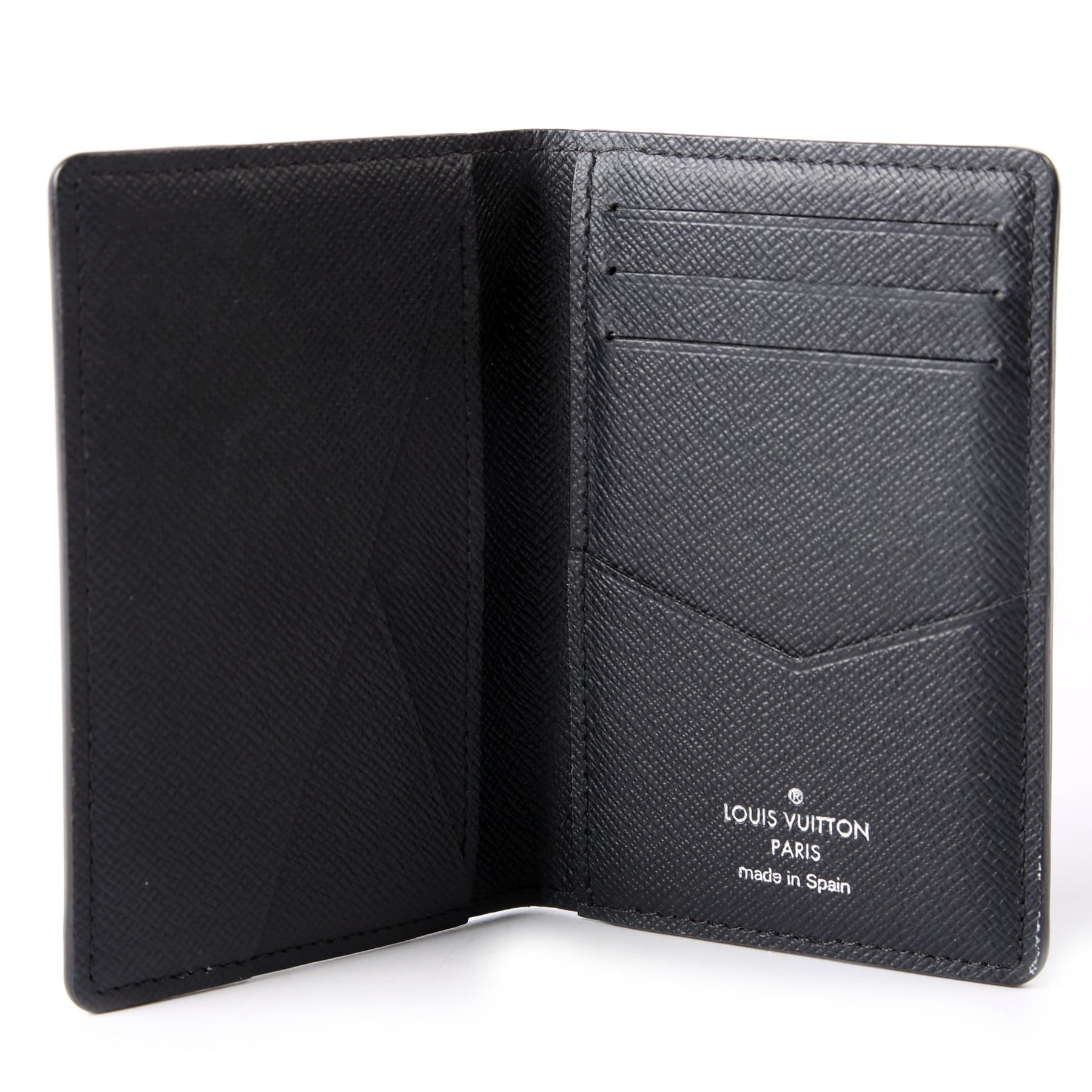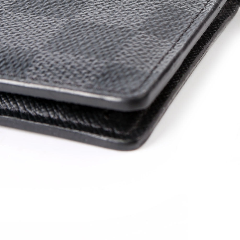 This pre-owned Louis Vuitton Pocket Organizer NM guaranteed 100% authentic. The exterior is in the classic Louis Vuitton Damier Graphite coated canvas.
