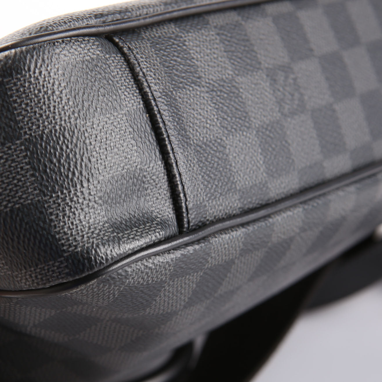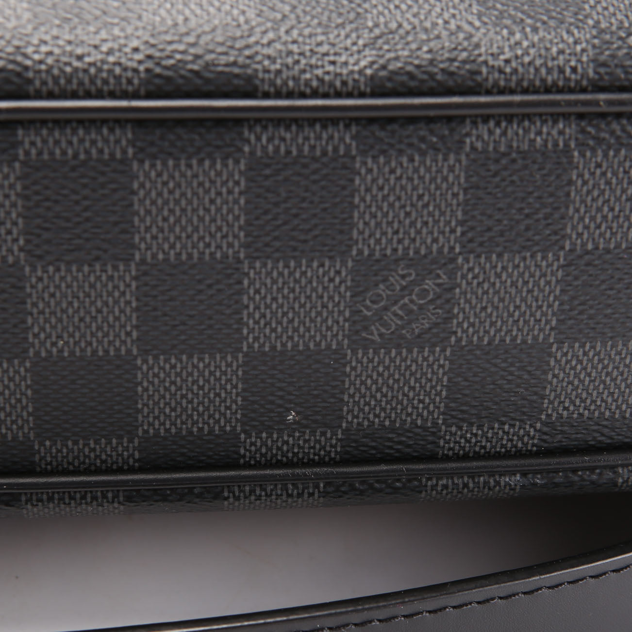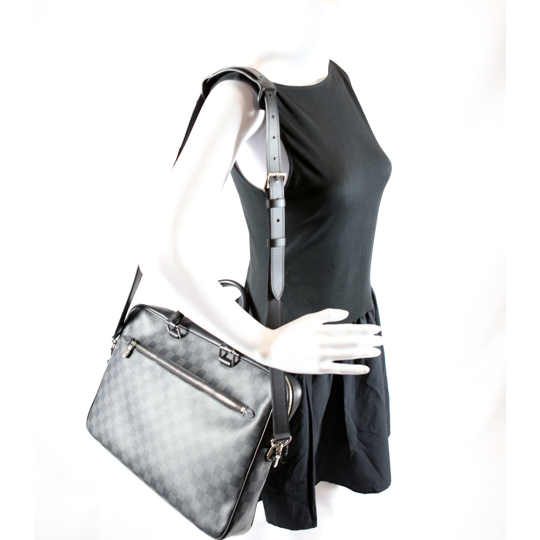 This pre-owned Louis Vuitton Porte Documents Jour is guaranteed 100% authentic. The exterior is in the classic Louis Vuitton Coated Canvas Damier Graphite