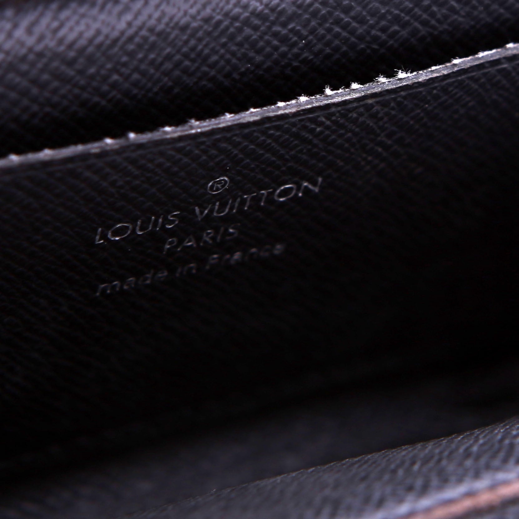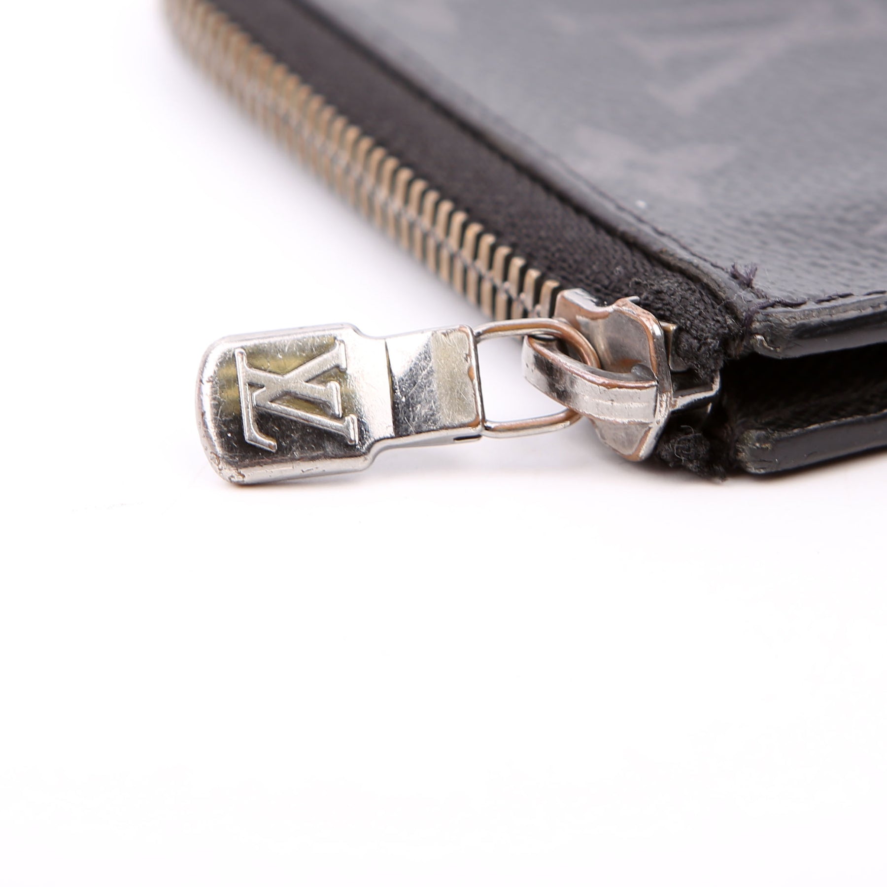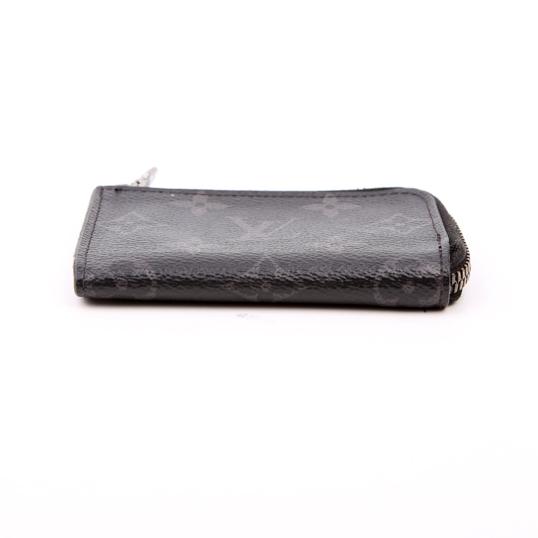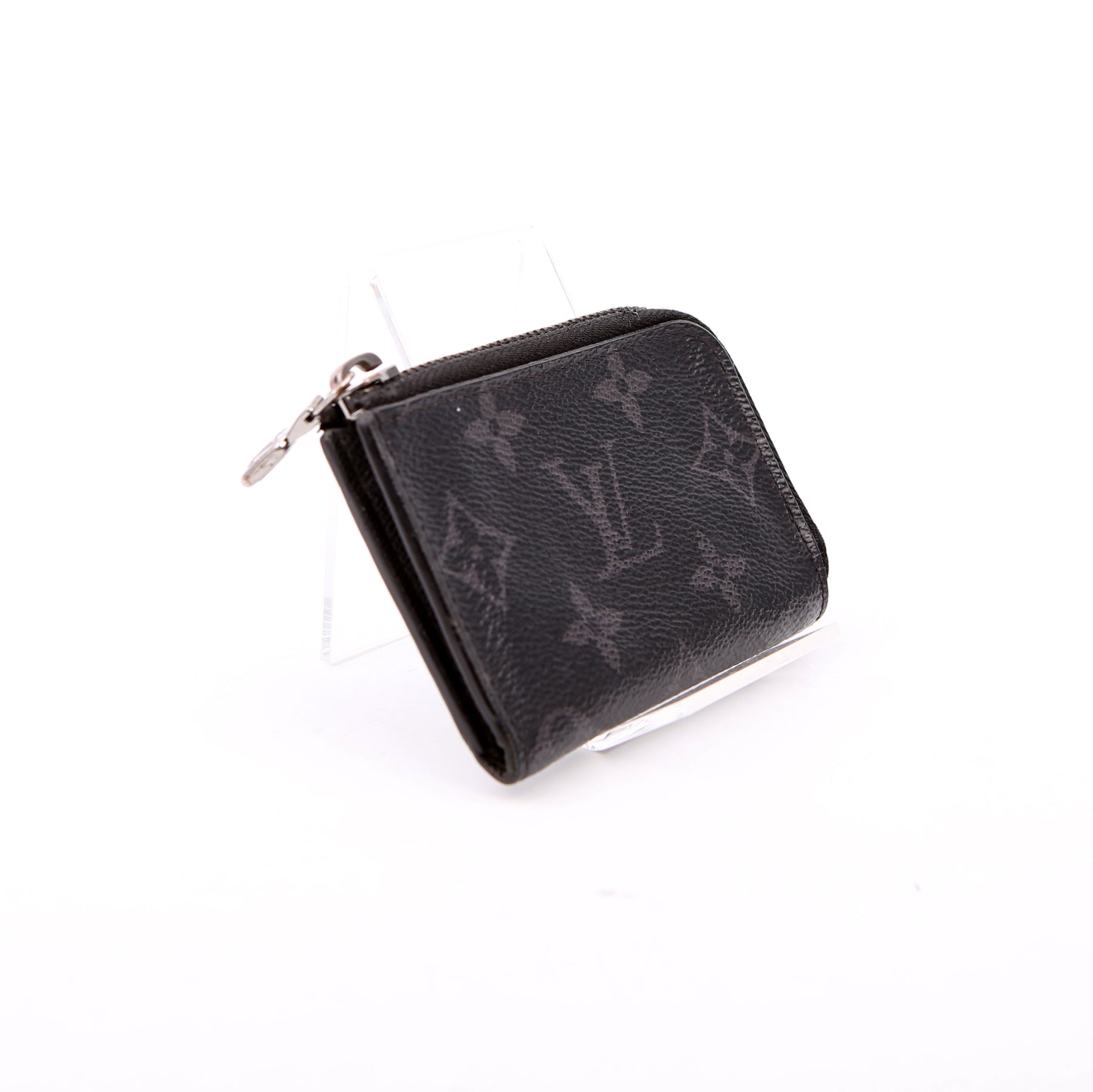 This pre-owned Louis Vuitton Porte Monnaie Jour is guaranteed 100% authentic. The exterior is in the Louis Vuitton Monogram Eclipse coated canvas.