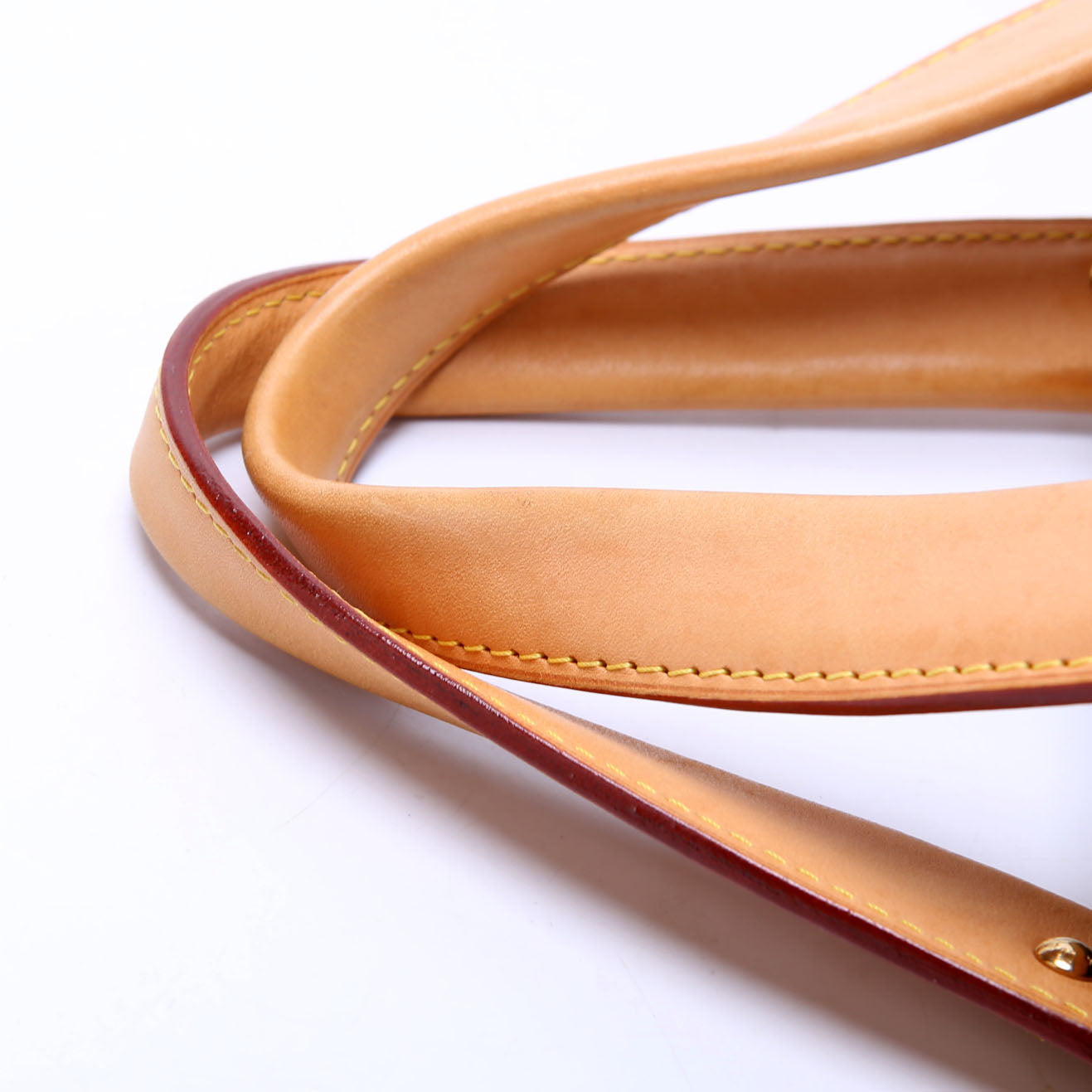 Strap: The strap shows minor creasing, discoloration, and warping on the shoulder piece.
