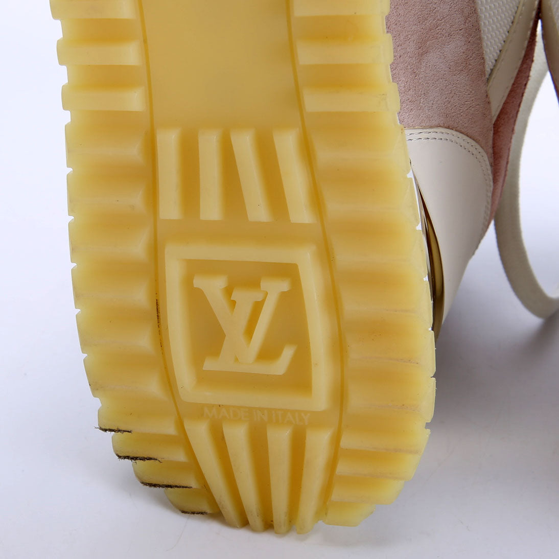 These pre-owned Louis Vuitton Run Away Sneakers are guaranteed 100% authentic.