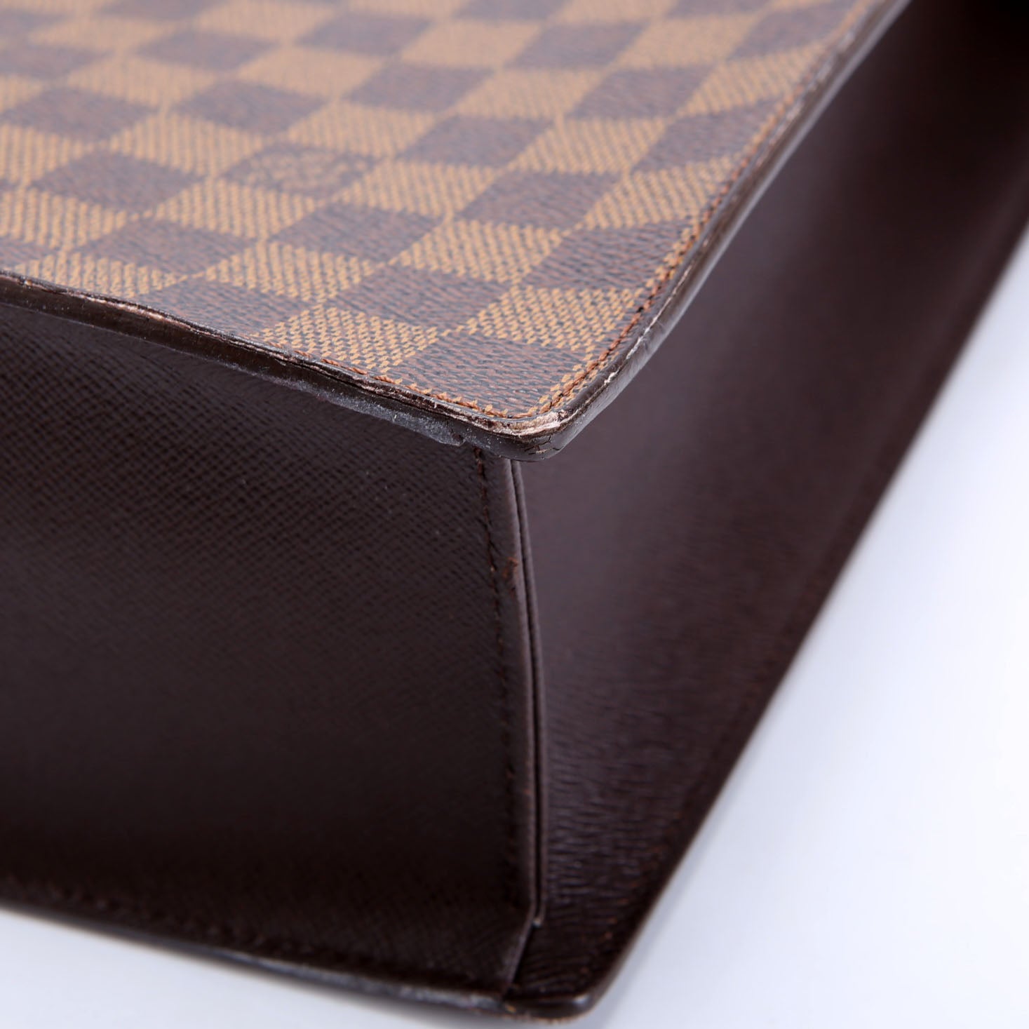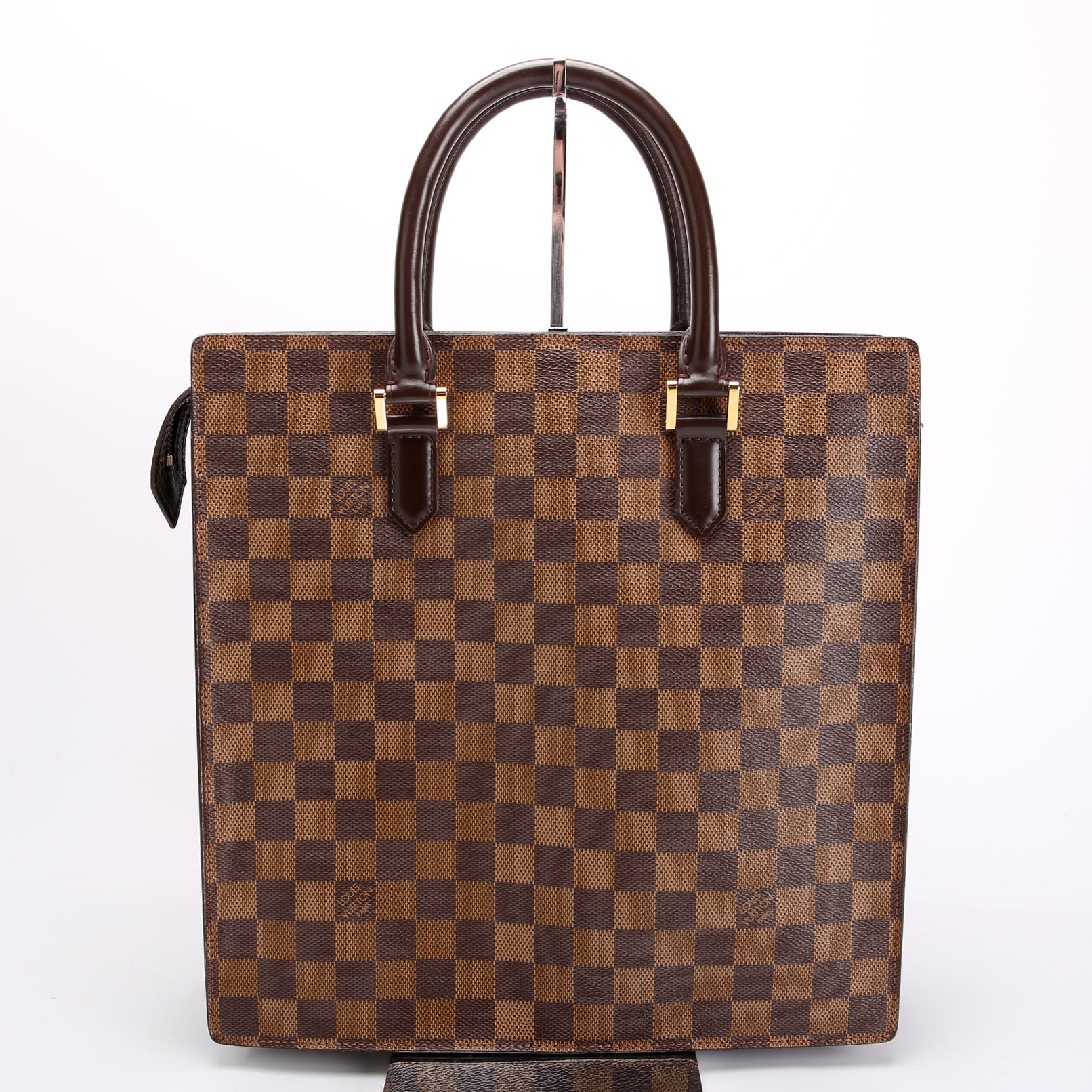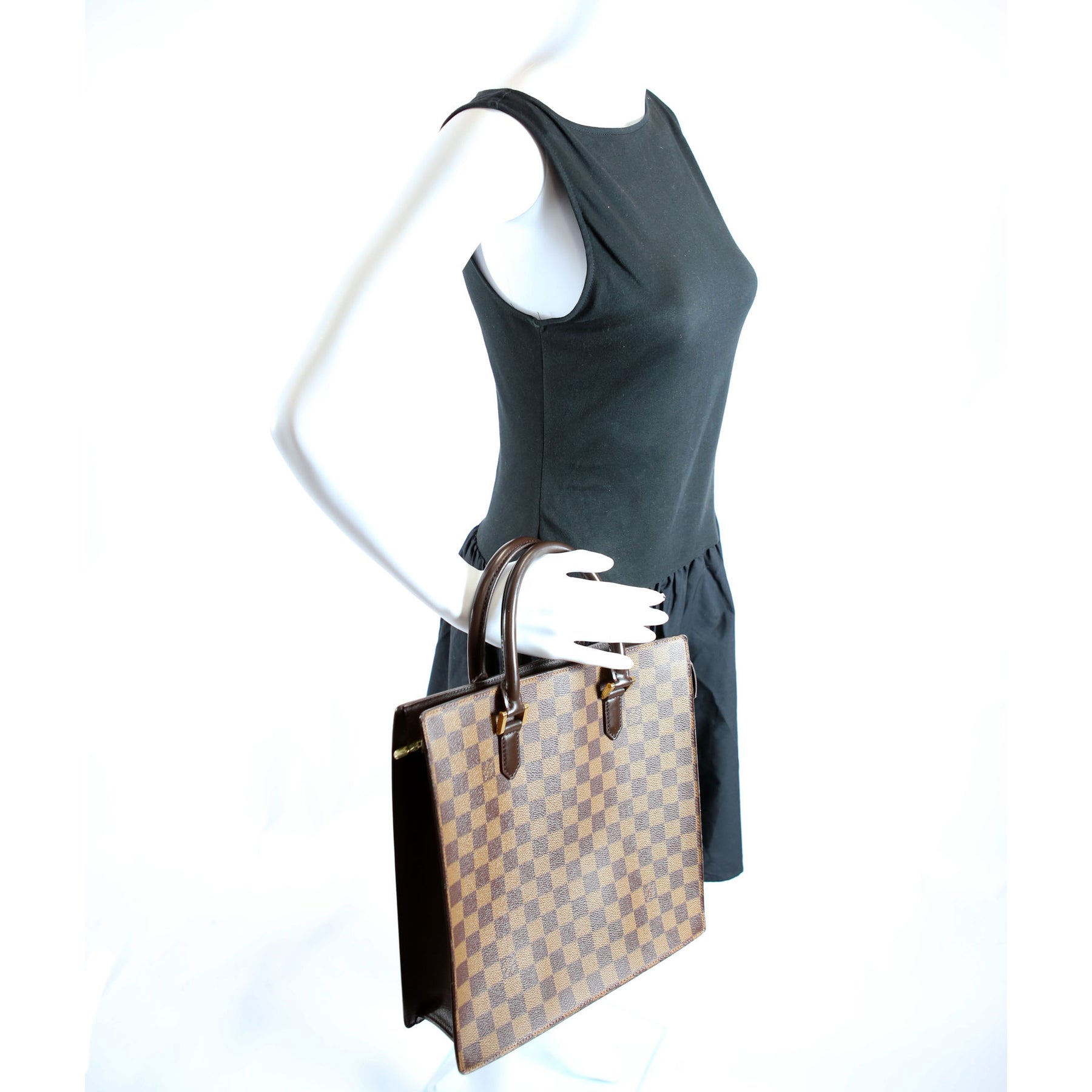 This pre-owned Louis Vuitton Sac Plat Venice is guaranteed 100% authentic. The exterior is in the classic Louis Vuitton Ebene coated canvas.