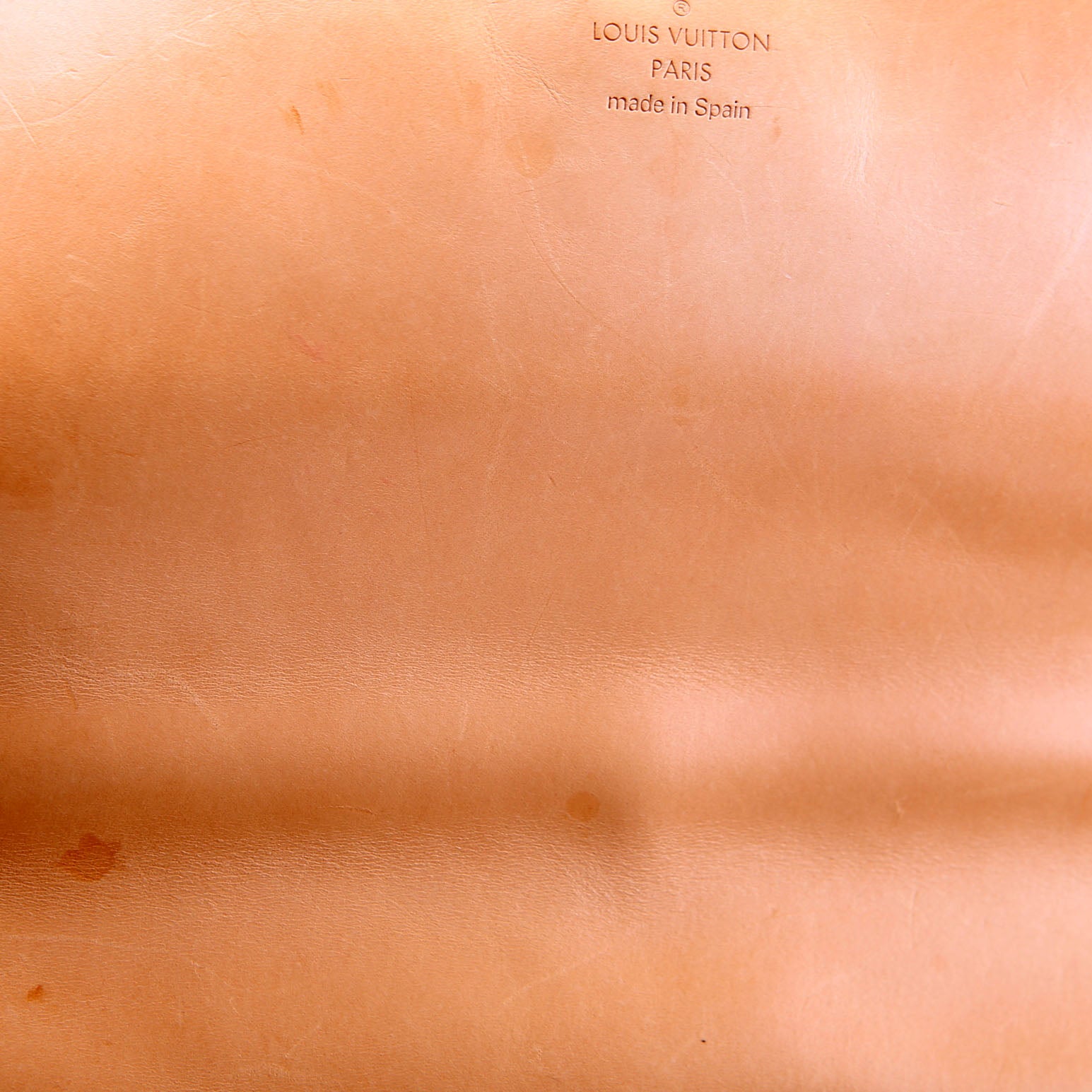 Exterior: The exterior coated canvas is free of major wear and the leather shows wear and patina.