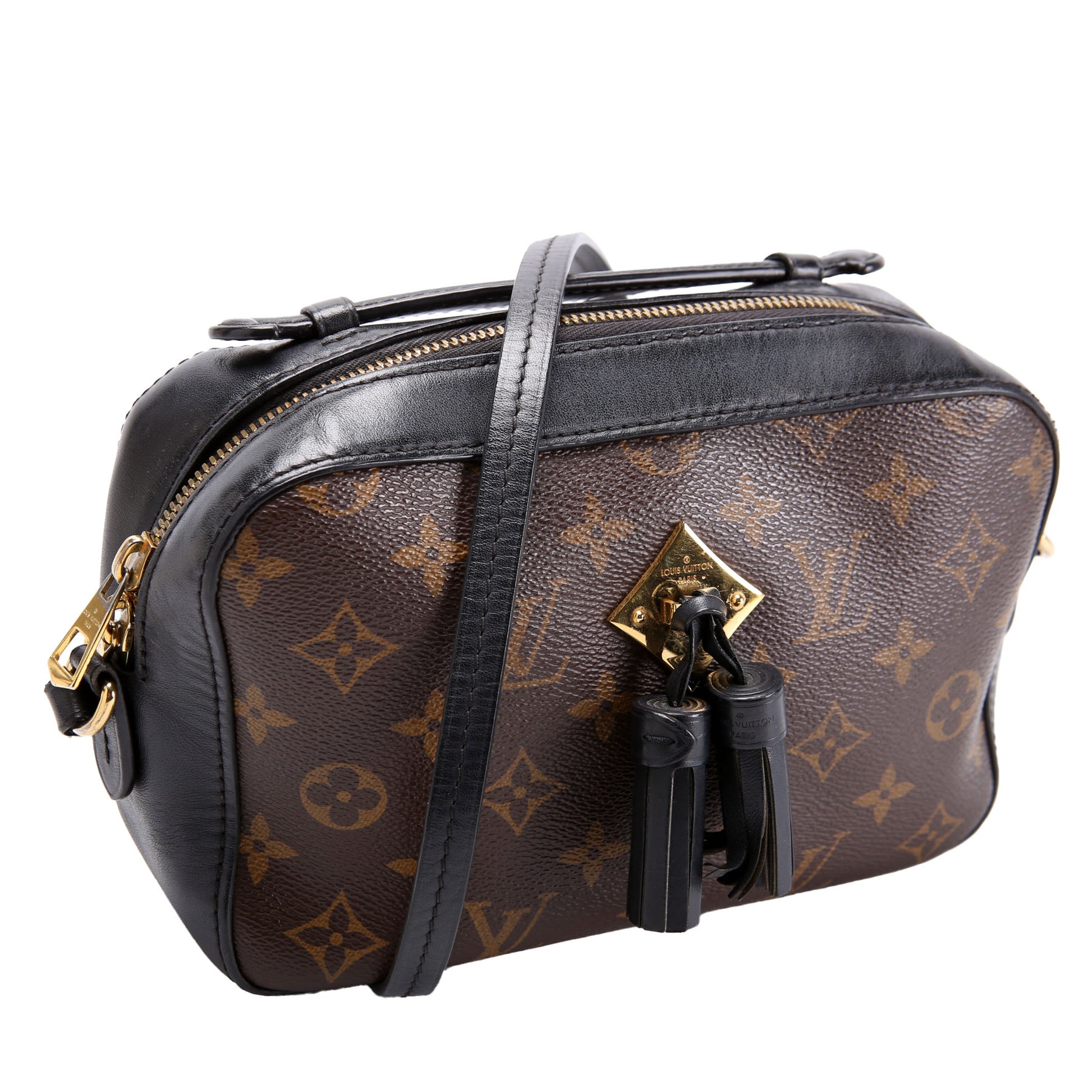 This pre-owned Louis Vuitton Saintonge Monogram is guaranteed 100% authentic. The exterior is in the classic Louis Vuitton Monogram coated canvas.