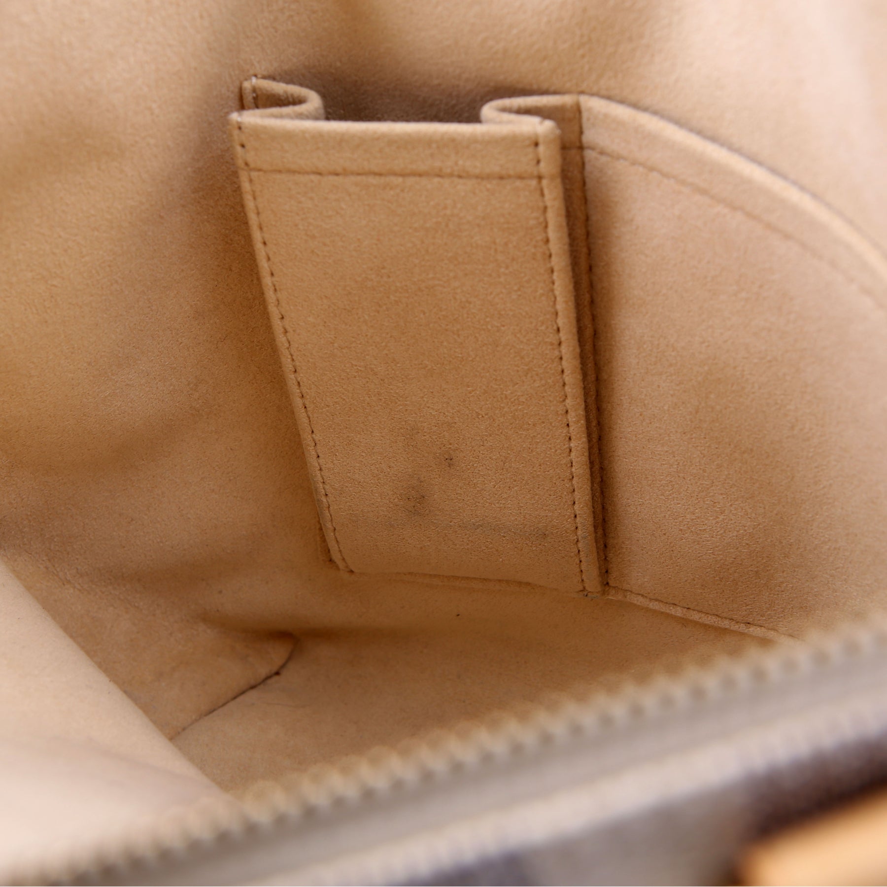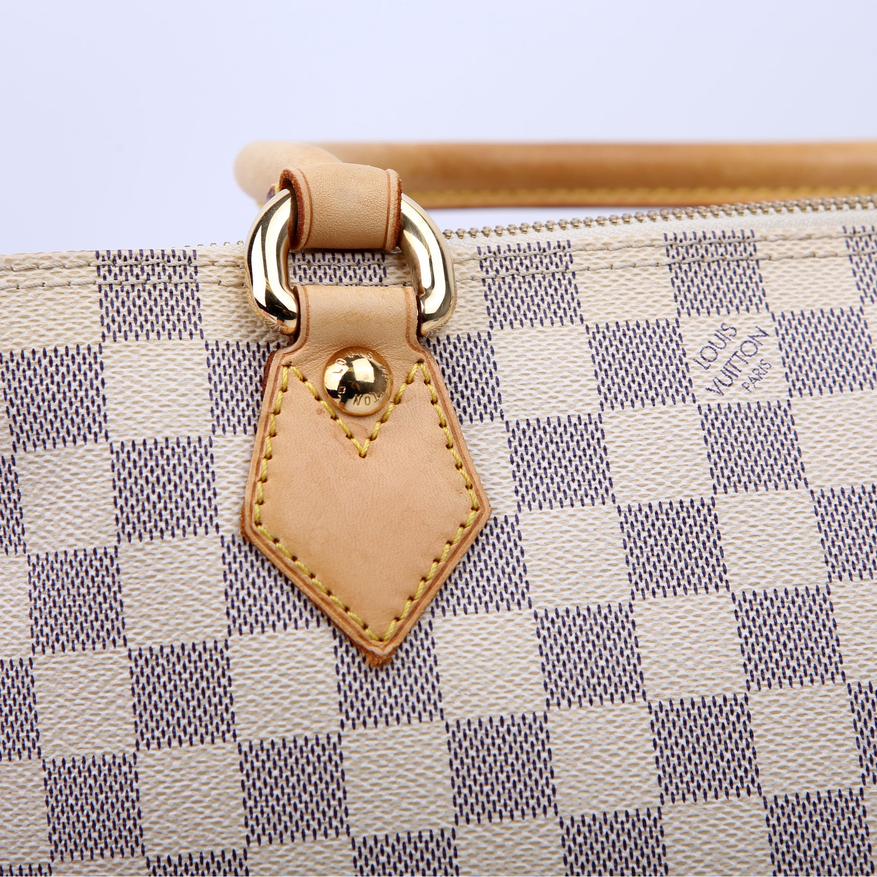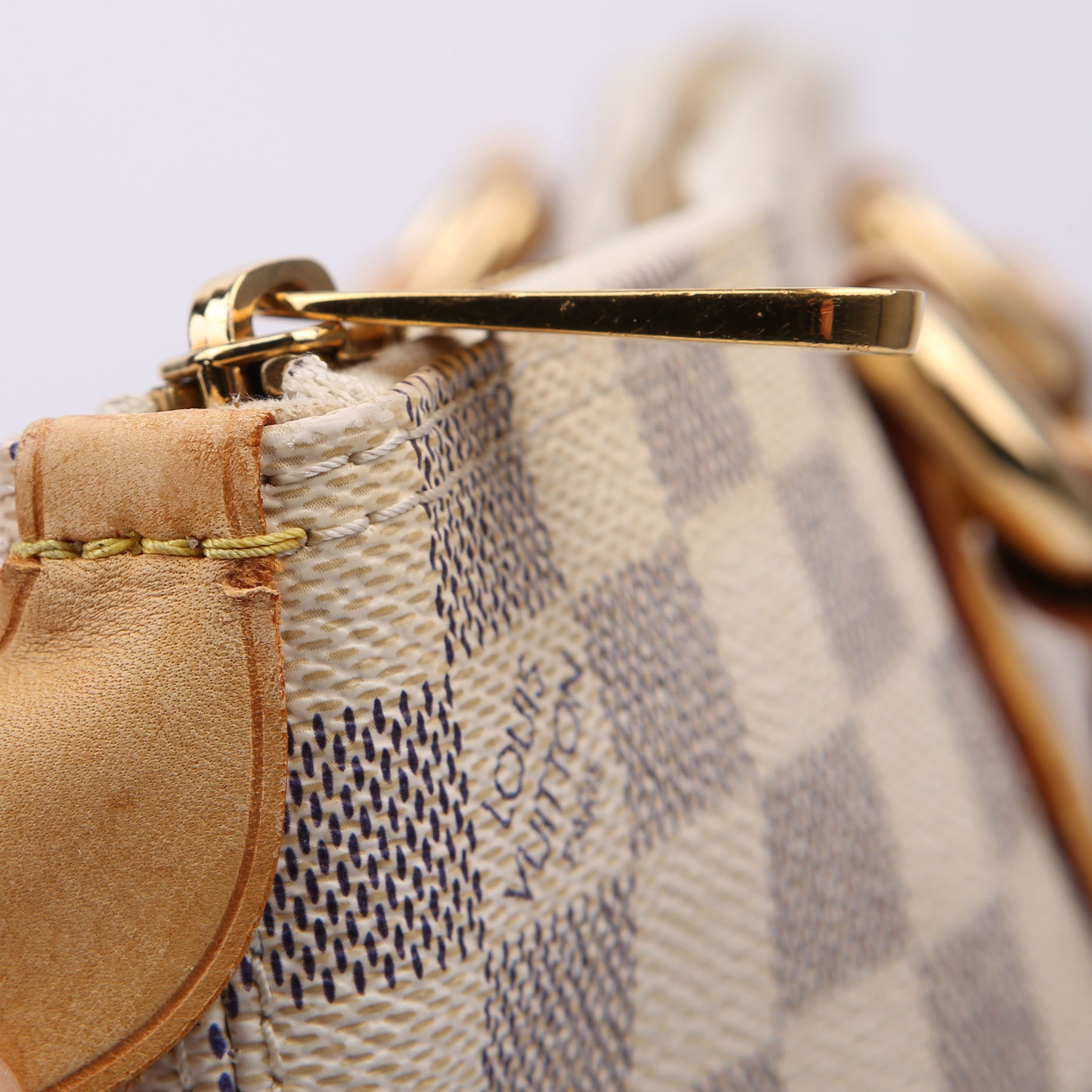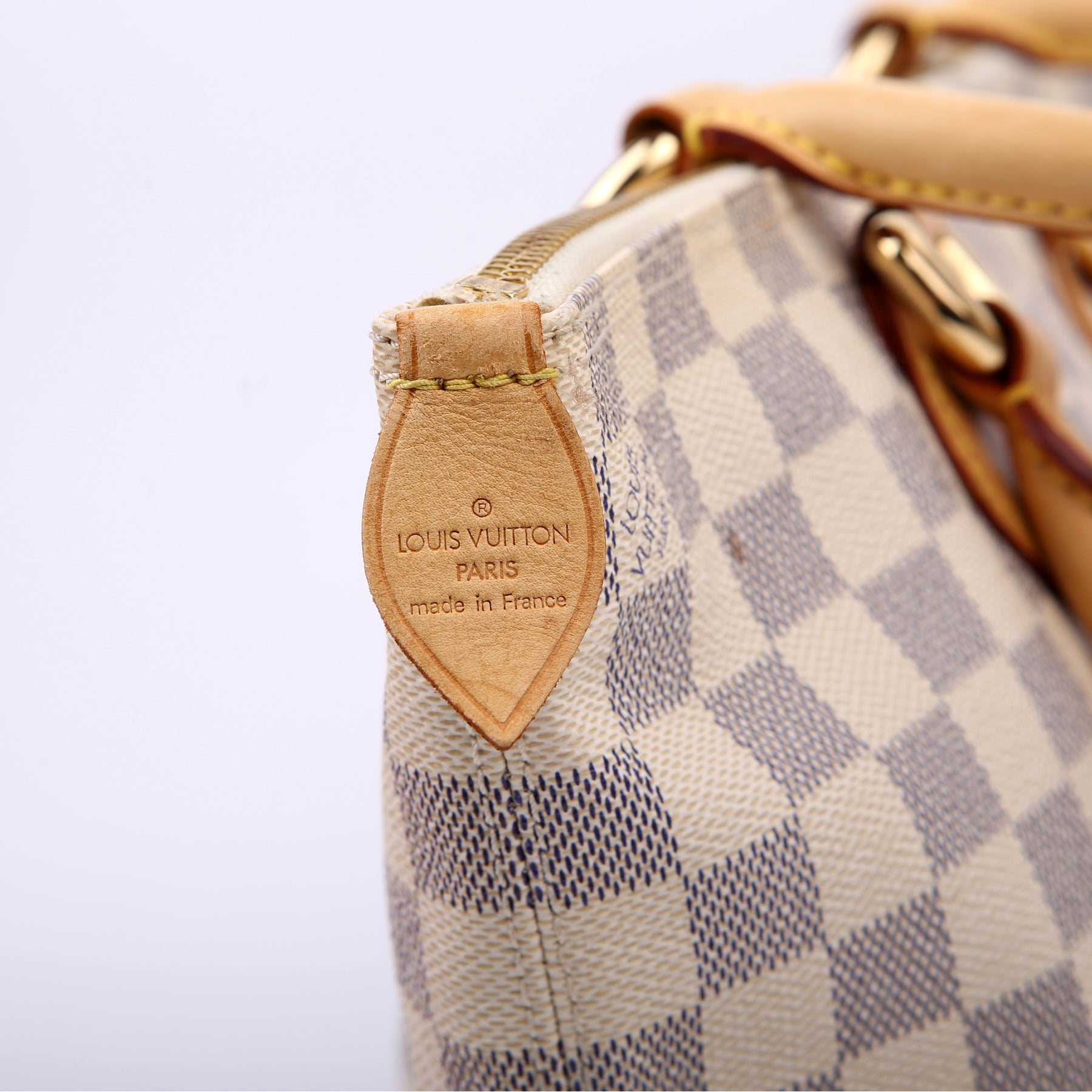 This pre-owned Saleya PM is guaranteed 100% authentic. The exterior is in the classic Louis Vuitton Damier Azur coated canvas.