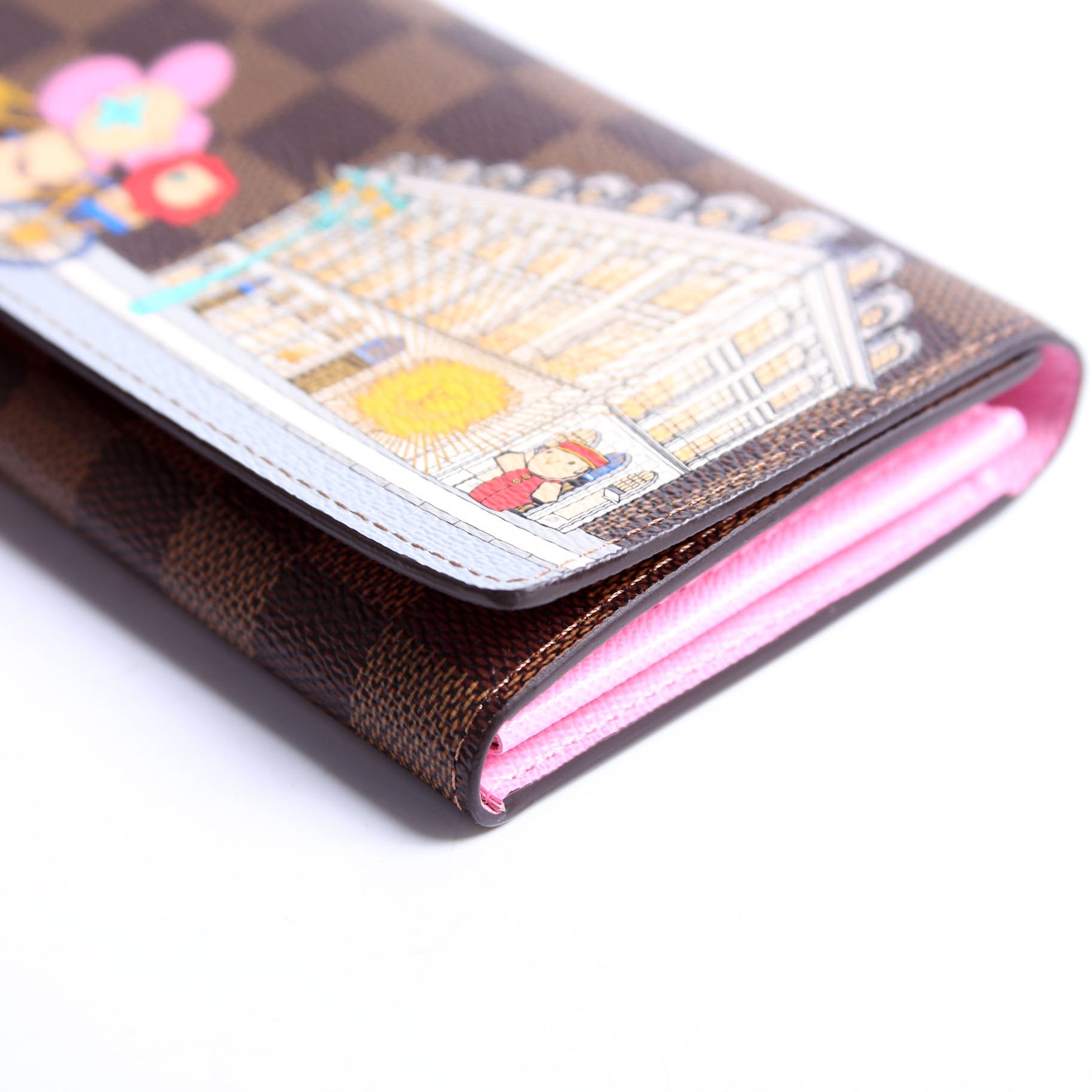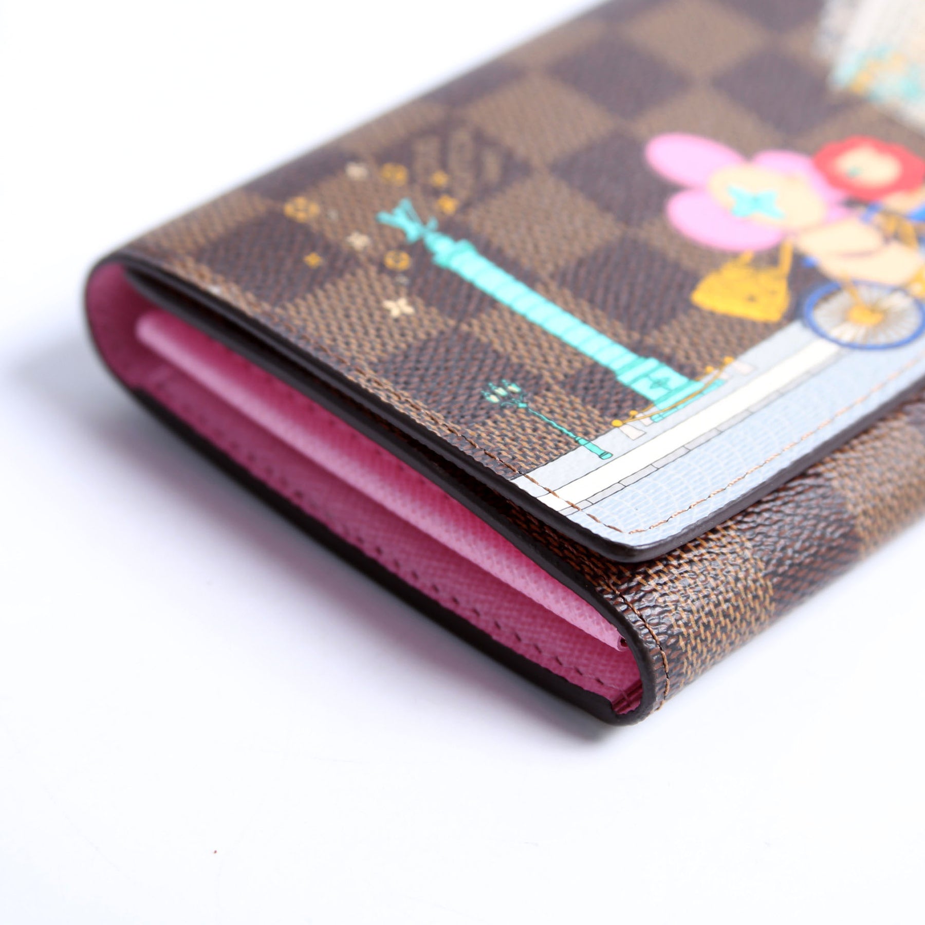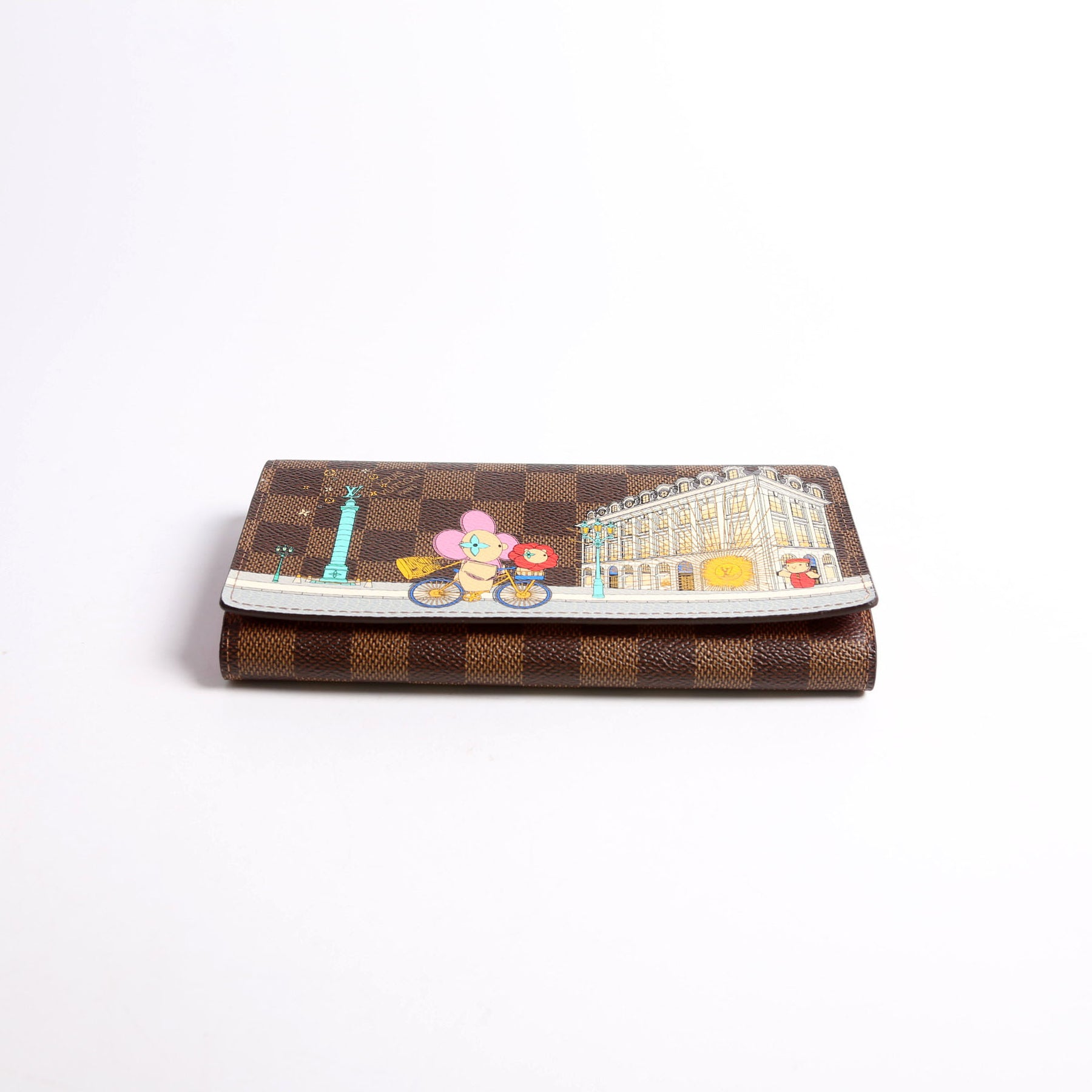This pre-owned Louis Vuitton Sarah Wallet 2022 XMas Vivienne Animation is guaranteed 100% authentic. The exterior is in the classic Louis Vuitton Monogram coated canvas.