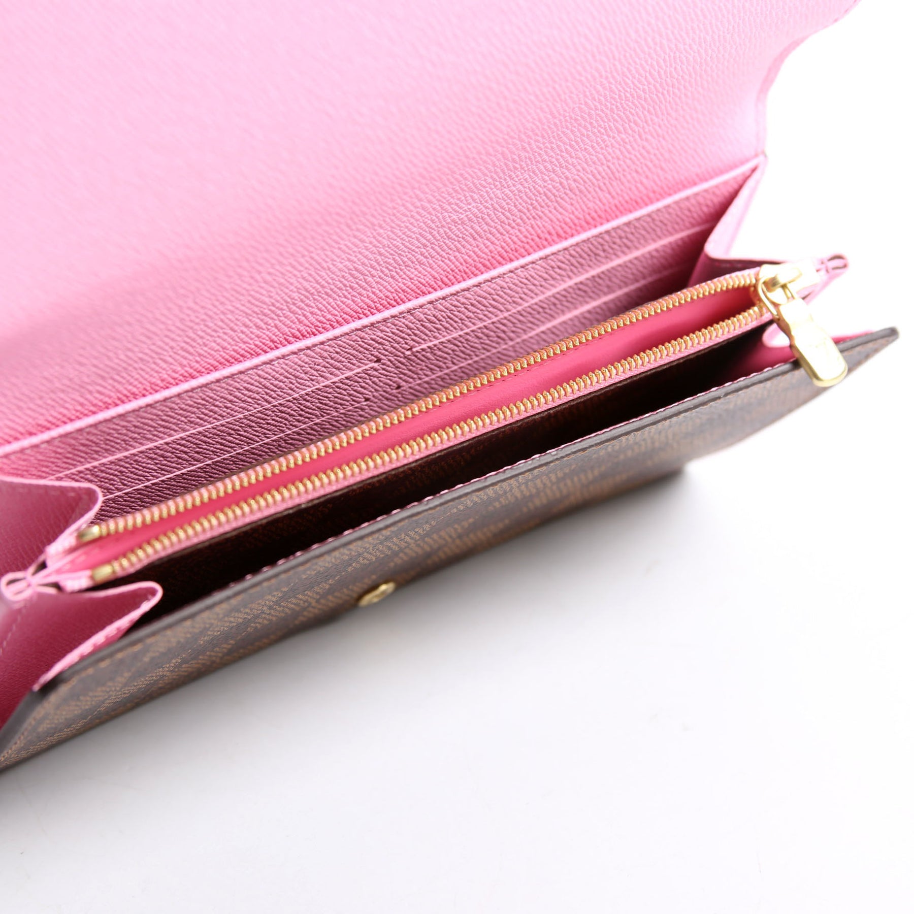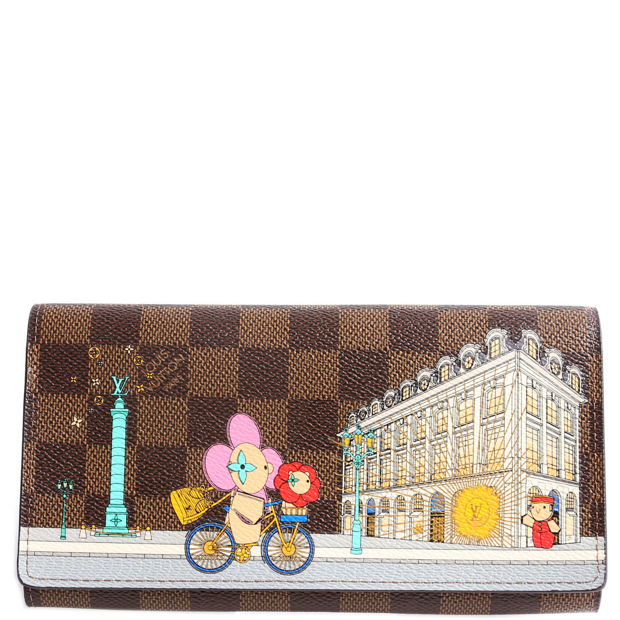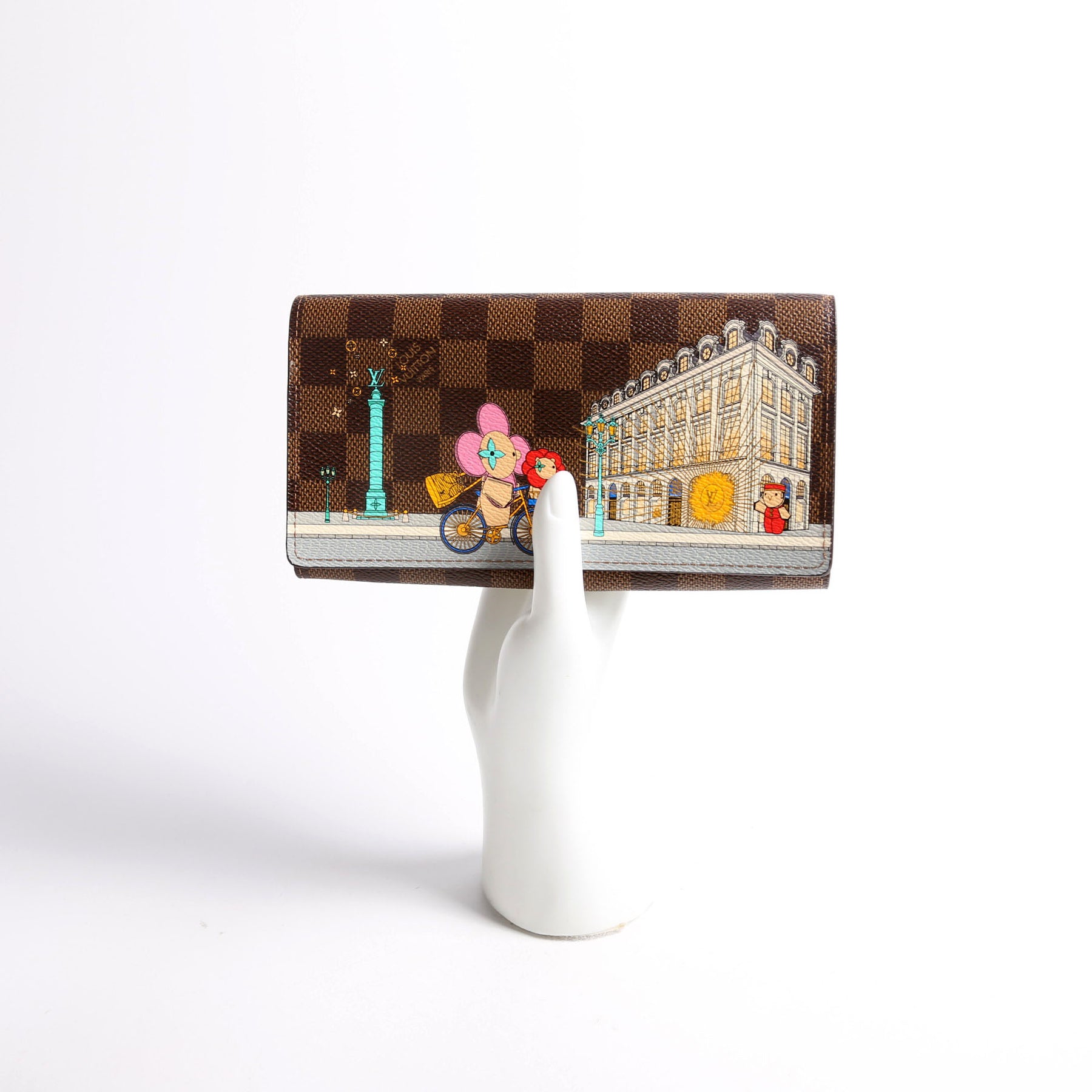 This pre-owned Louis Vuitton Sarah Wallet 2022 XMas Vivienne Animation is guaranteed 100% authentic. The exterior is in the classic Louis Vuitton Monogram coated canvas.