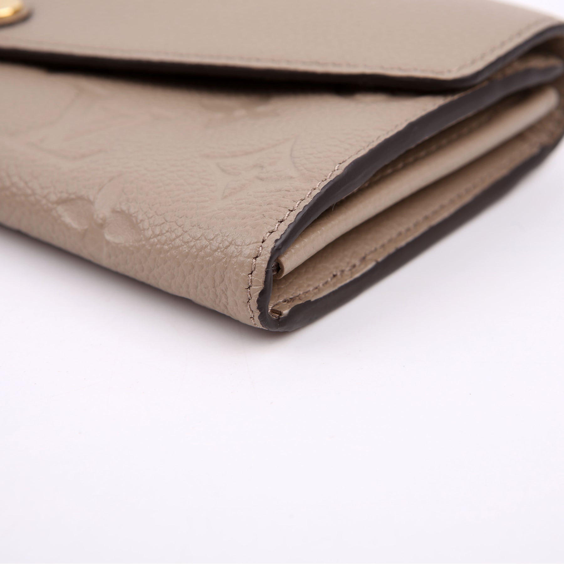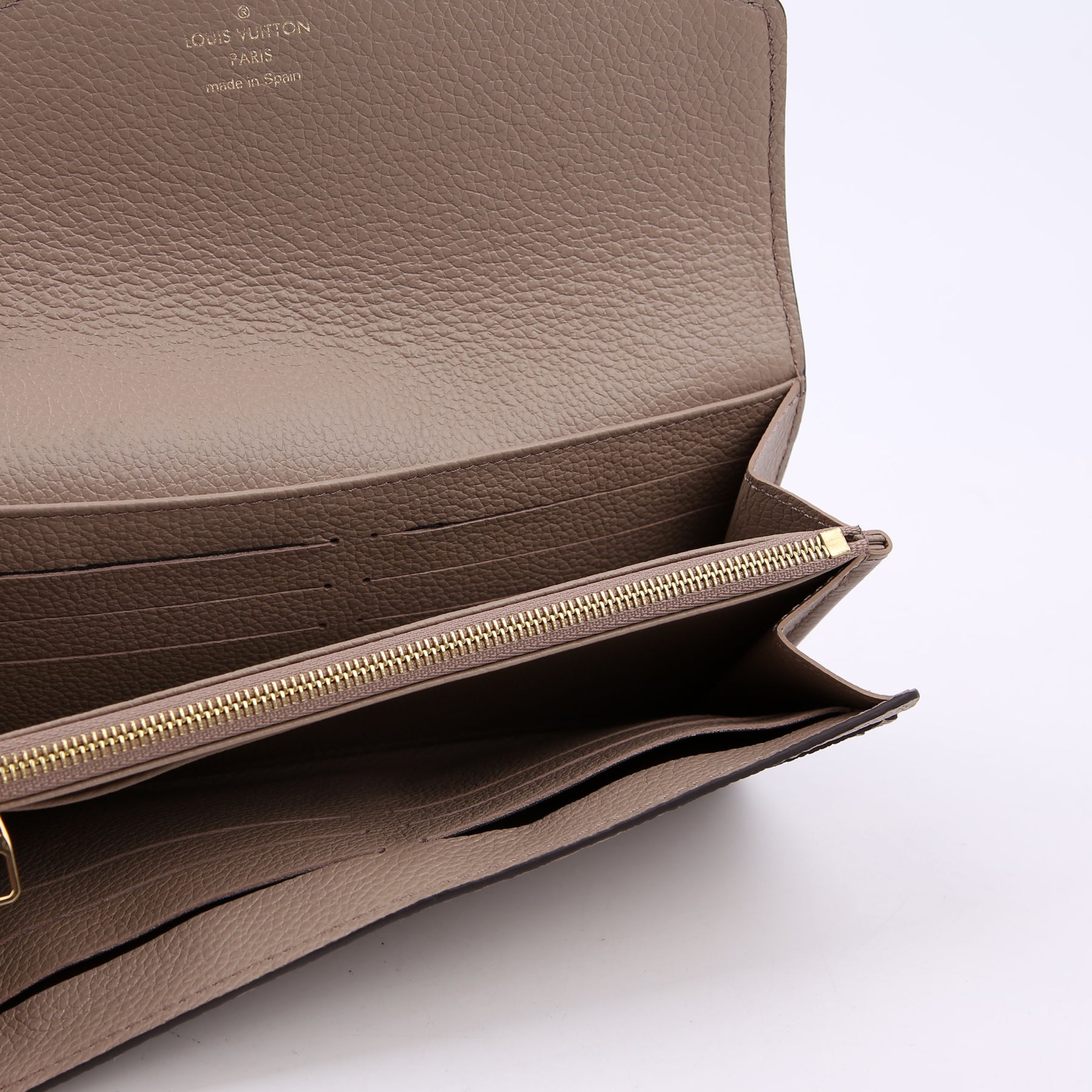 This pre-owned Louis Vuitton Sarah Wallet is guaranteed 100% authentic. The exterior is in the classic Louis Vuitton Empreinte leather.