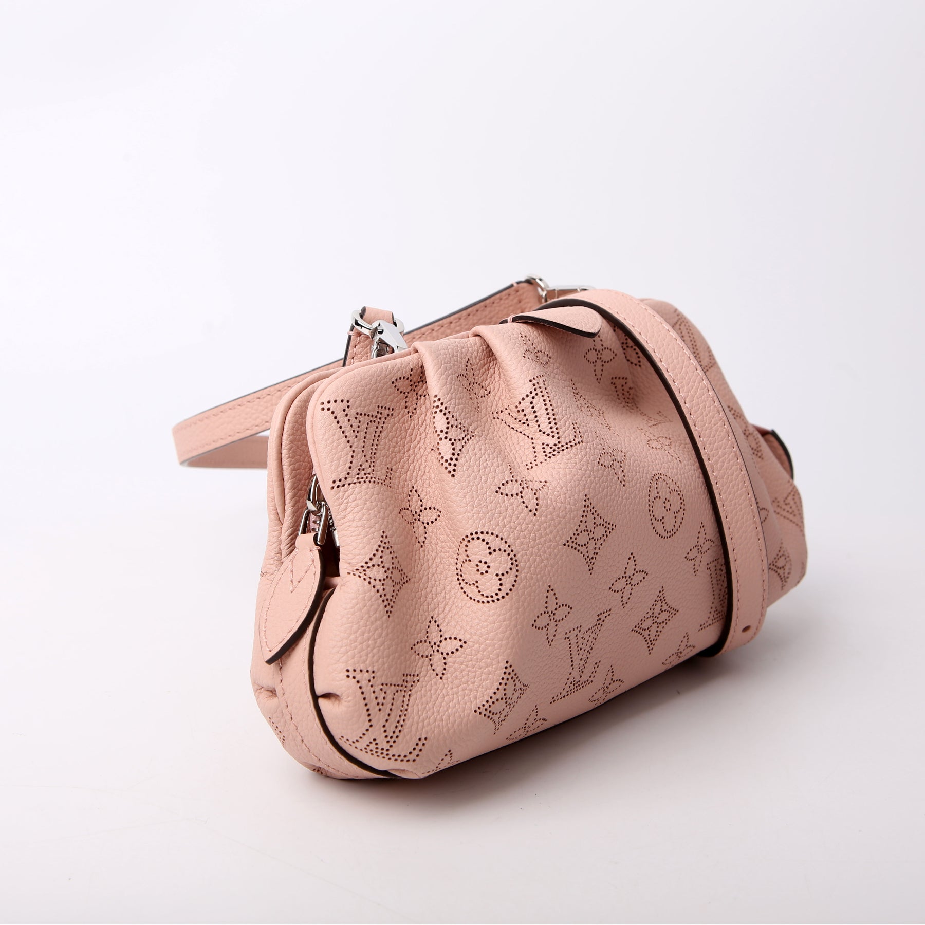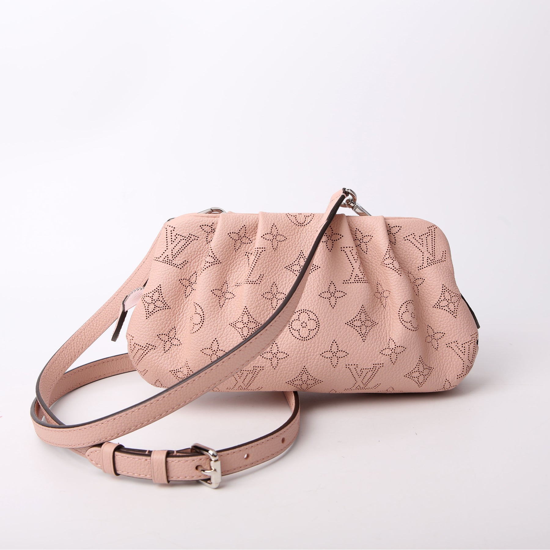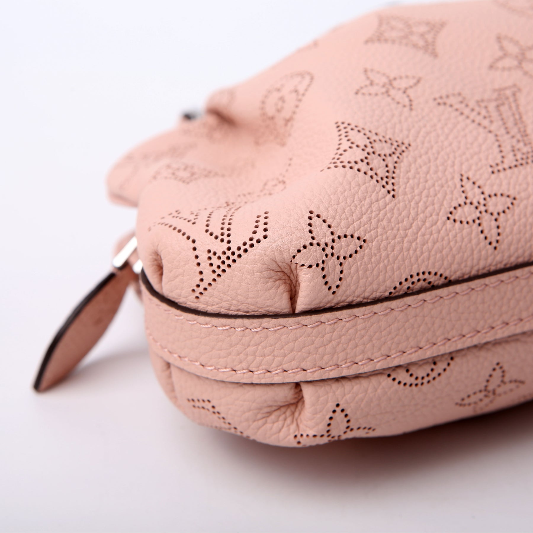 This pre-owned Louis Vuitton Scala Pouch Mini is guaranteed 100% authentic. The exterior is in the classic Louis Vuitton Mahina Leather.