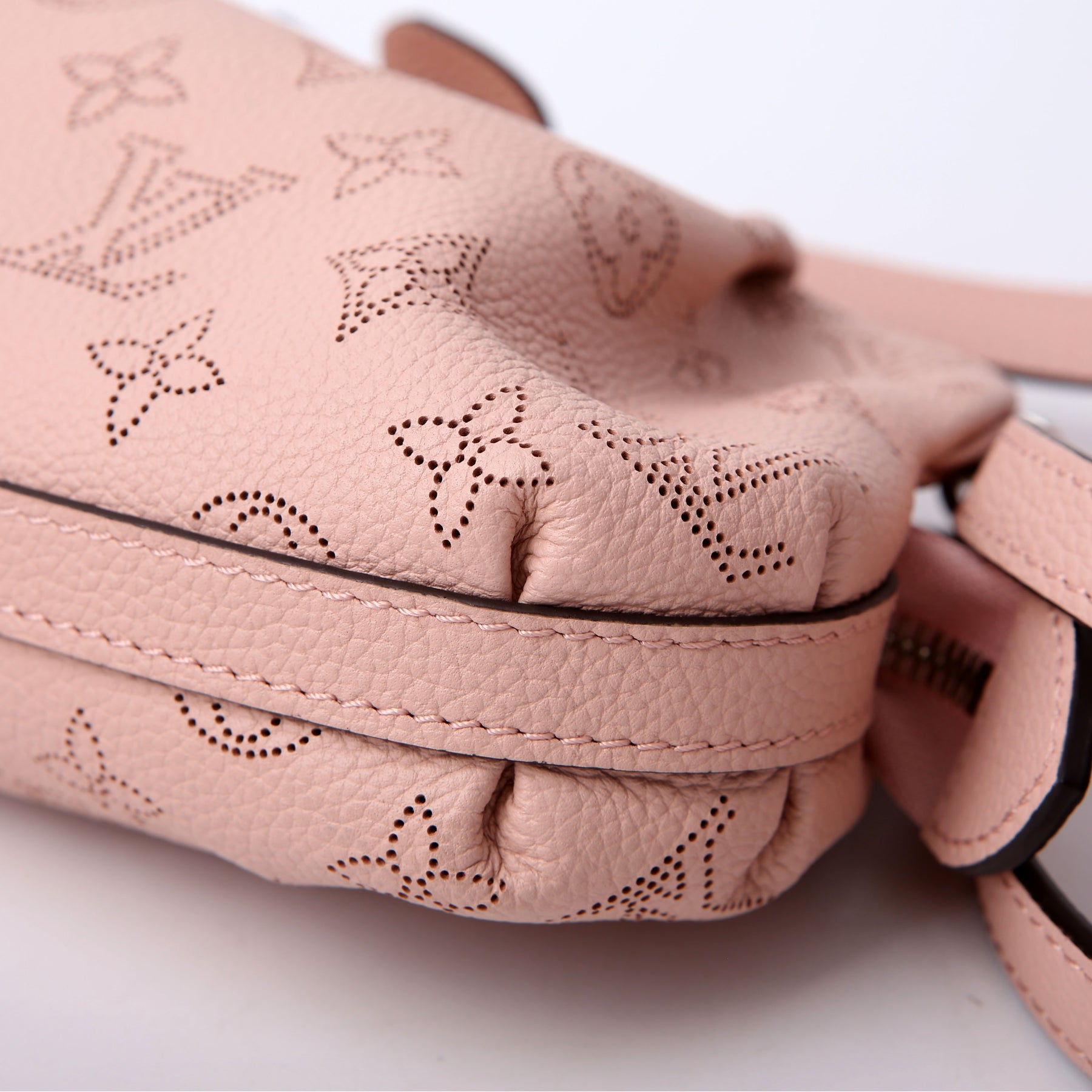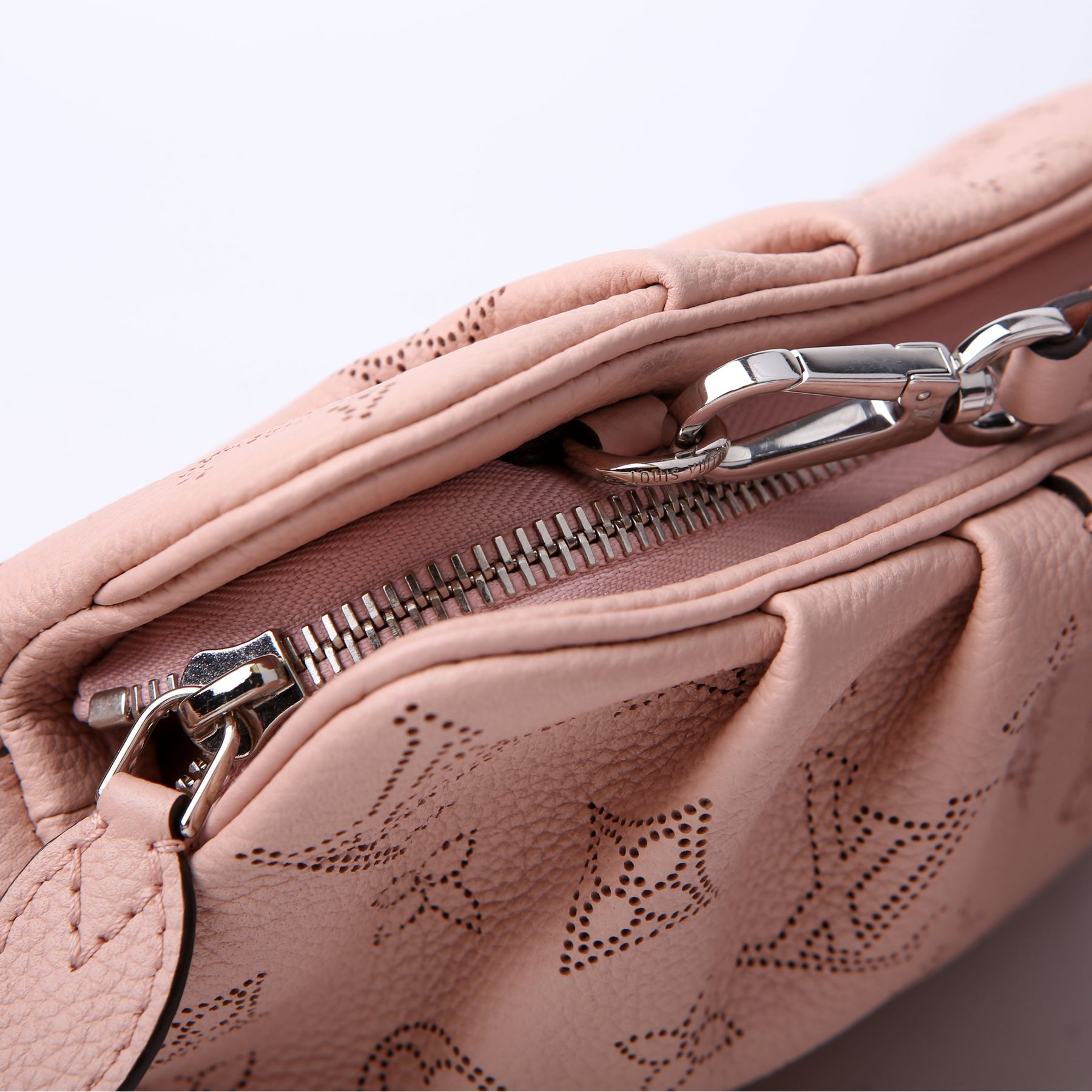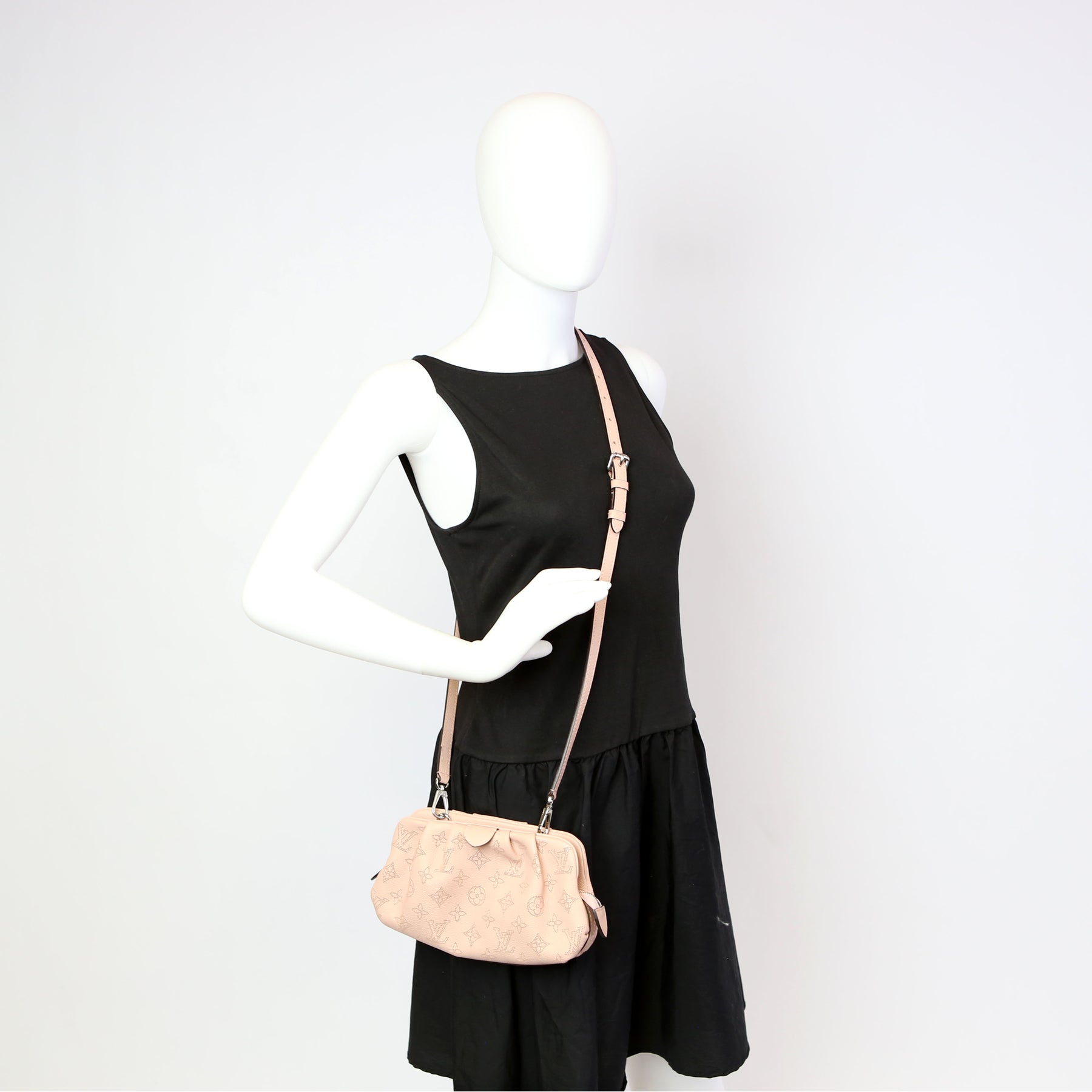 This pre-owned Louis Vuitton Scala Pouch Mini is guaranteed 100% authentic. The exterior is in the classic Louis Vuitton Mahina Leather.