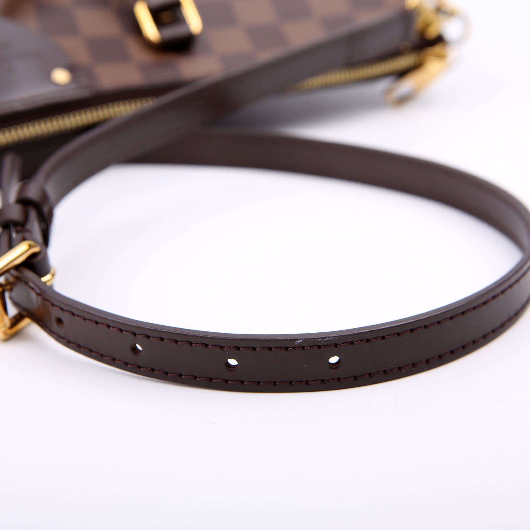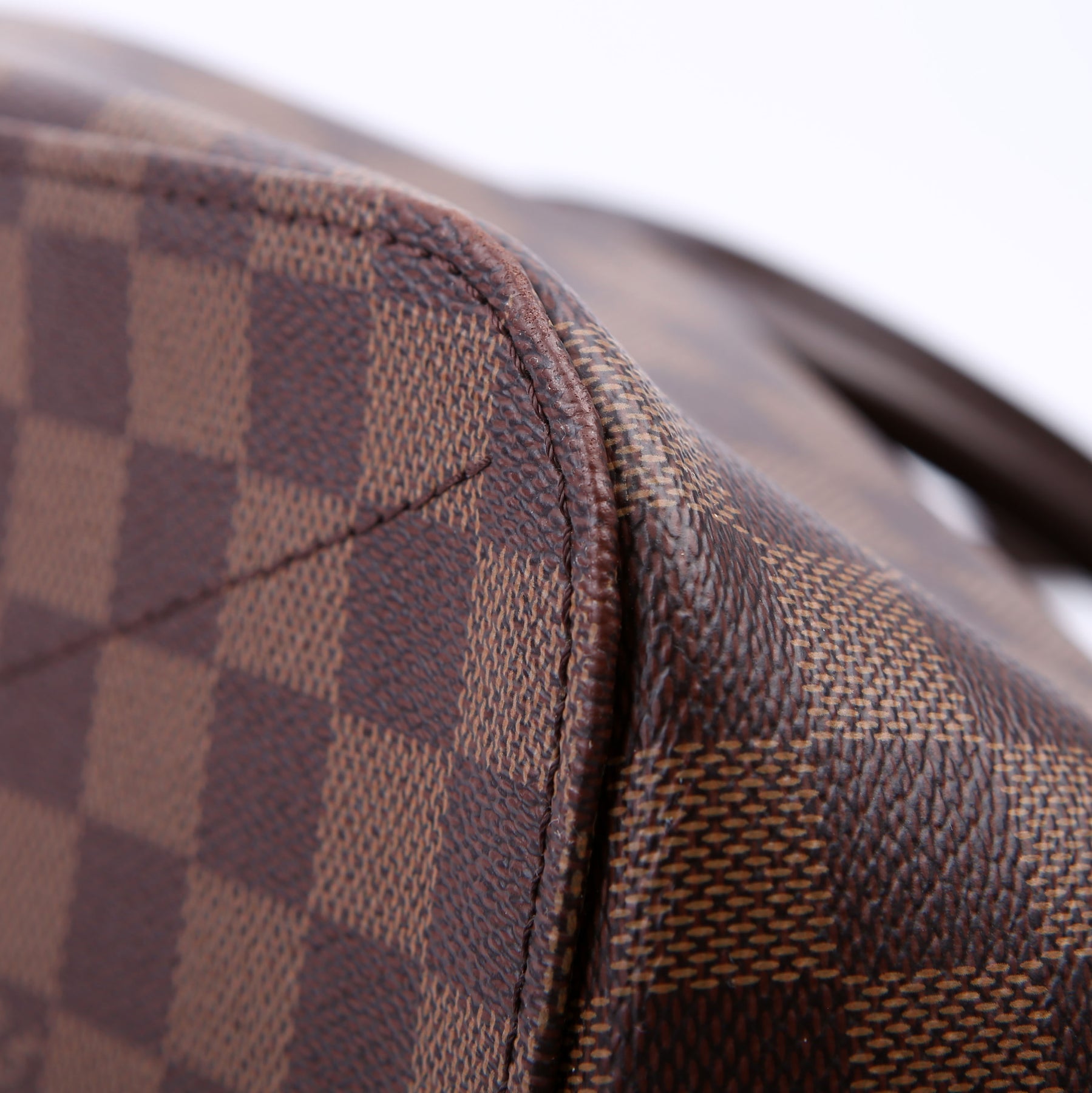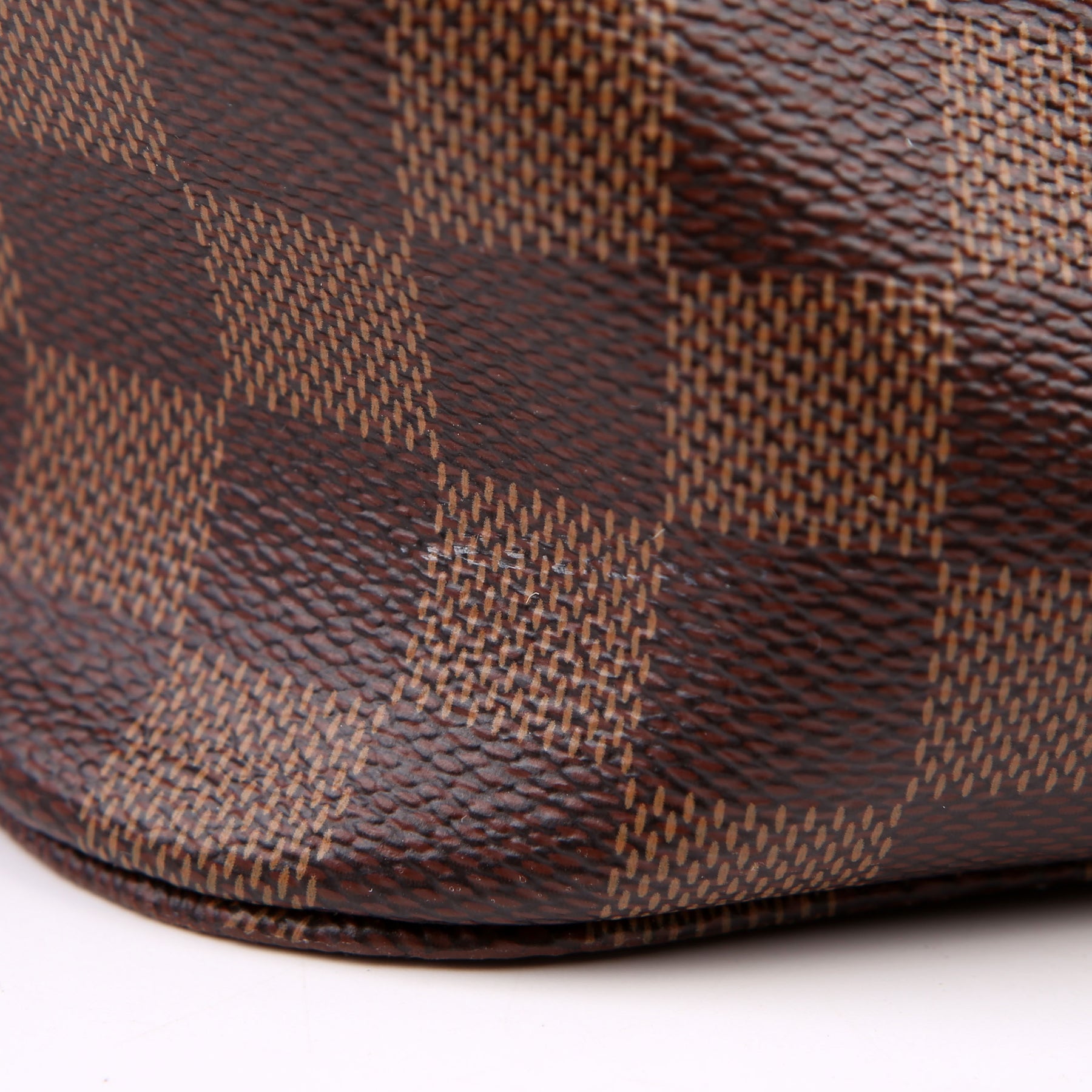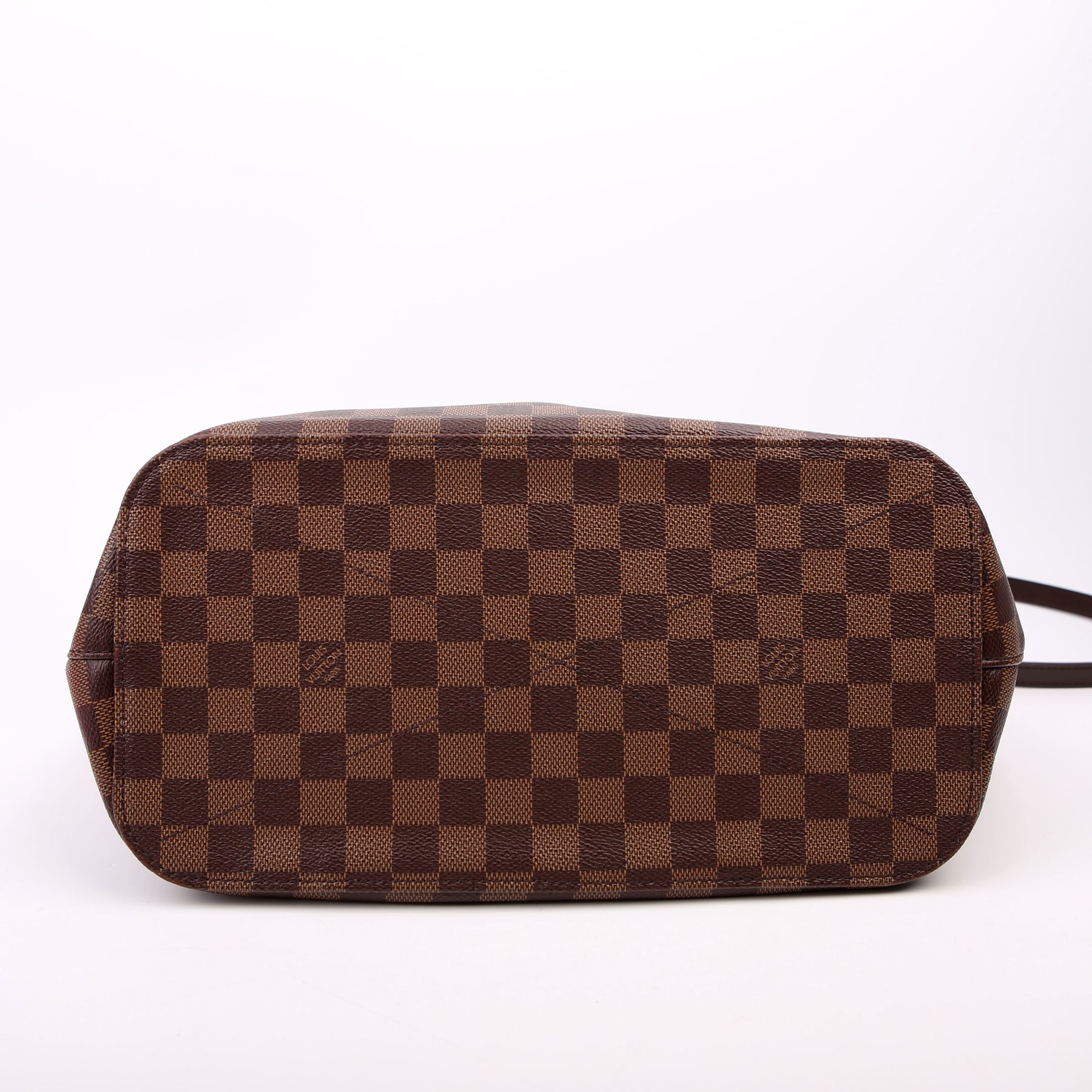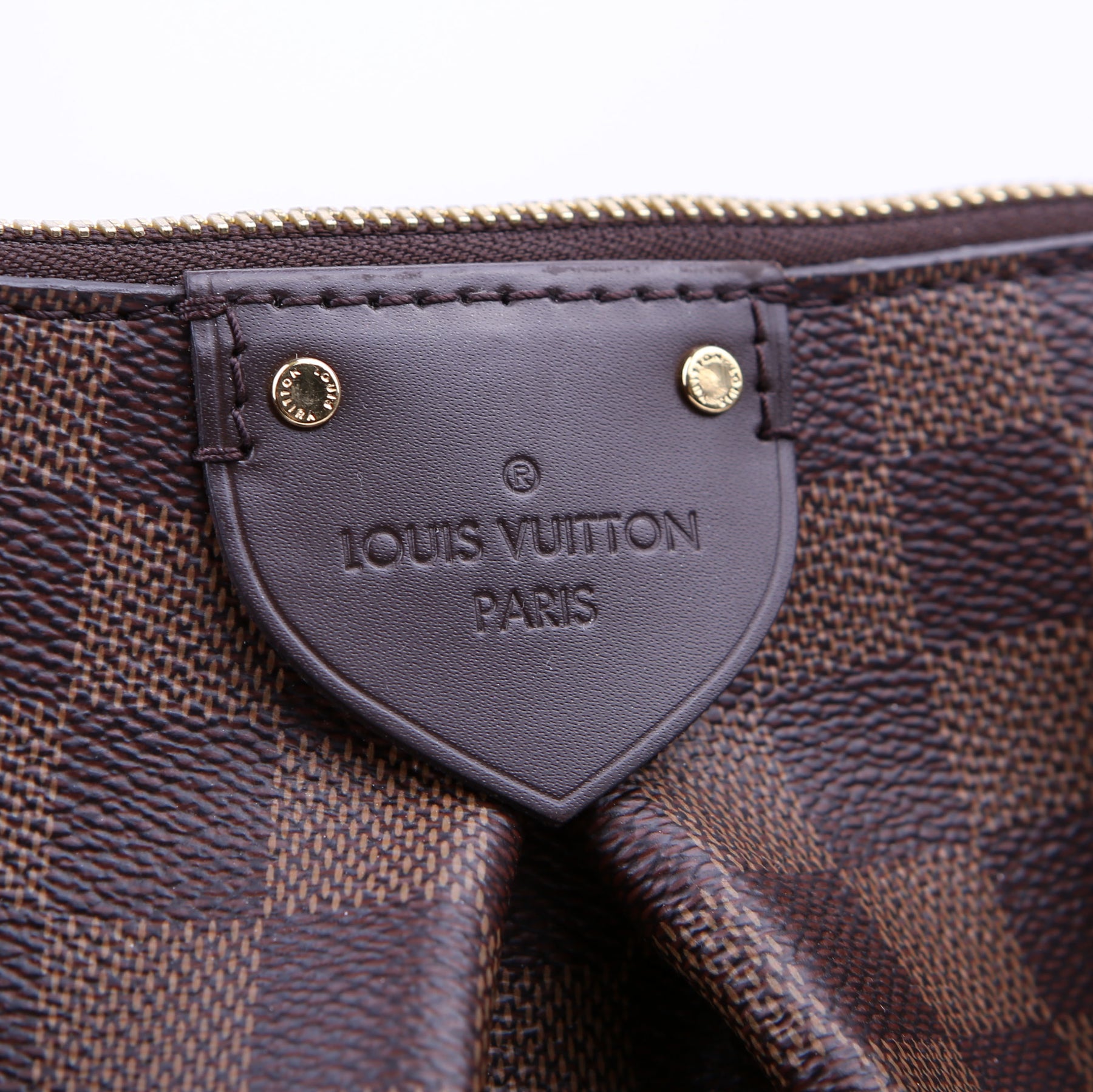 This pre-owned Louis Vuitton Siena GM is guaranteed 100% authentic. The exterior is in the classic Louis Vuitton Damier Ebene coated canvas.
