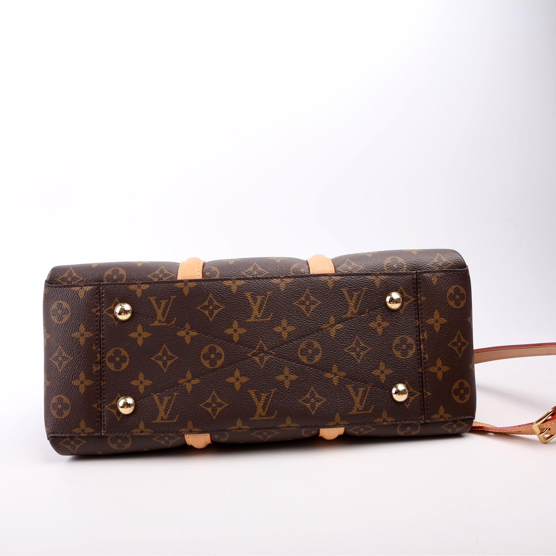This pre-owned Louis Vuitton Soufflot MM is guaranteed 100% authentic. The exterior is in the classic Louis Vuitton Monogram coated canvas.