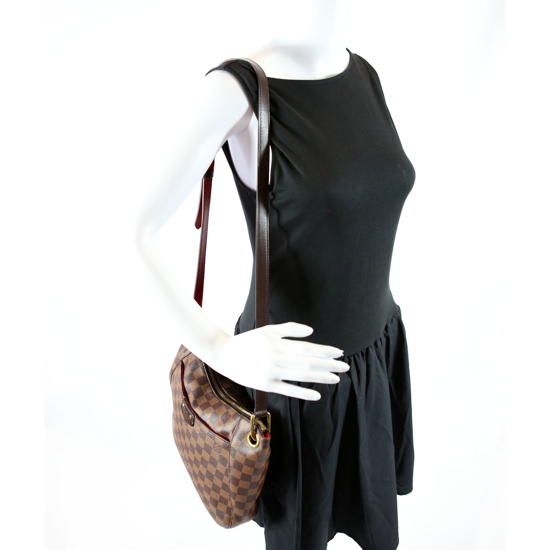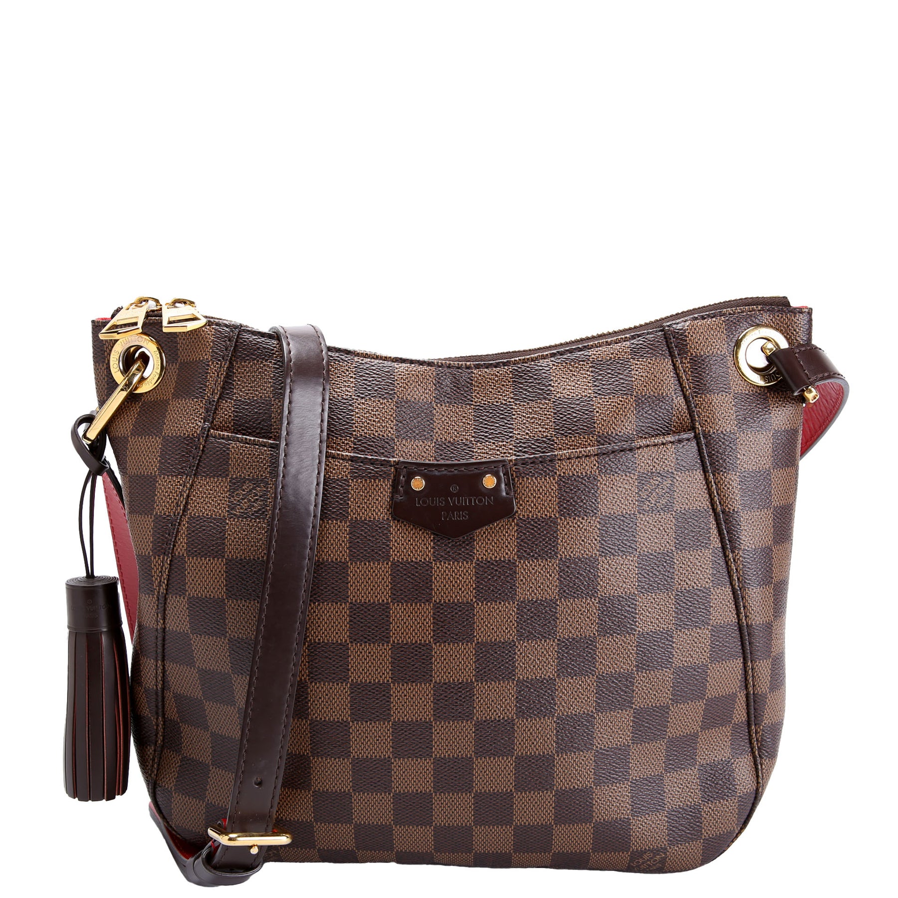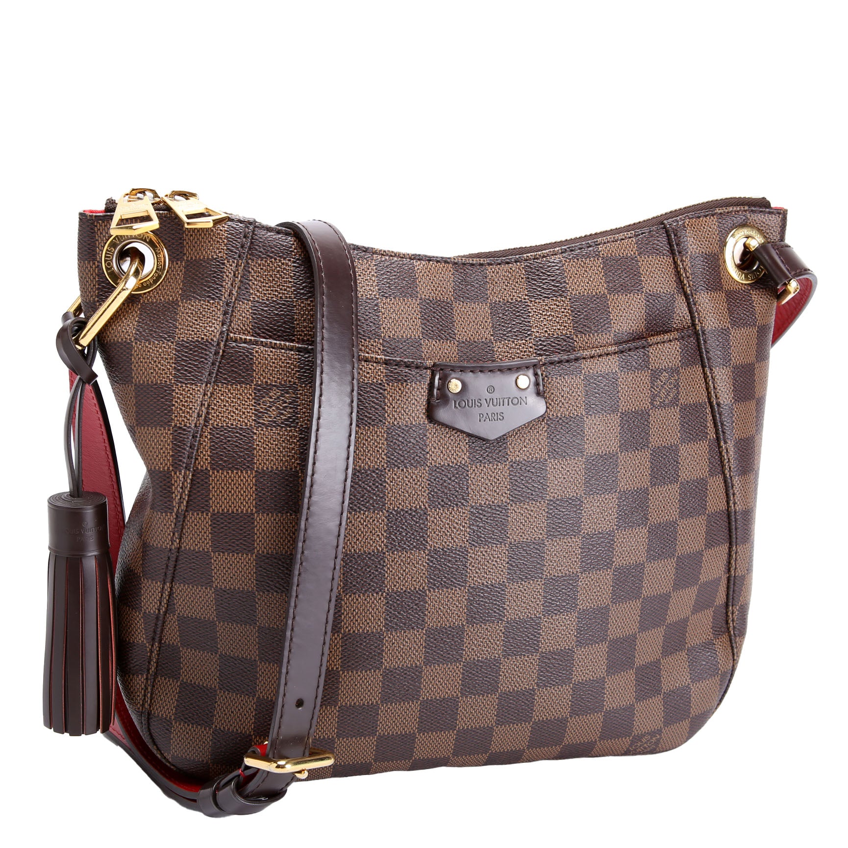 This pre-owned Louis Vuitton South Bank Besace is guaranteed 100% authentic. The exterior is in the classic Louis Vuitton Damier Ebene coated canvas.